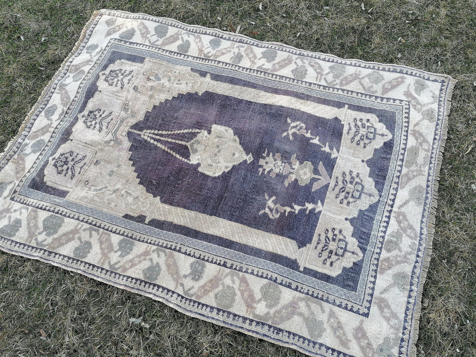 Turkish rug, vintage rug,hand made wool rug 4x5'5 oushak vintage rug, kitchen rug bohemian rug