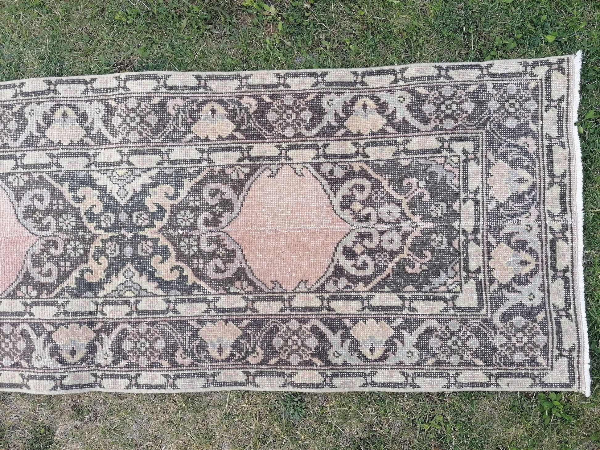 Turkish runner rug 2'3x13'3 vintage wool runner, packwork oushak runner rug, hallway hand made rug, kitchen runner rug,