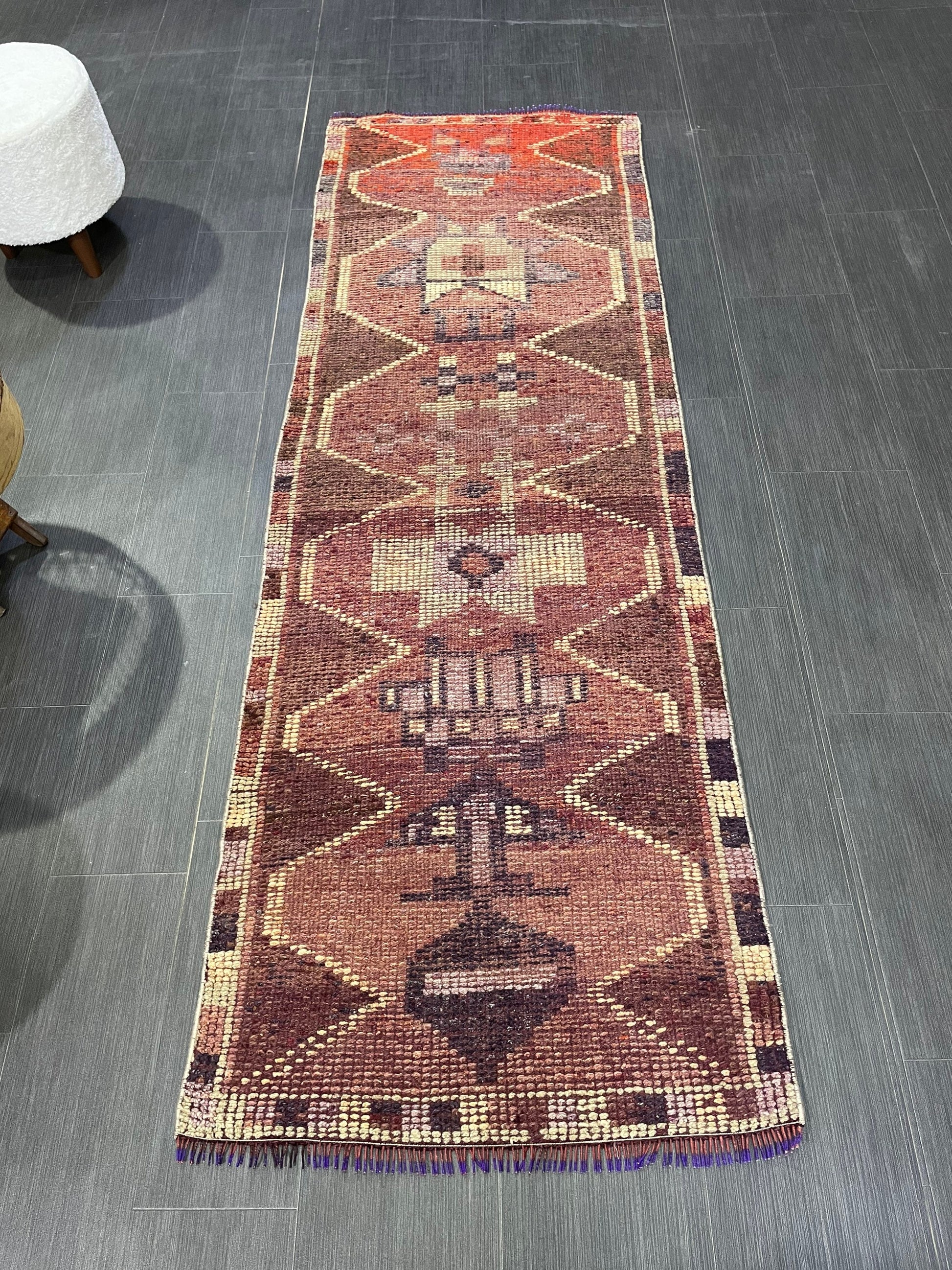Turkish Runner Rug, Muted Vintage Runner 2.6 x 7.8 Rug, Persian Hallway Runner Rug, Kitchen Runner Rug Oriental Distressed Runner