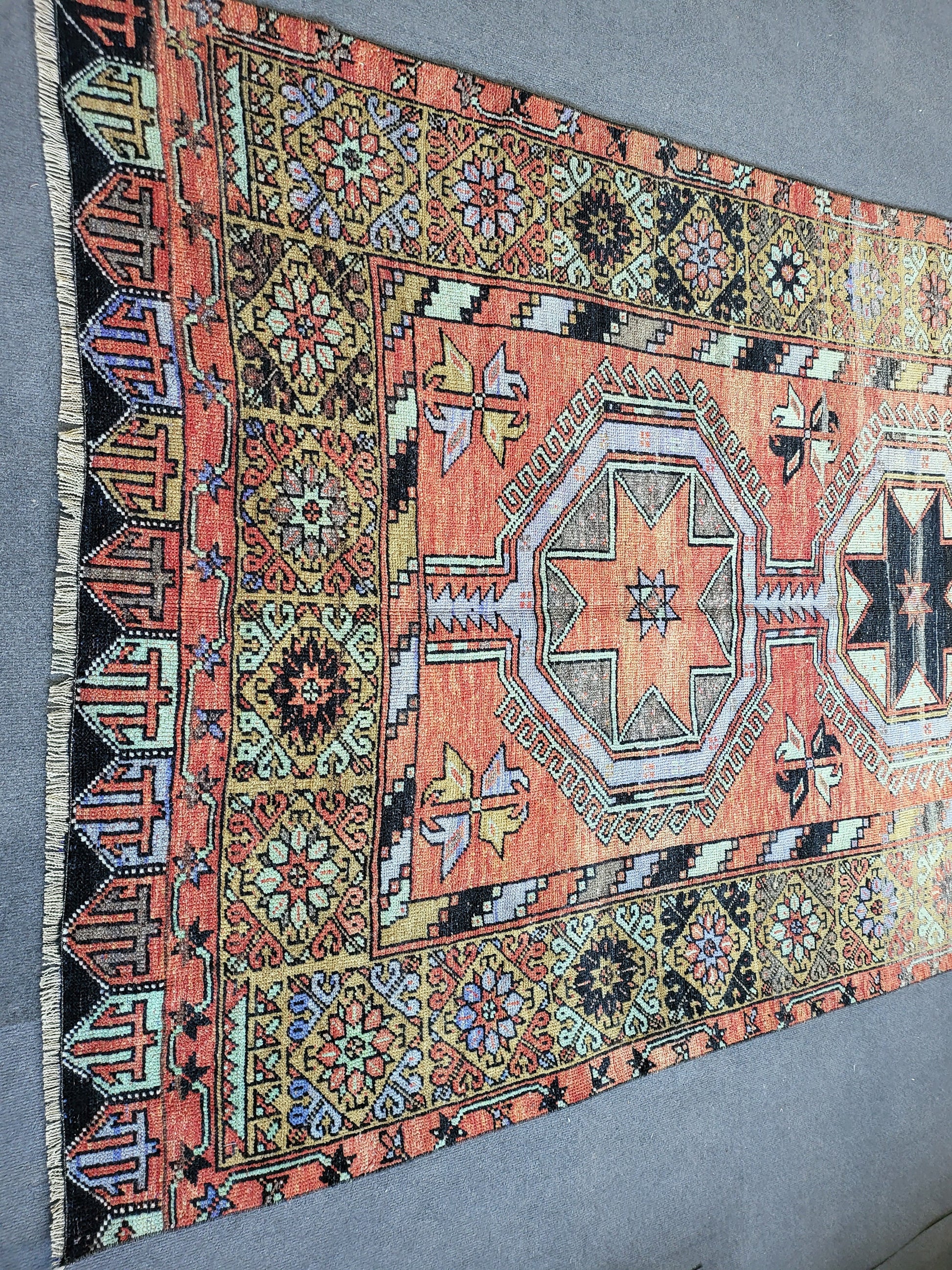 * THIS HAND KNOTTED RUNNER RUG IS A PIECE OF ART FROM CENTRAL ANATOLIA WITH TRADITIONAL PATTERN, HAND SPUN WOOL ,