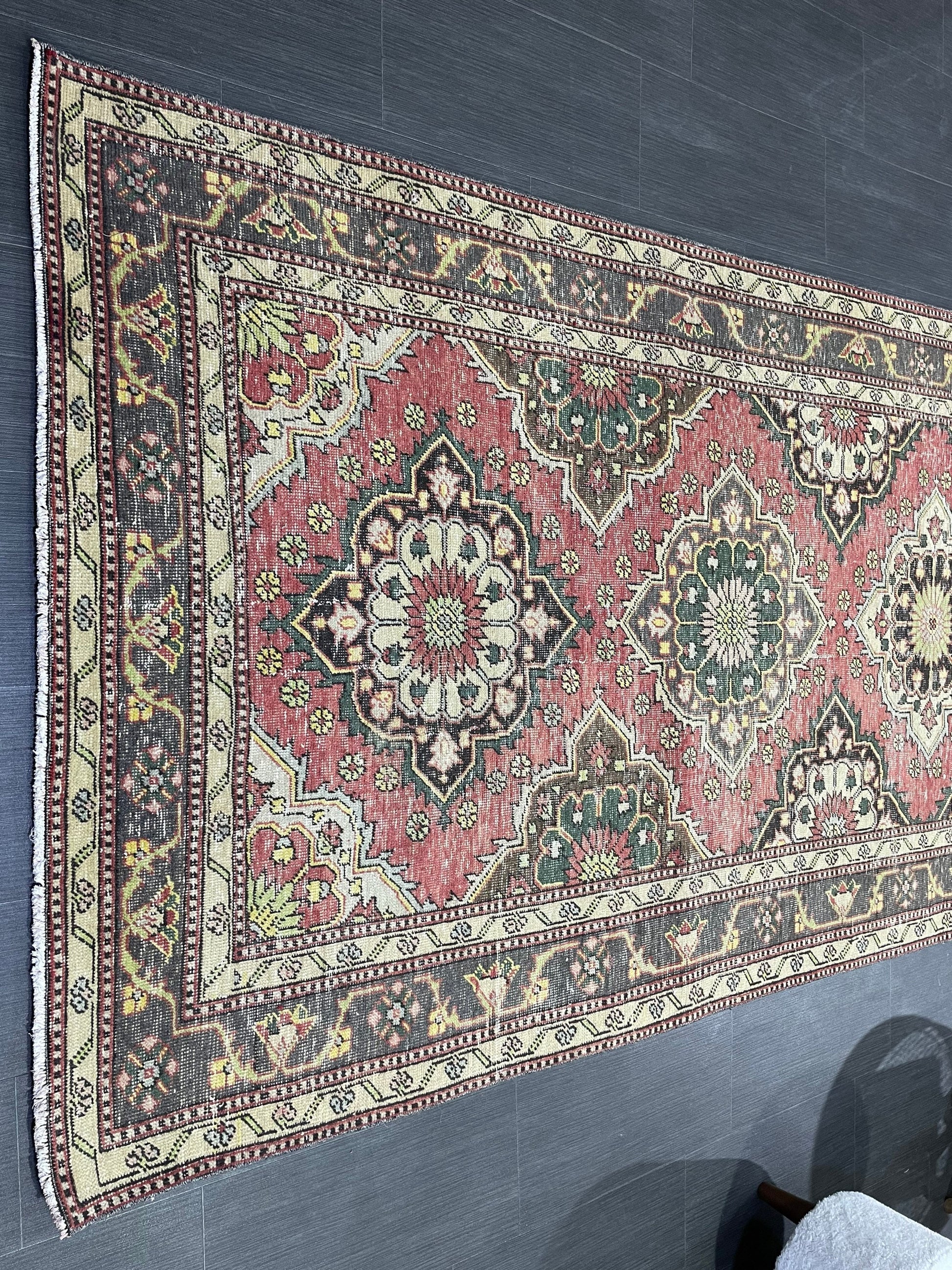 *A vintage handmade Turkish rug made of hand spun wool and double knotted on sturdy cotton foundation,