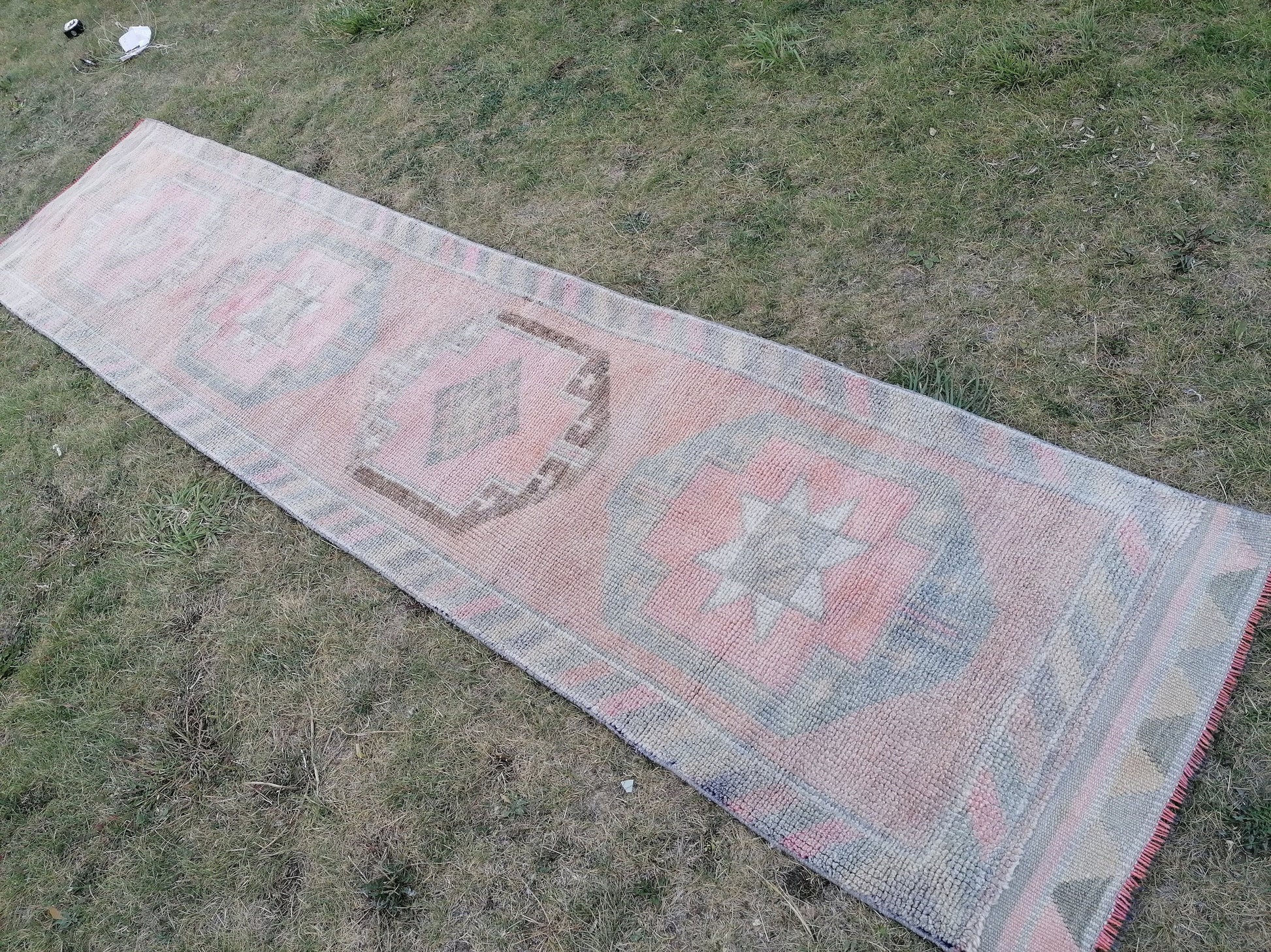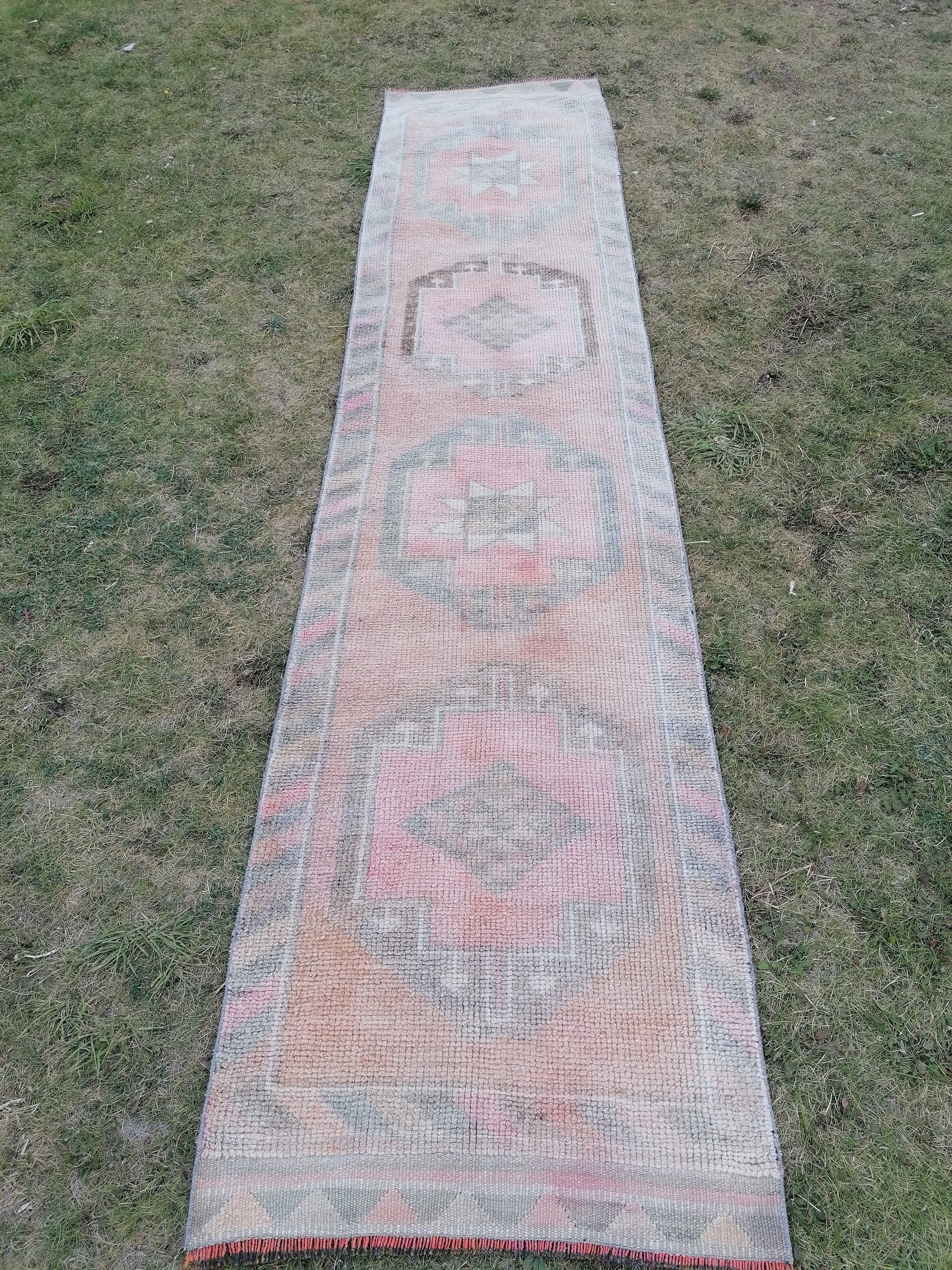 Turkish runner rug,vintage rug,vintage oushak rug 2'10x12'3 wool runner, hand made kitchen rug, hallway runner rug