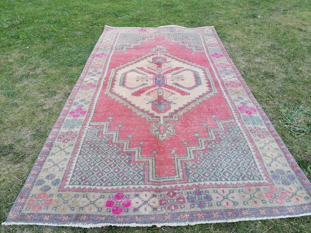 Turkish wool rug vintage handmade rug oushak rug kitchen rug bohemian rug 3'8x6'4 feet
