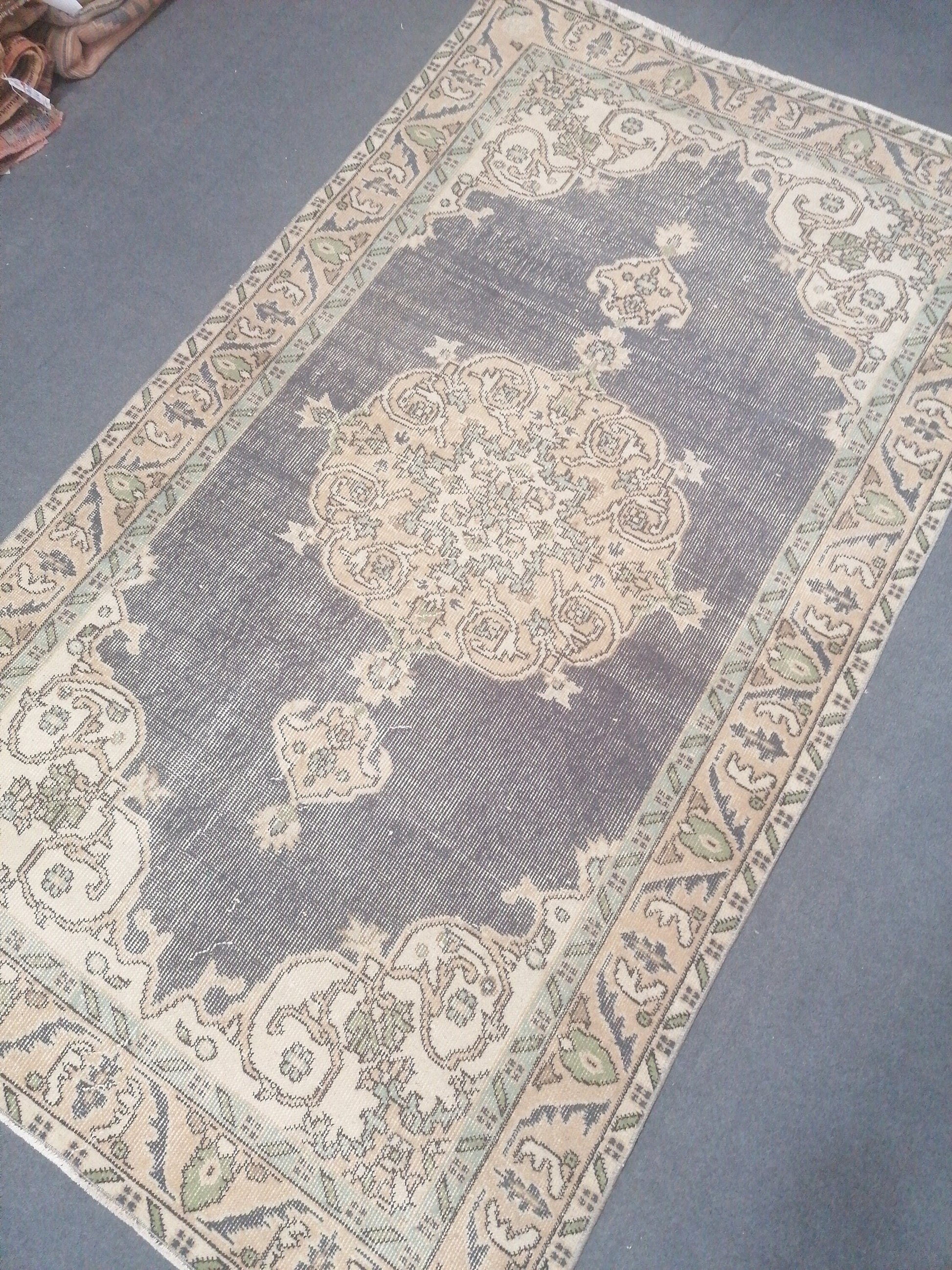 Vintage blue rug 3'9x6'6 distressed oushak rug