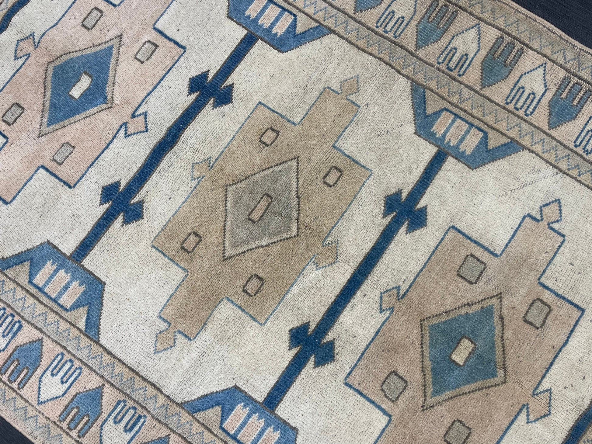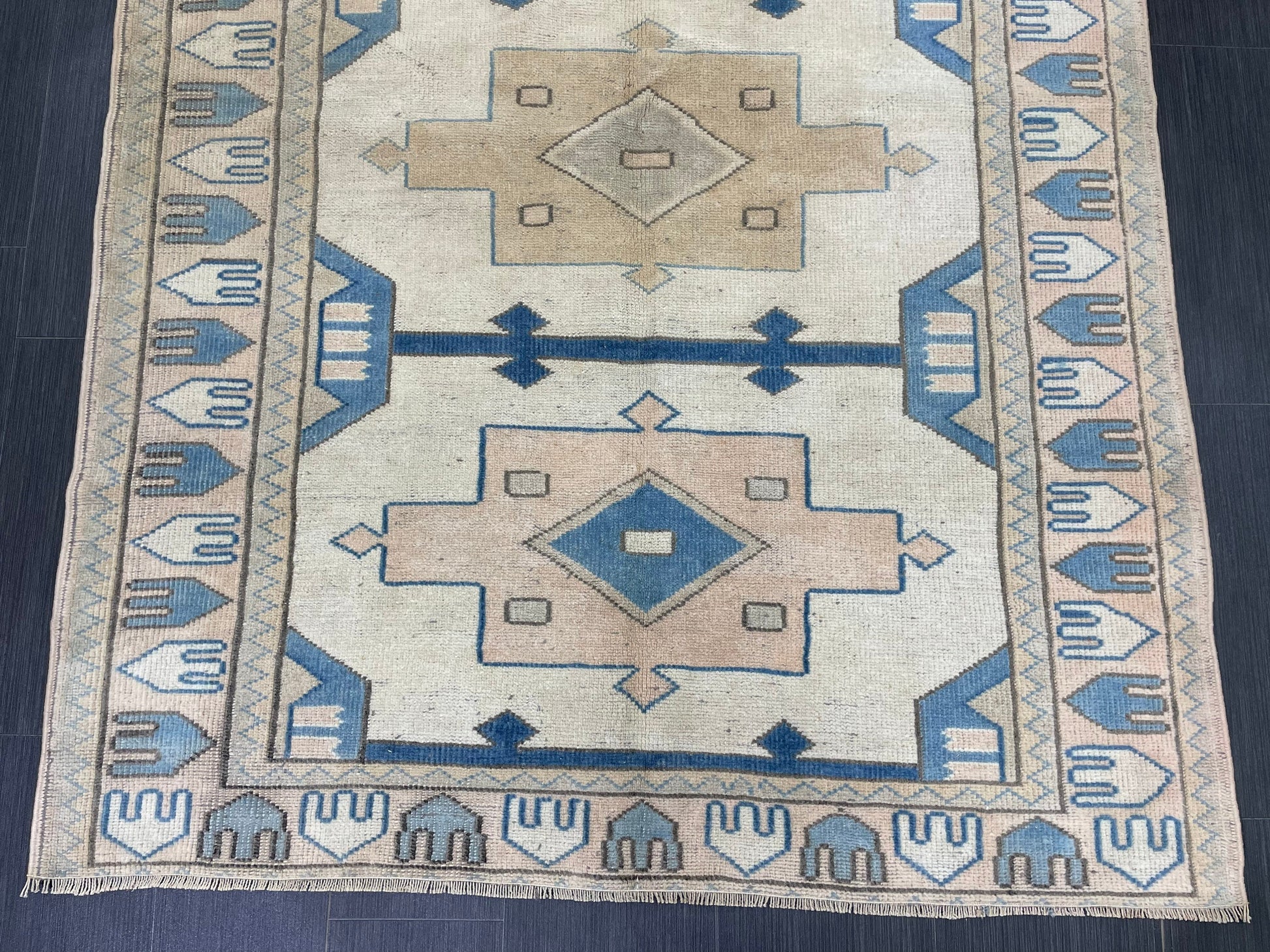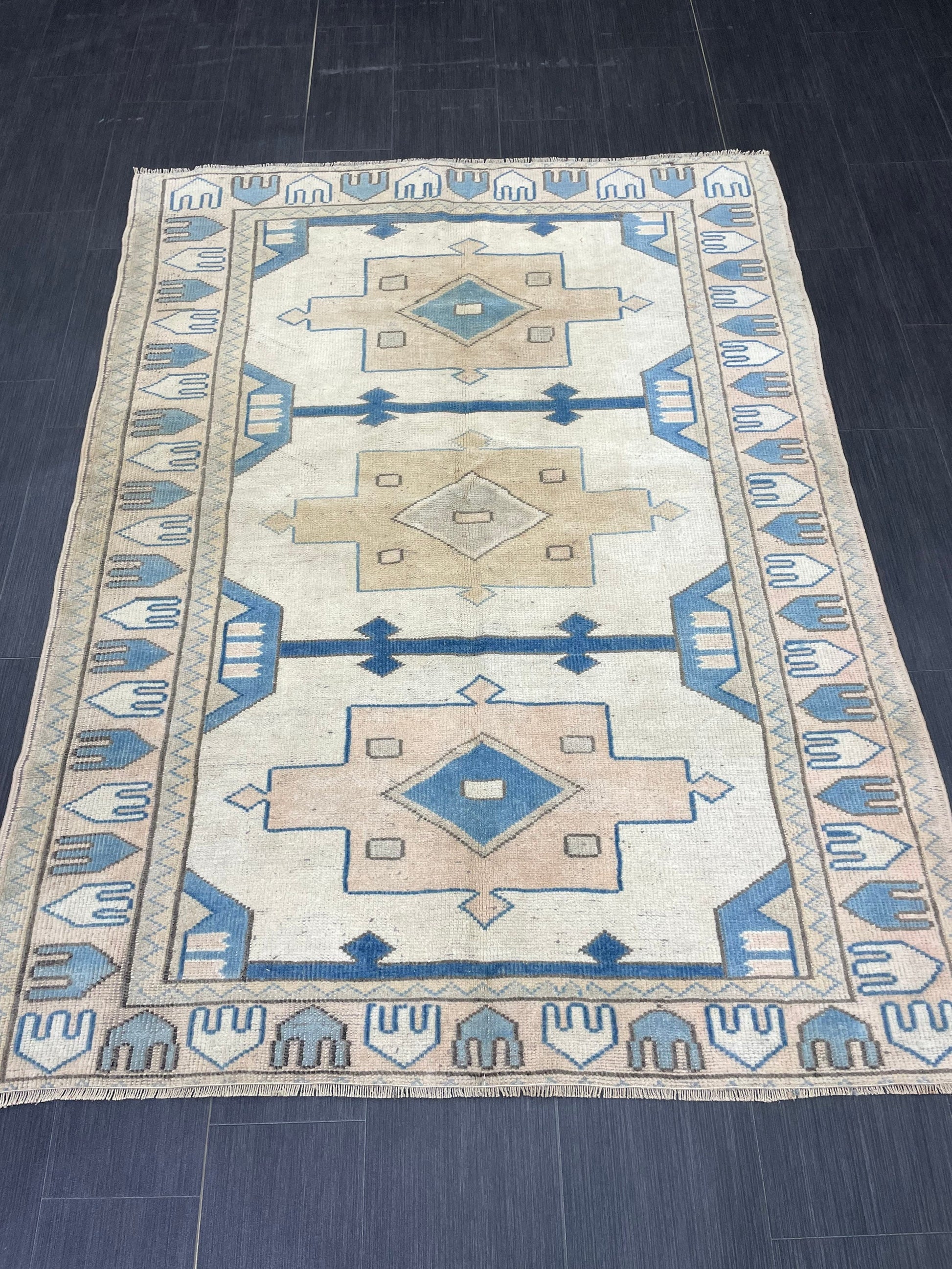 Vintage Blue Rug Muted 4.6 x 6.3 Vintage Rug Wool Light Blue Oushak Rug Hand Made Rugs Vintage Turkish Rug Living Room Rug