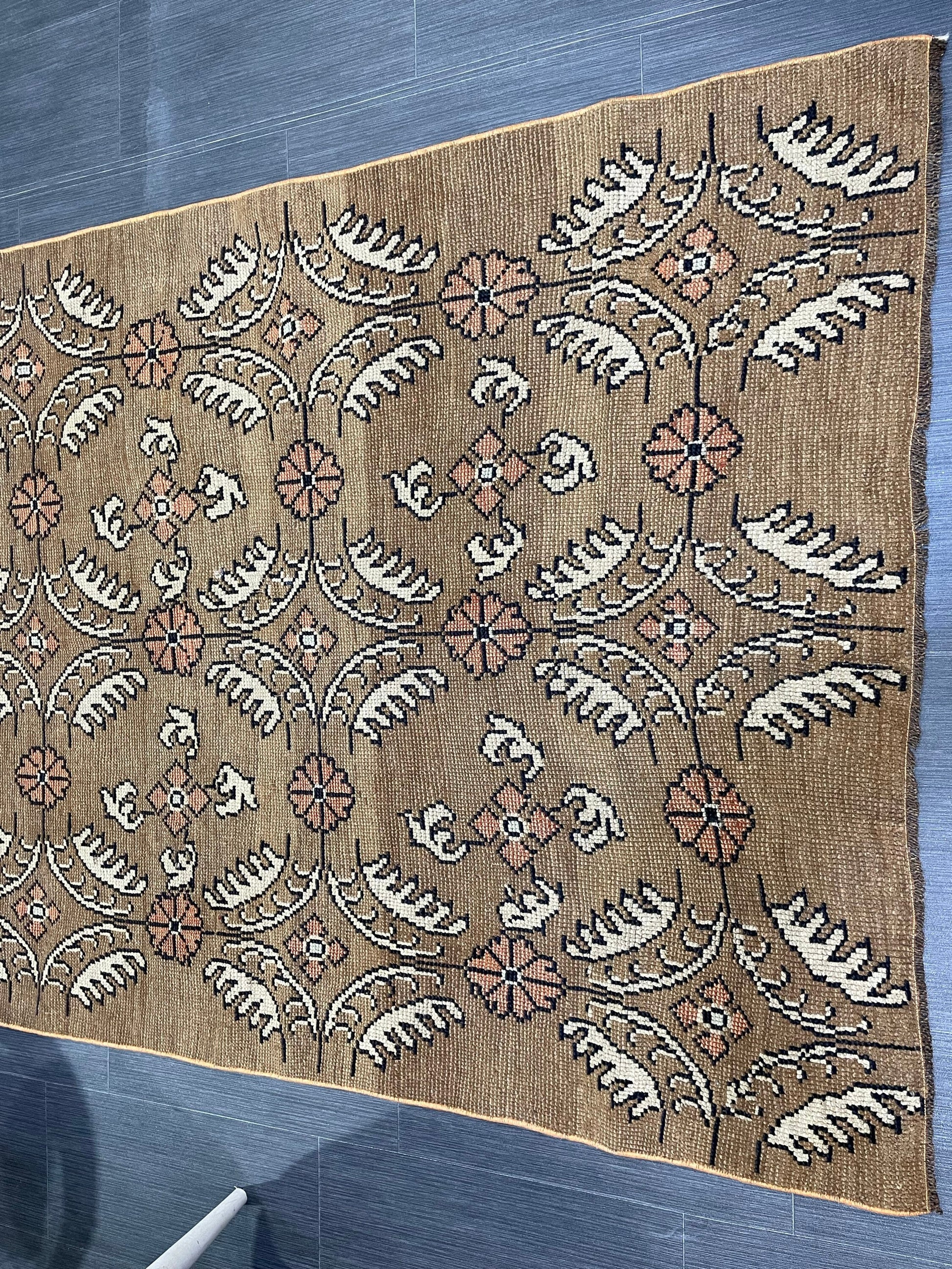 *A vintage handmade Turkish rug made of hand spun wool and double knotted on sturdy foundation,