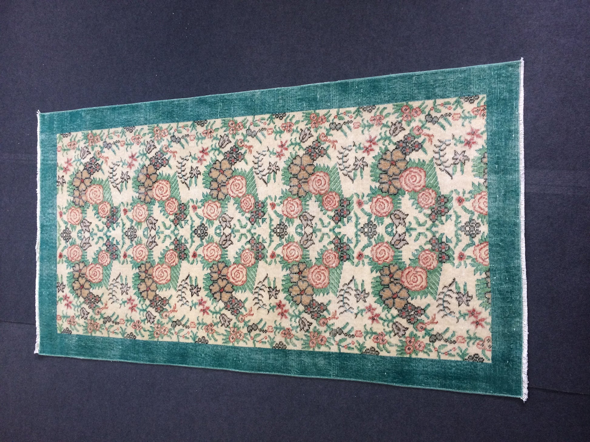 Vintage Green Turkish Floral Oushak Rug,Turkish Rug,Antique Rug,Oushak antique Rug,Hand woven Rug,Weaving Rug,Ethnic Rug,Kitchen Rug