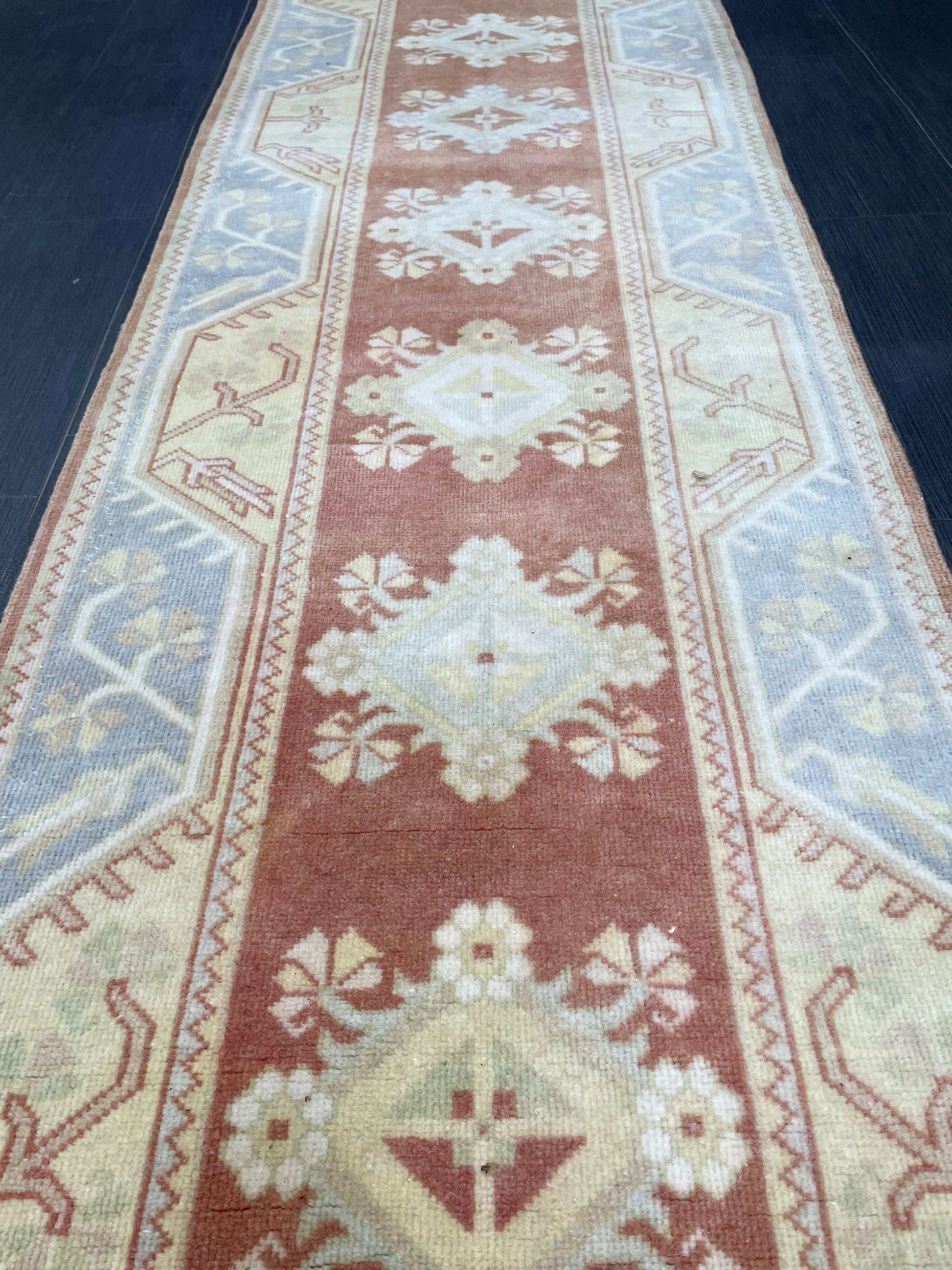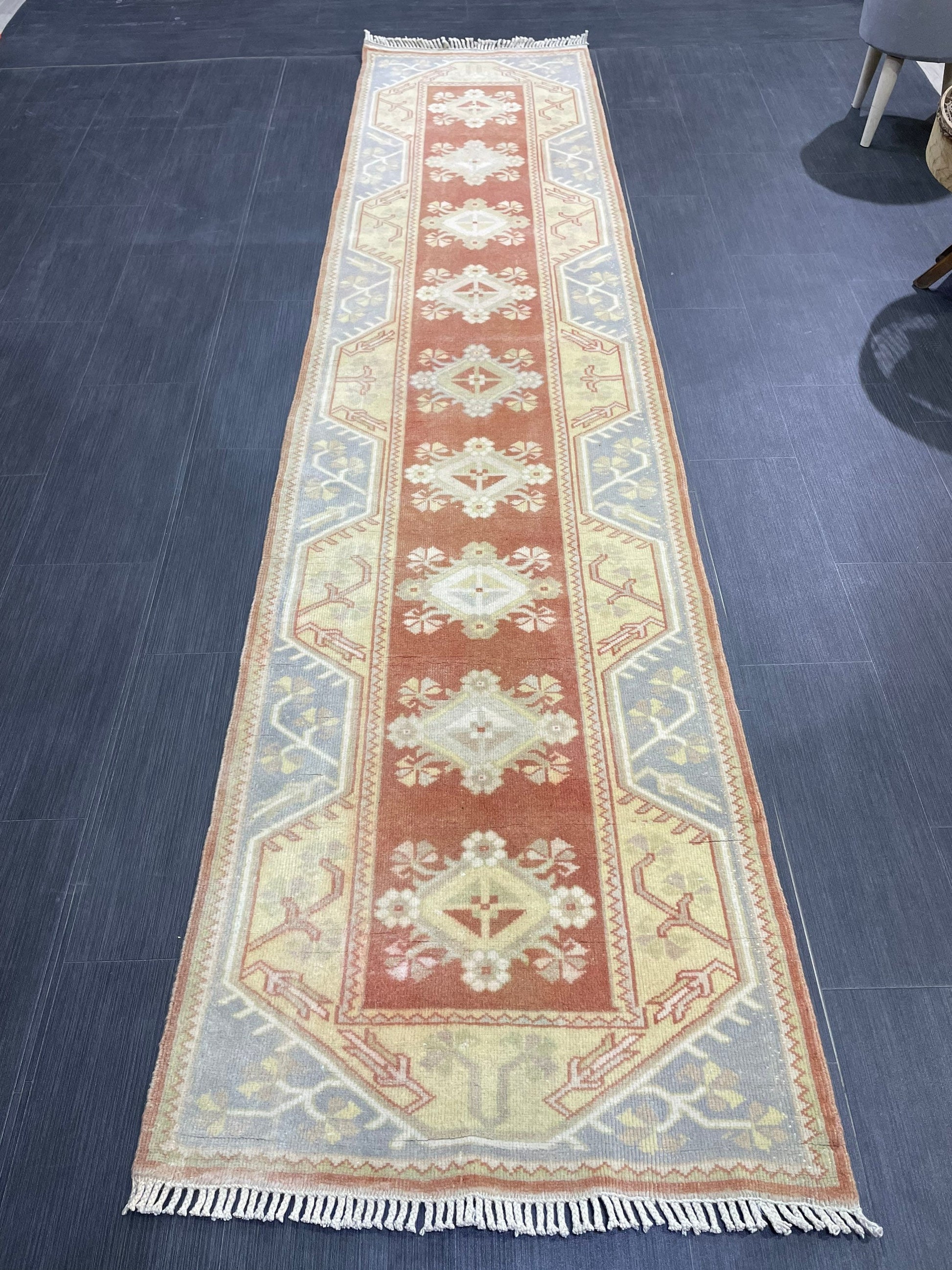 Vintage Hand Knotted Rug, Natural Wool Runner 2.7 x 10.5 Rug, Handmade Runner Rug, Turkish Runner Rug, Muted Runner Rug, Wool Kitchen Runner
