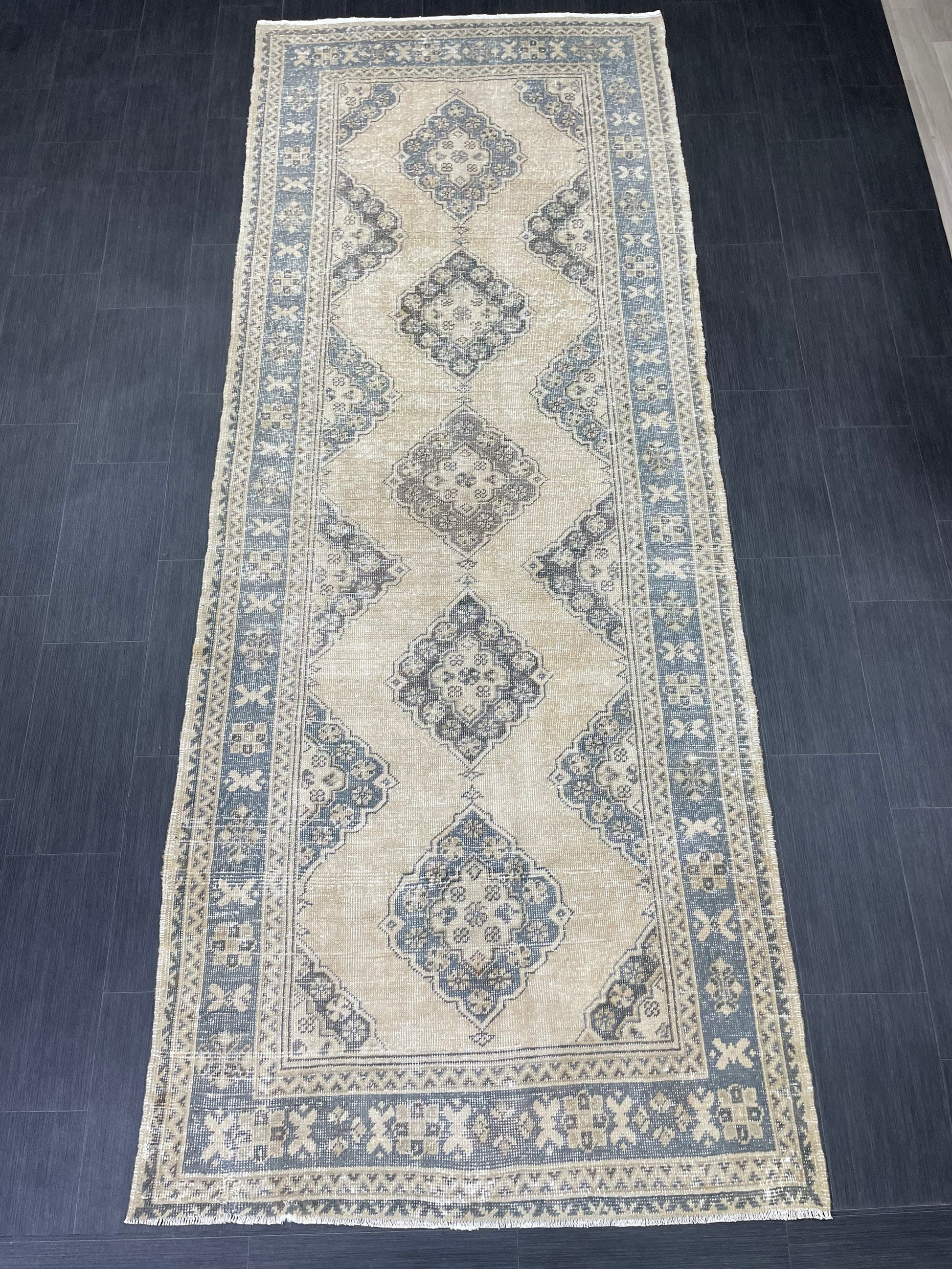 Vintage Hand Knotted Rug Vintage 4.2 x 11 Runner Muted Runner Rug Turkish Runner Rug Vintage Runner Rug Star Kitchen Runner Most See Rug