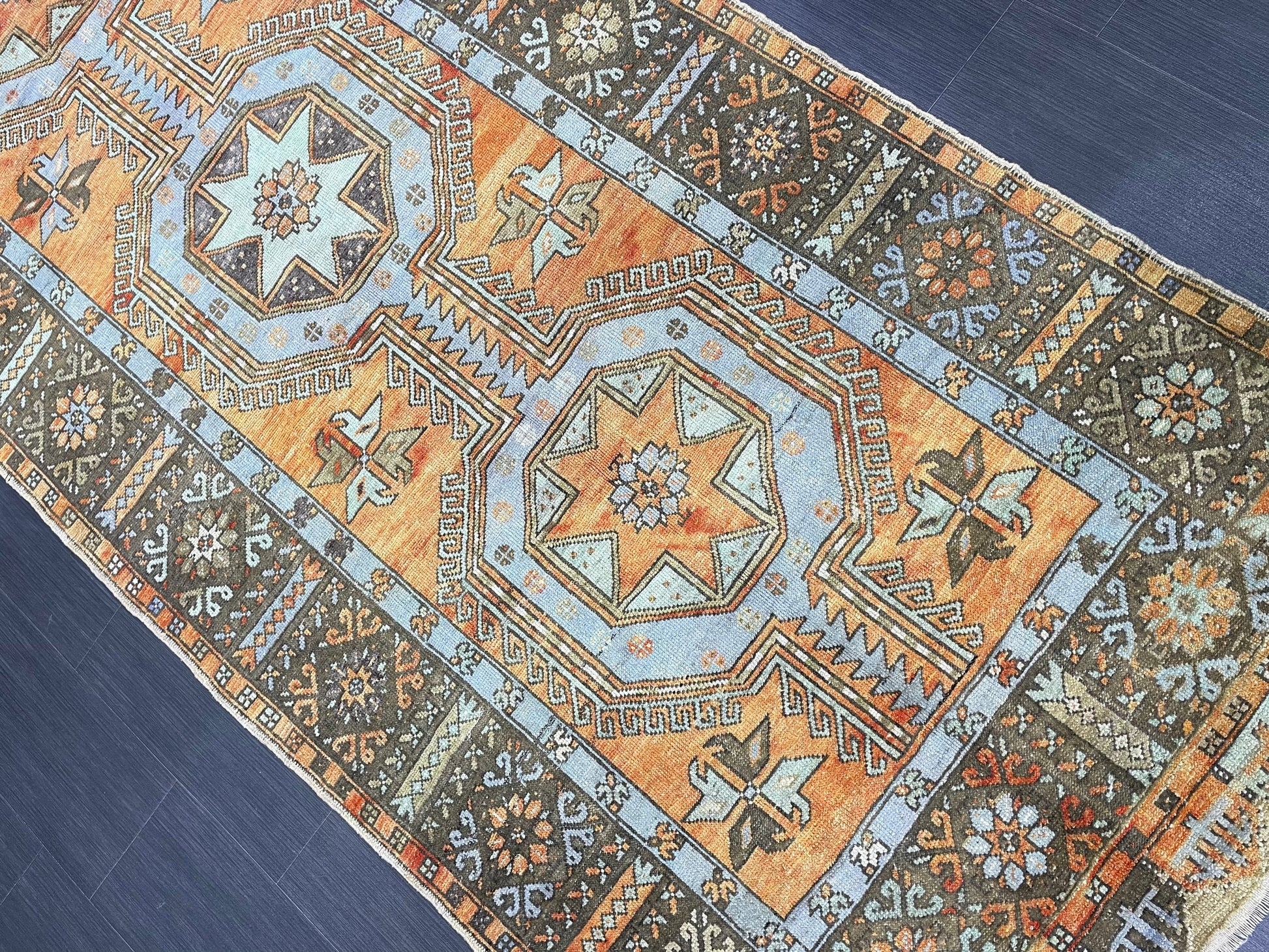 Vintage Hand Knotted Vintage 4.3 x 11.3 Runner Oushak Runner Rug Turkish Runner Rug Vintage Runner Rug Star Kitchen Runner Natural Wool