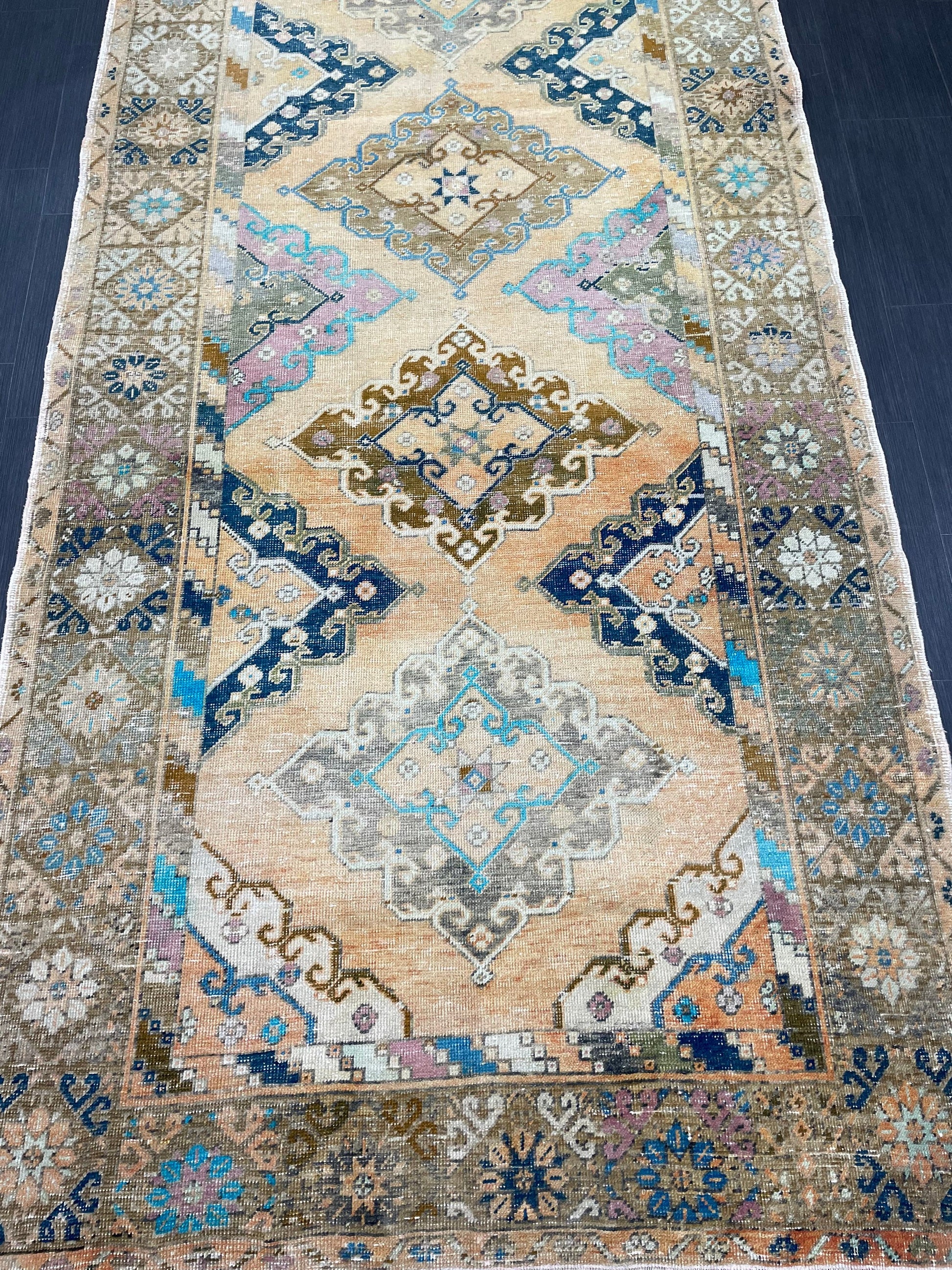 *A vintage handmade Turkish rug made of hand spun wool and double knotted on sturdy foundation,