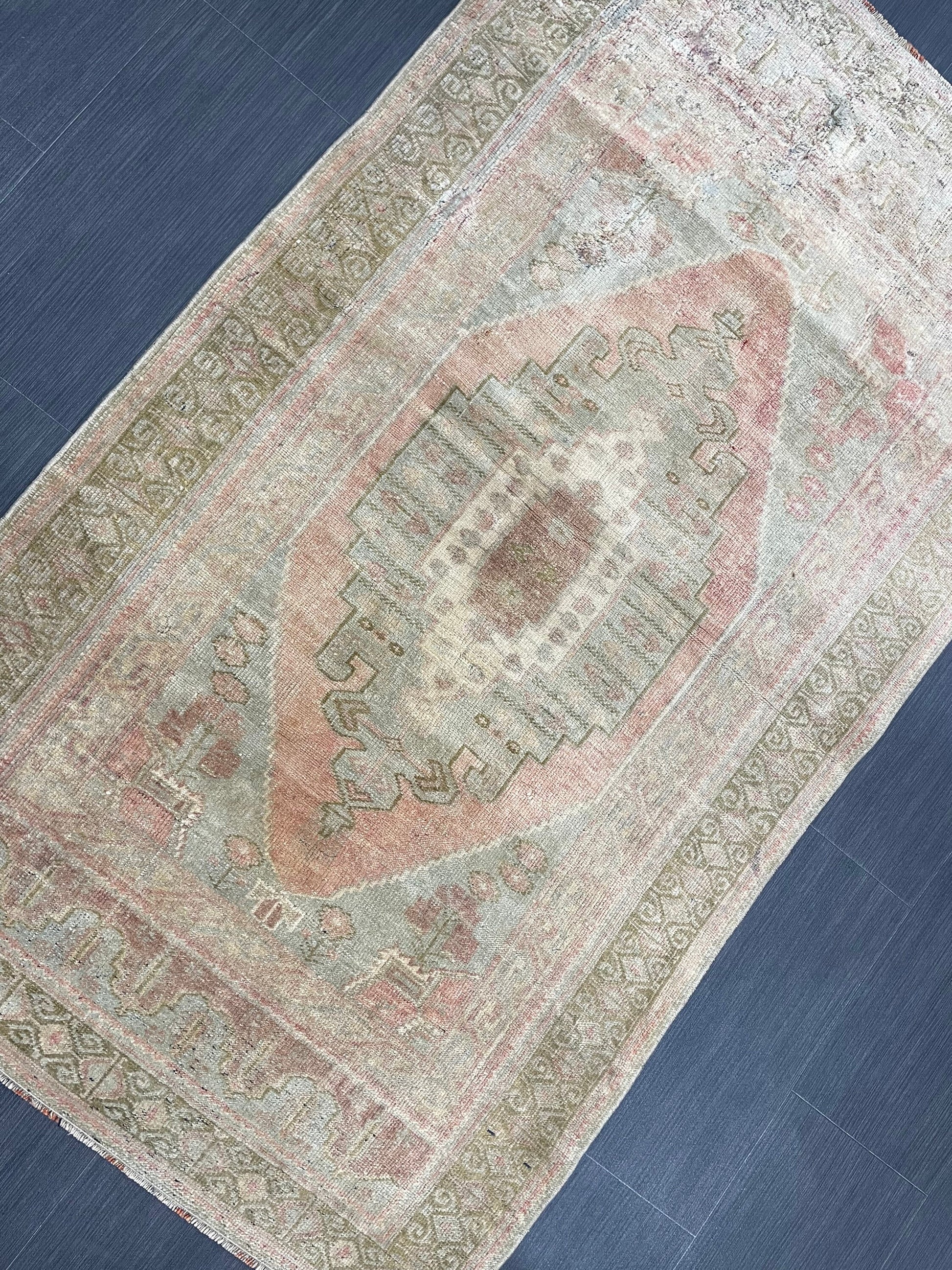 Vintage Handmade Rug Muted 3.2 x 5.6 Vintage Rug Wool Oushak Rug Distressed Rugs Vintage Turkish Rug Living Room Rug