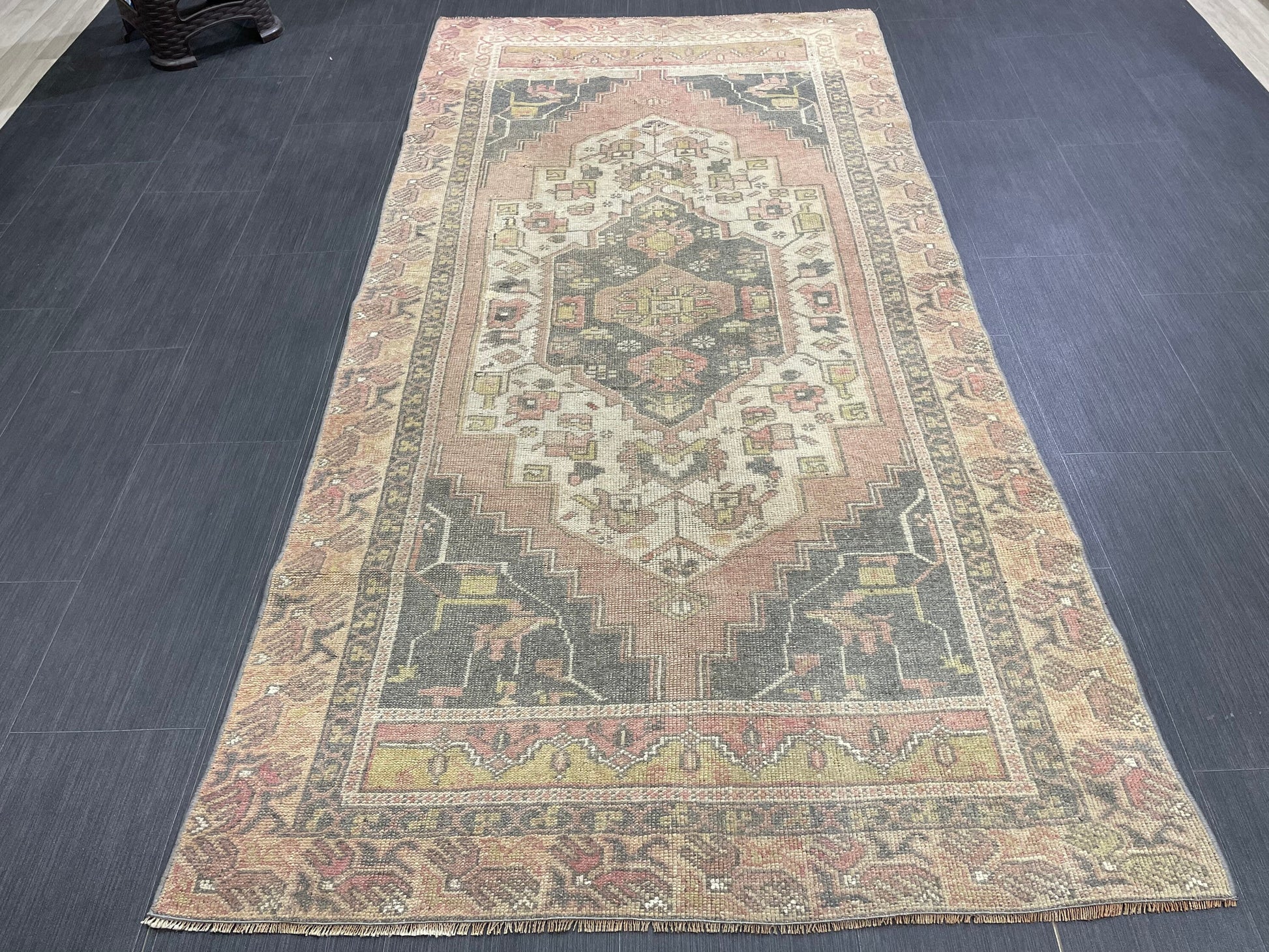 Vintage Handmade Rug Muted 3.6 x 7.3 Vintage Rug Wool Oushak Rug Hand Made Rugs Vintage Turkish Rug Living Room Rug