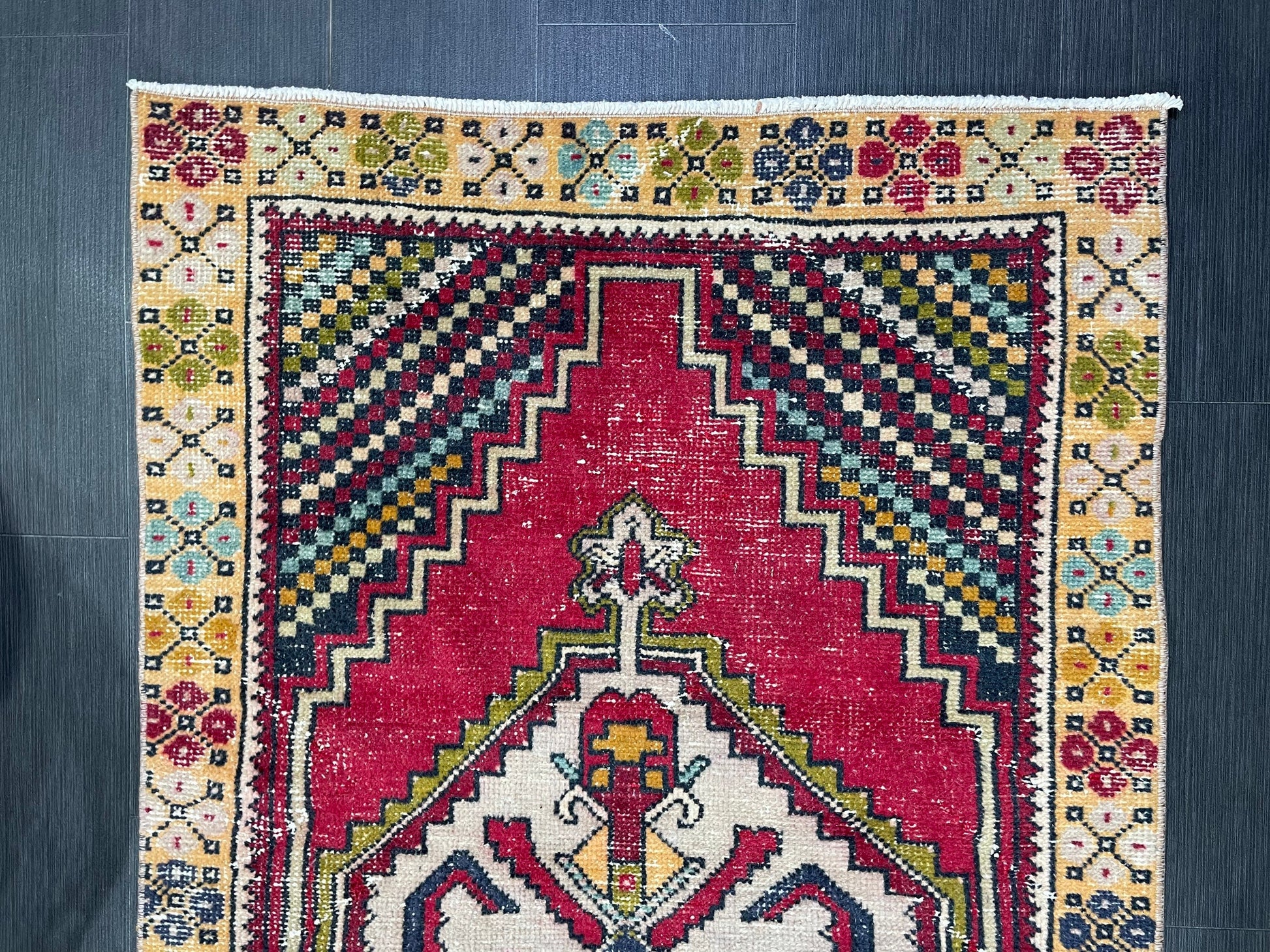 *A vintage handmade Turkish rug made of hand spun wool and double knotted on sturdy foundation,