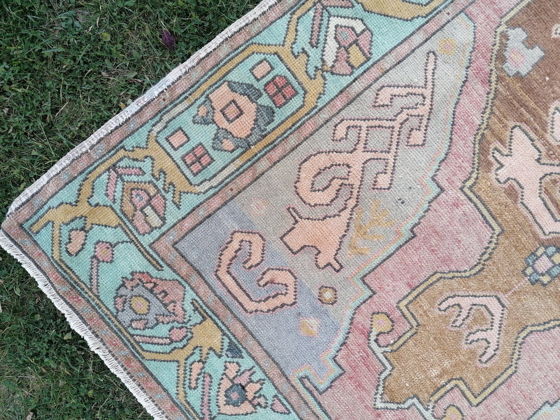 Vintage oushak hand made wool rug 4’4.8’3 kitchen rug, bohemian rug, area rug