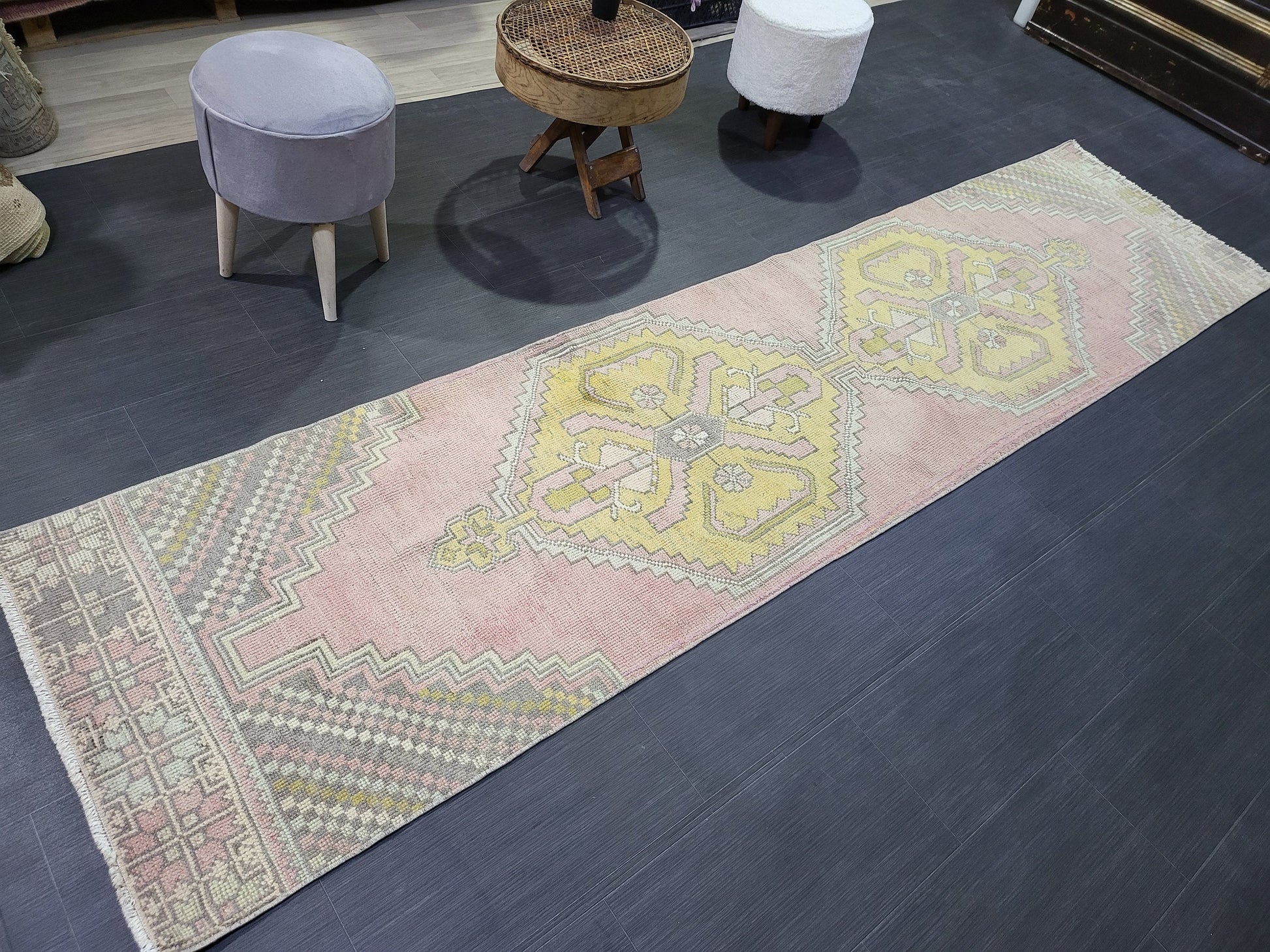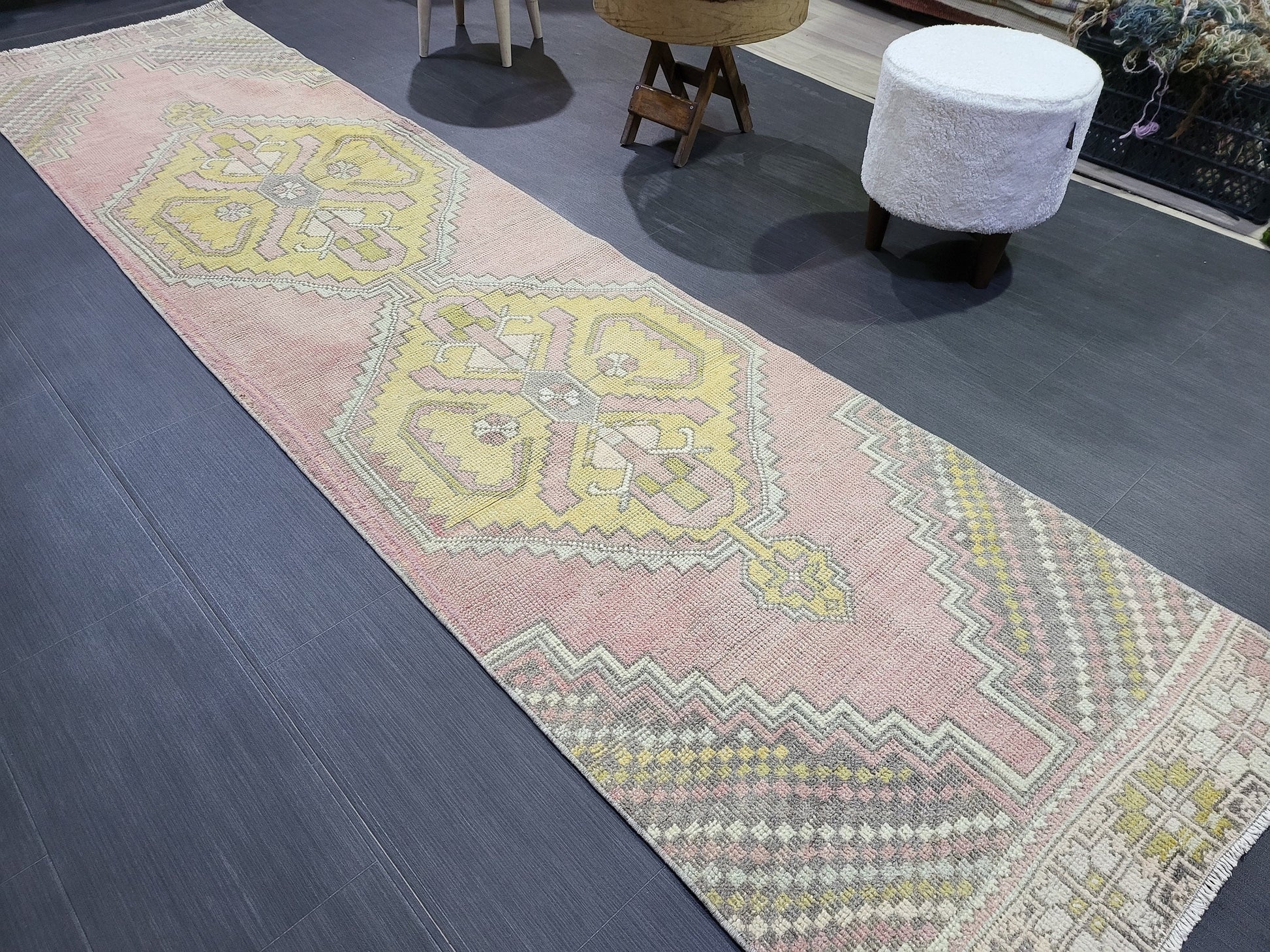 VINTAGE Oushak Runner, Turkish Runner Rug, Vintage 2.6 x 10.2 Runner Rug, Hallway Runner Rug, Turkish Rug Runner Wool Runner Rug