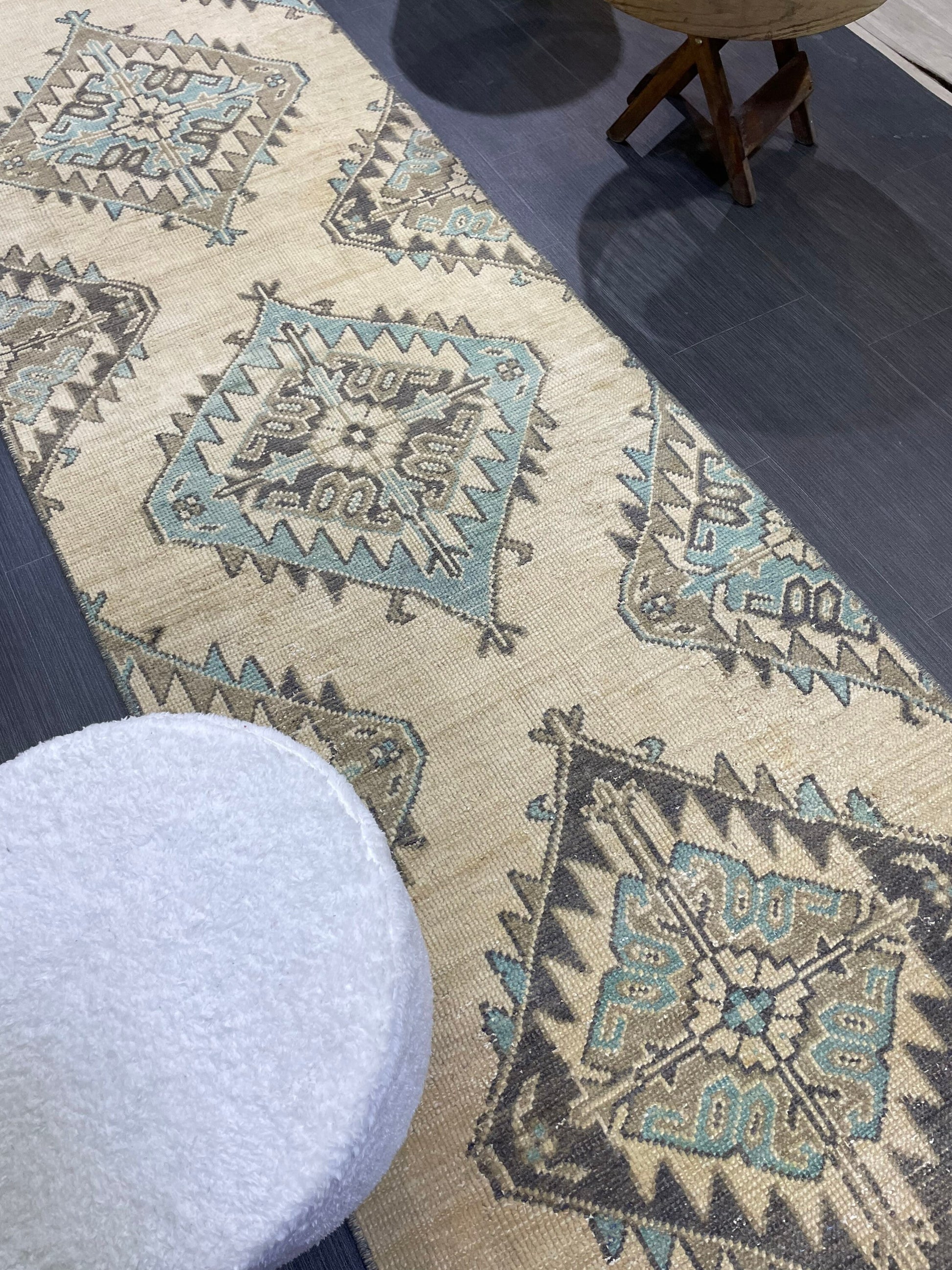 * THIS HANDMADE WOOL RUNNER RUG IS A PIECE OF ART FROM CENTRAL ANATOLIA WITH TRADITIONAL PATTERN, HAND SPUN WOOL ,
