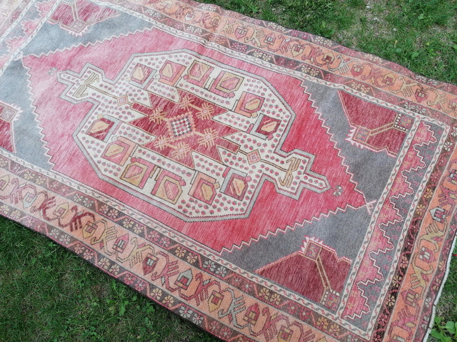 Vintage rug 4x7'5 oushak rug, kitchen rug, bohemian rug ,floor rug, handmade wool rug