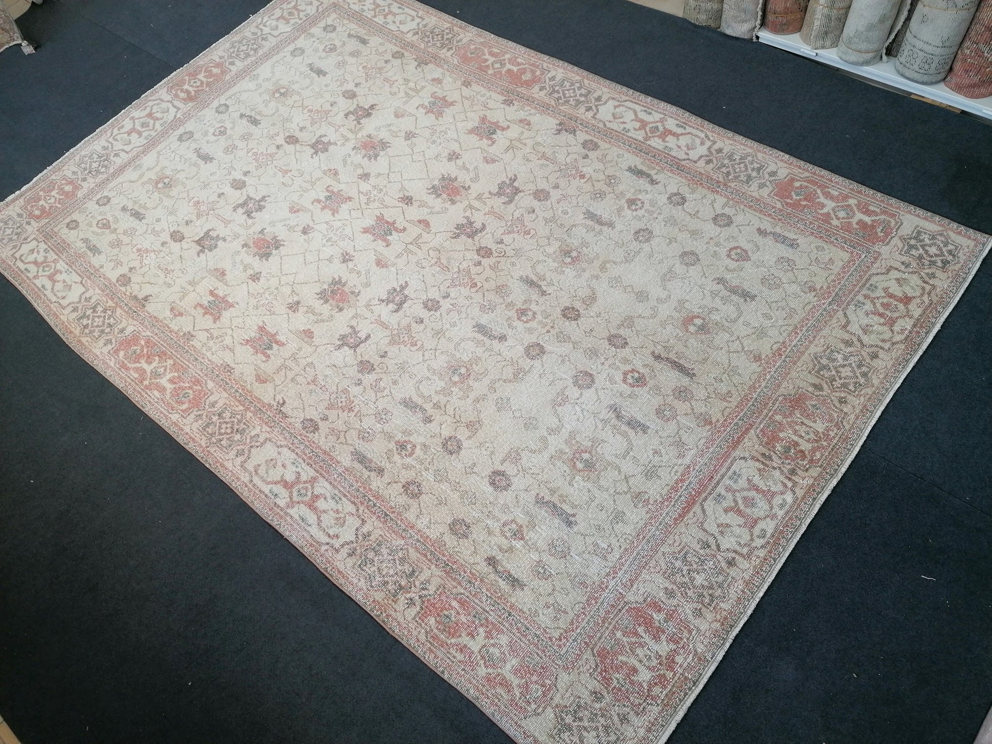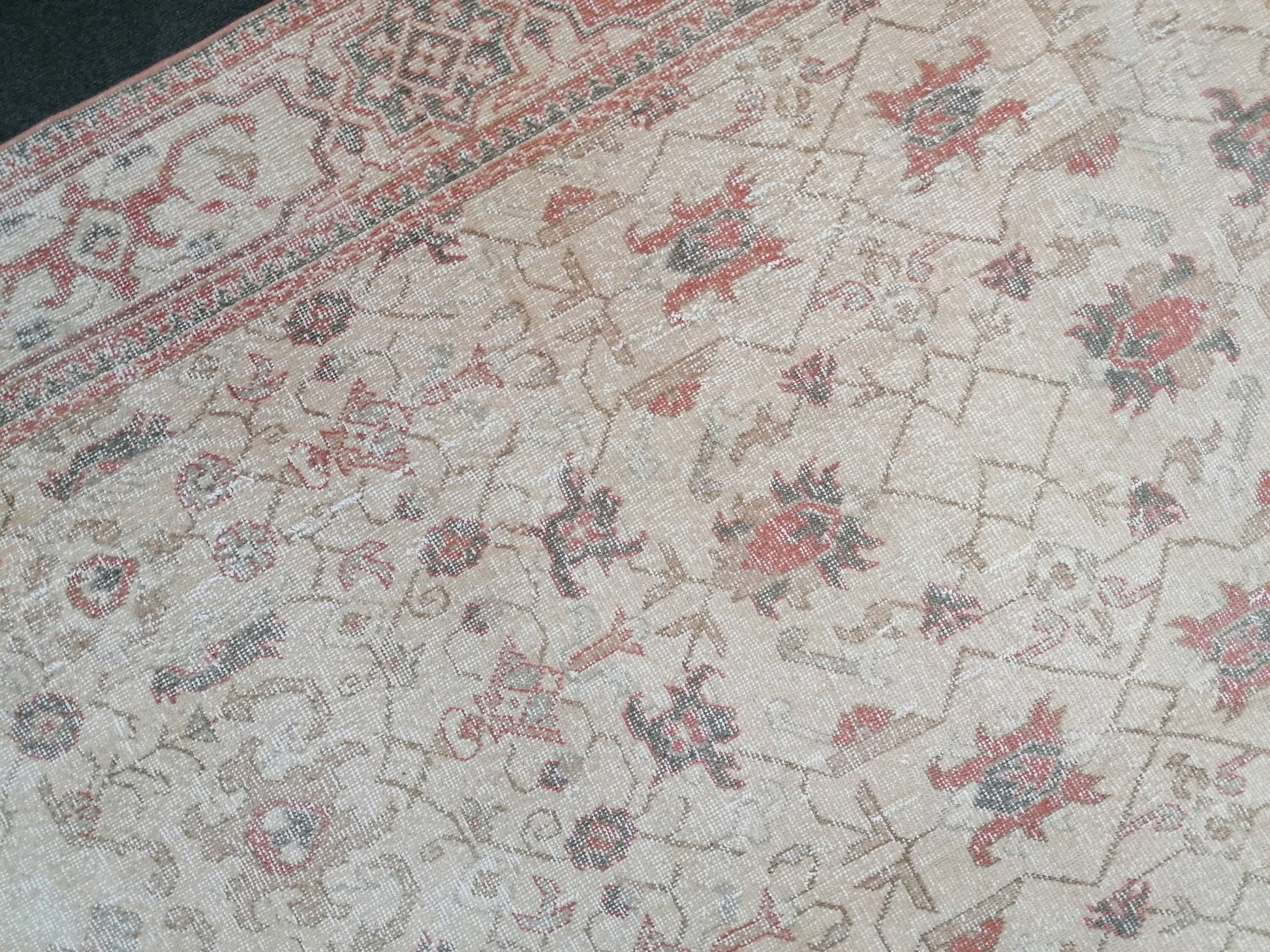 Vintage rug 6'10x10'4 large turkish rug, pastel vintage turkish rug, oushak hand made wool rug, large living room rug, bohemian rug
