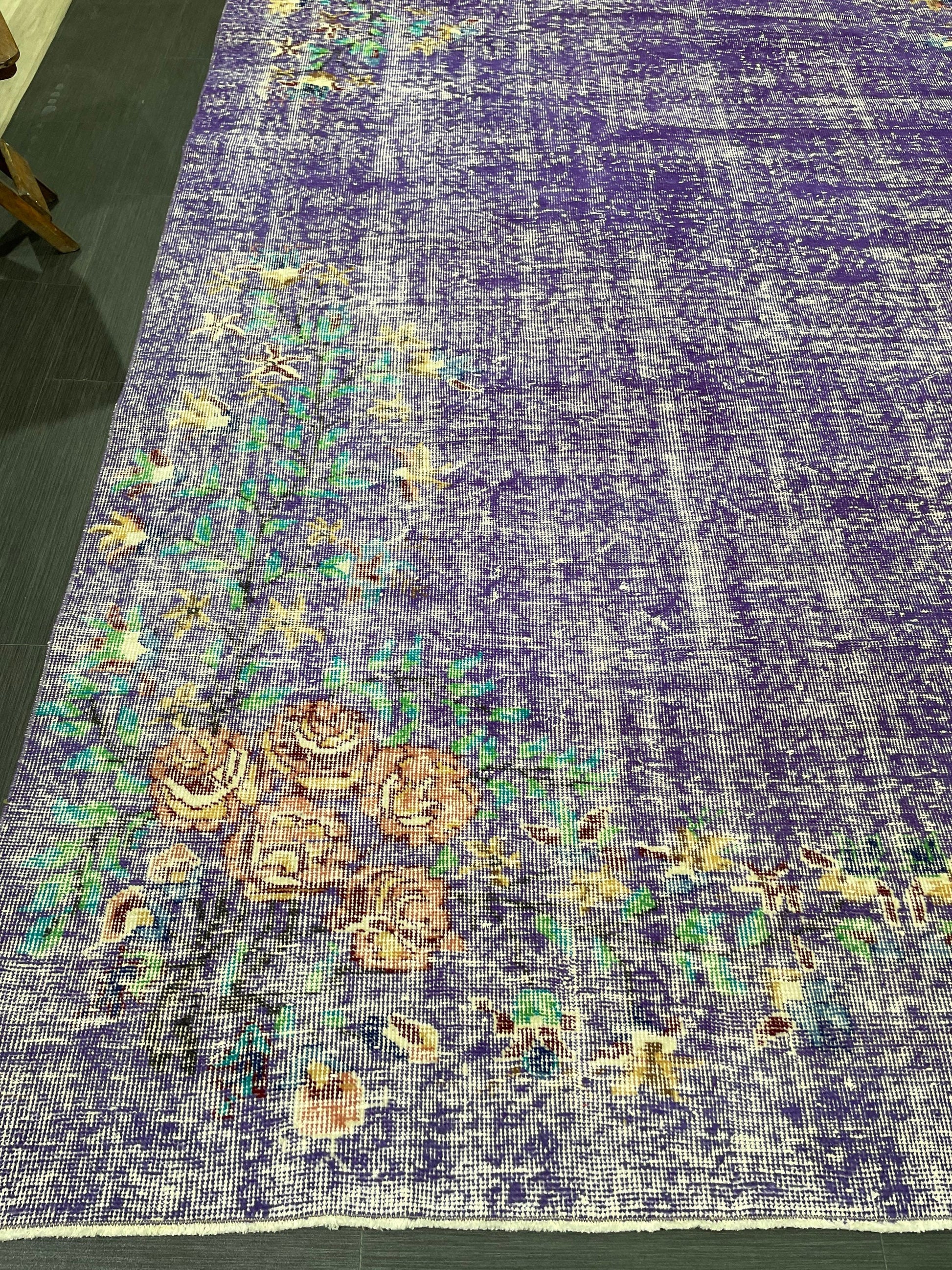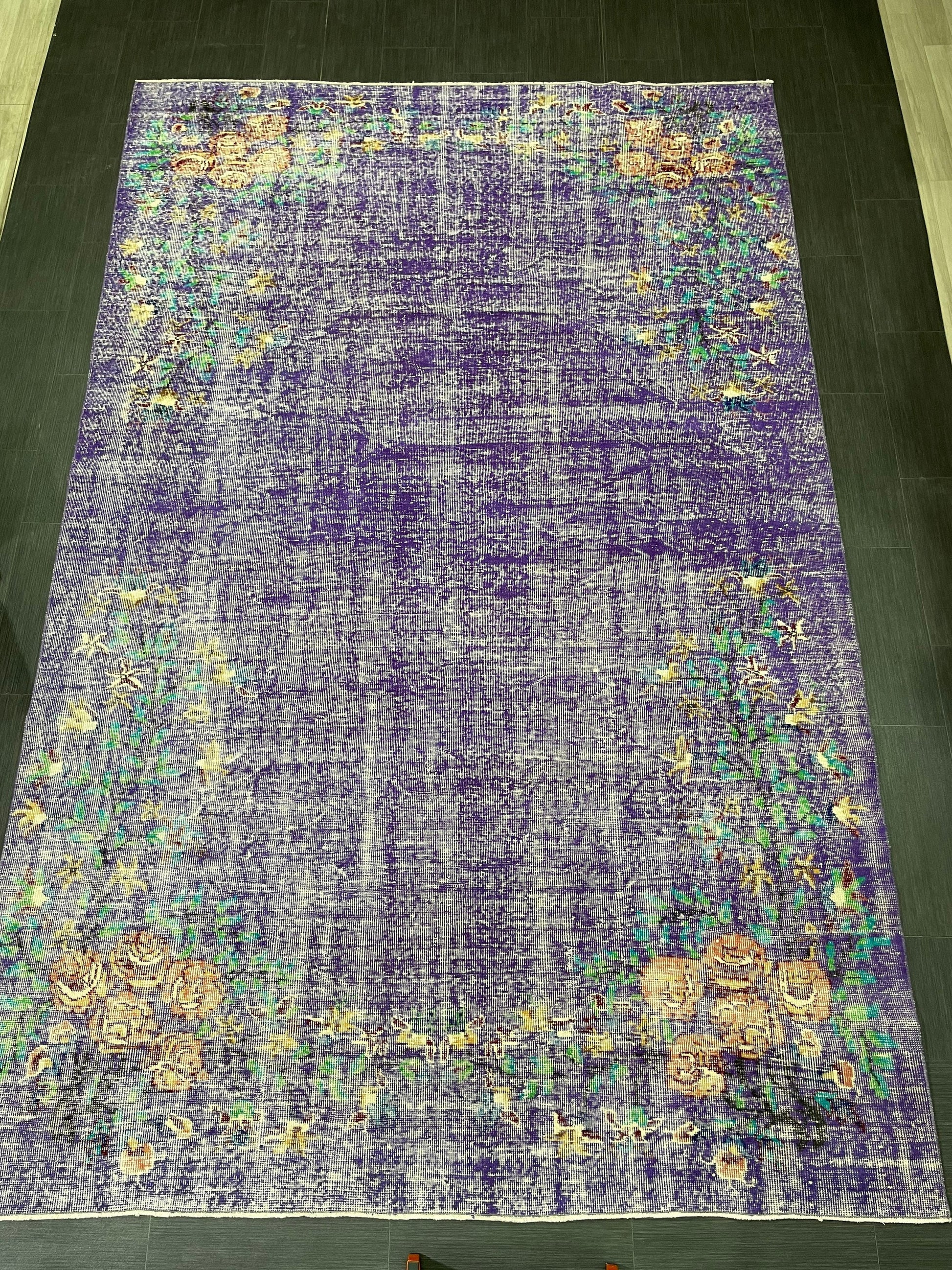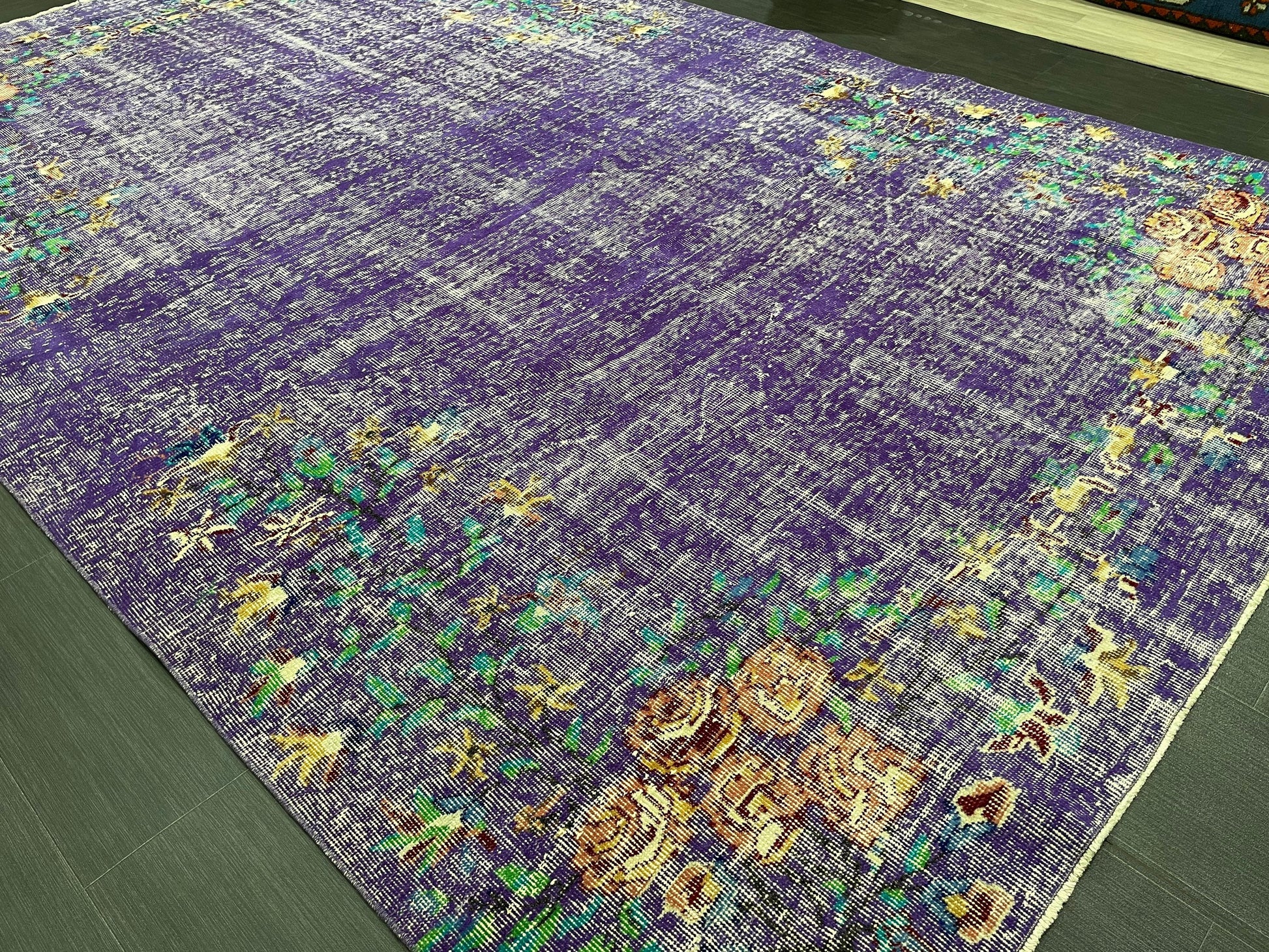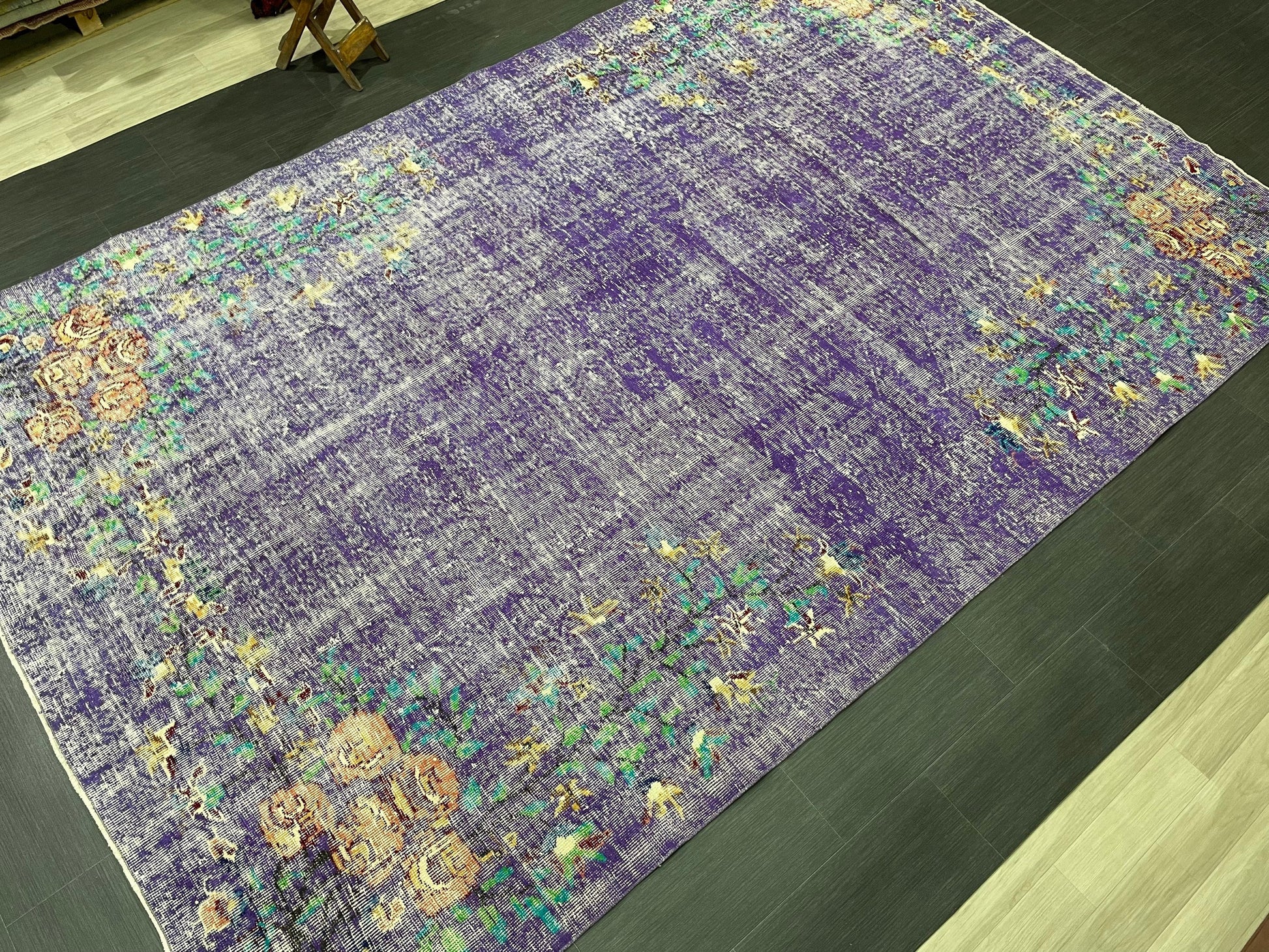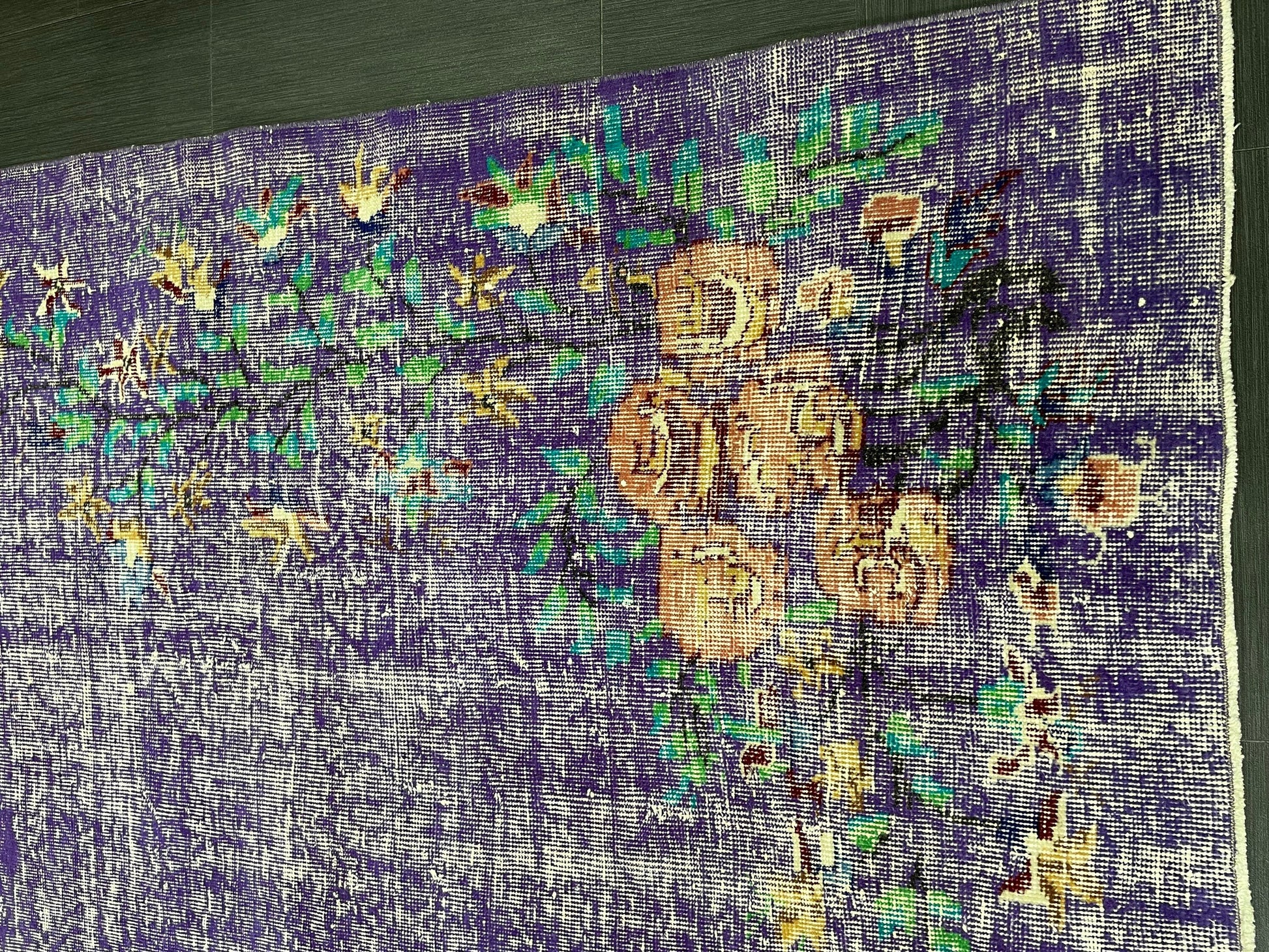 Vintage Rug 7 x 10.8 TURKISH Handmade Rug Violet Purple Vintage Hand Knotted Rug Distressed Persian Rug Oushak Rug, Wool Rug