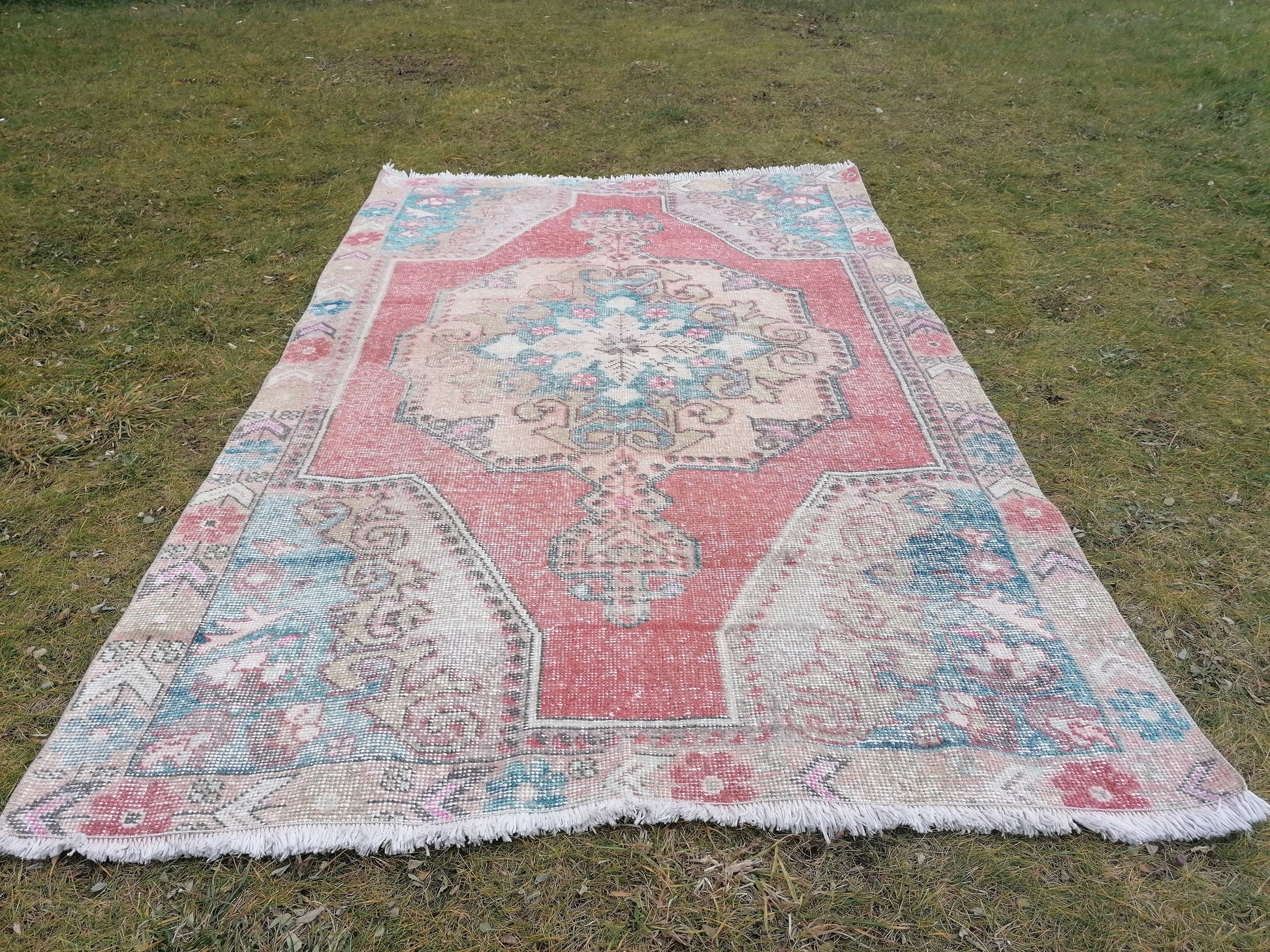Vintage rug 7x4'6 turkish rug, kitchen rug, oushak rug