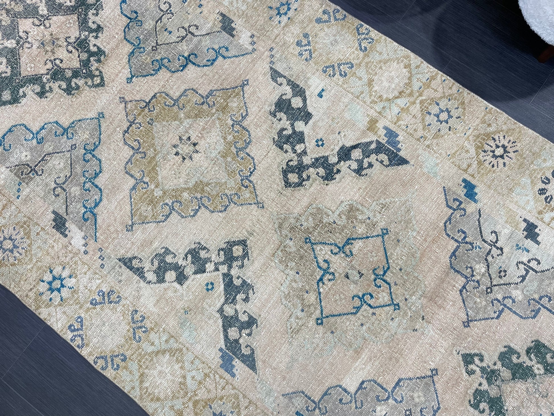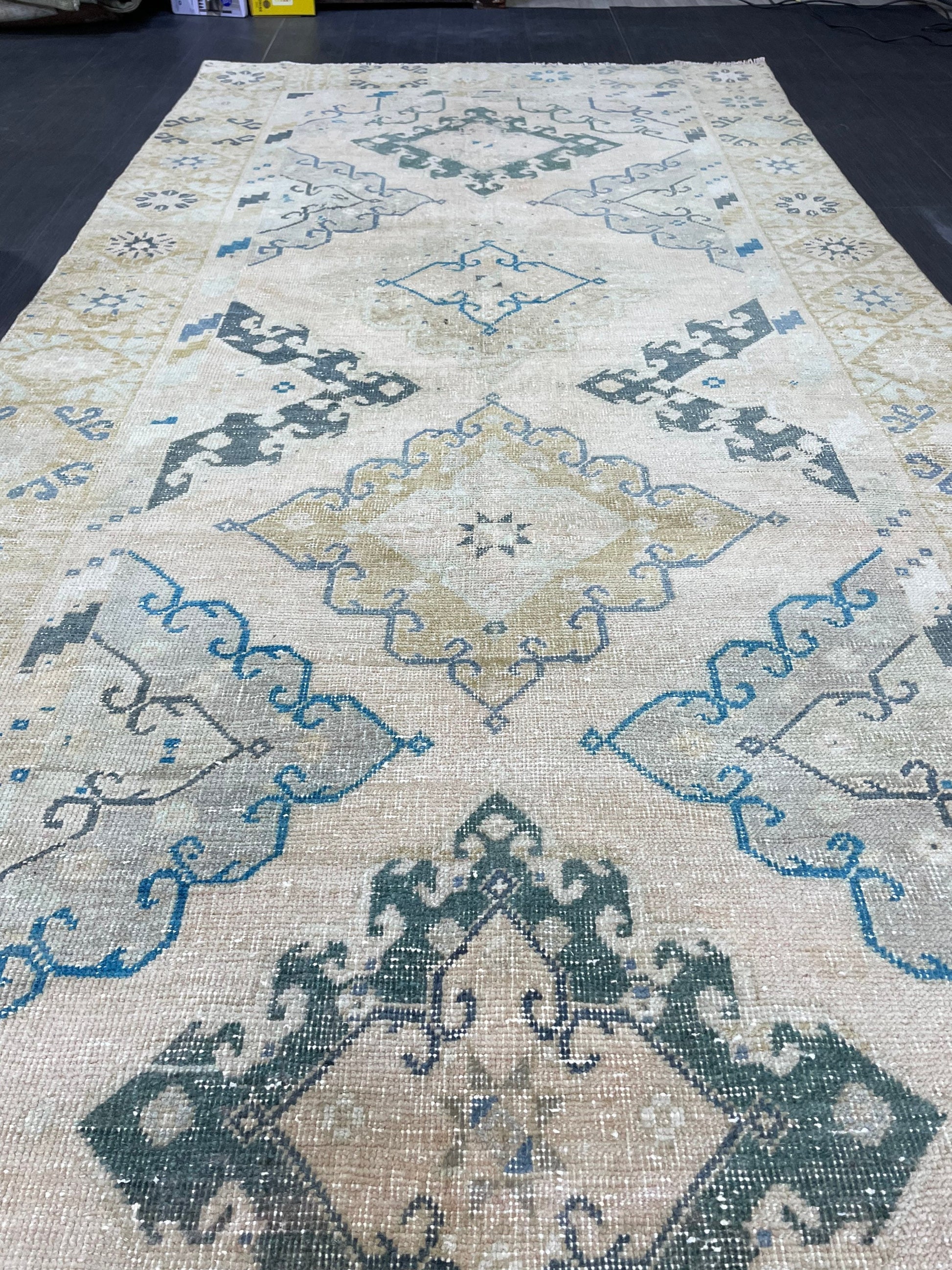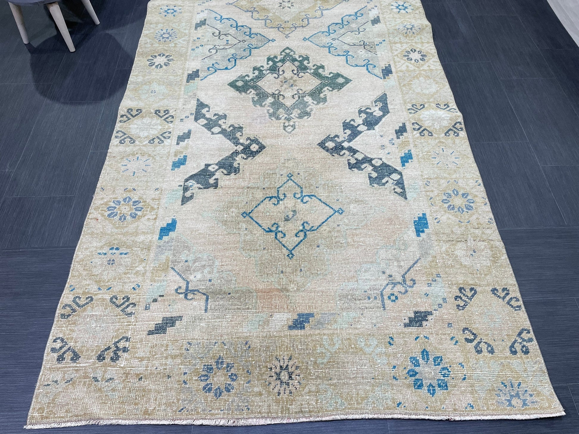 Vintage RUG, Antique Rug, 4.6 x 12.9 Distressed Muted Rug, Muted Wool Neutral Rug, Handmade Rug, Vintage Turkish Rug, Hand Knotted Rug,