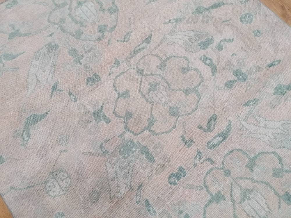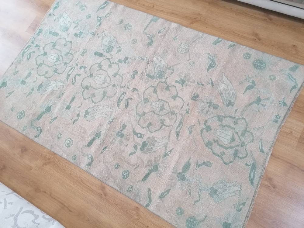 Vintage rug, green oushak rug 4'6x7'2 living room rug