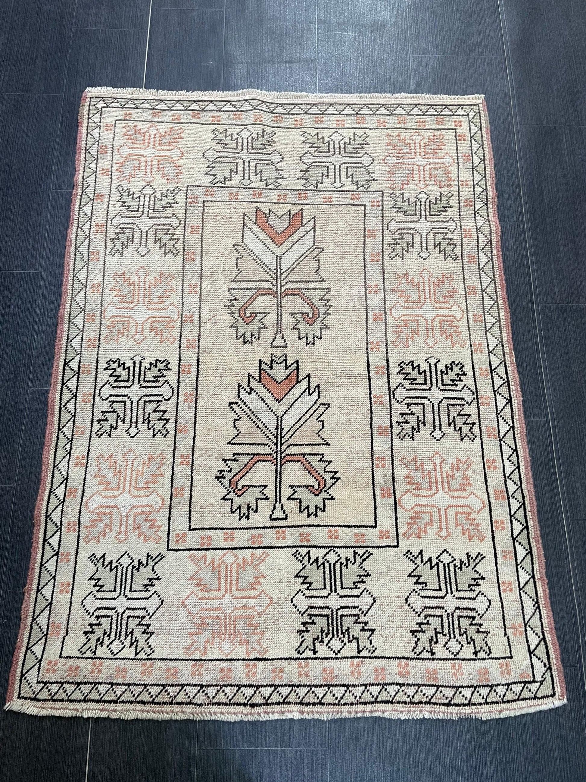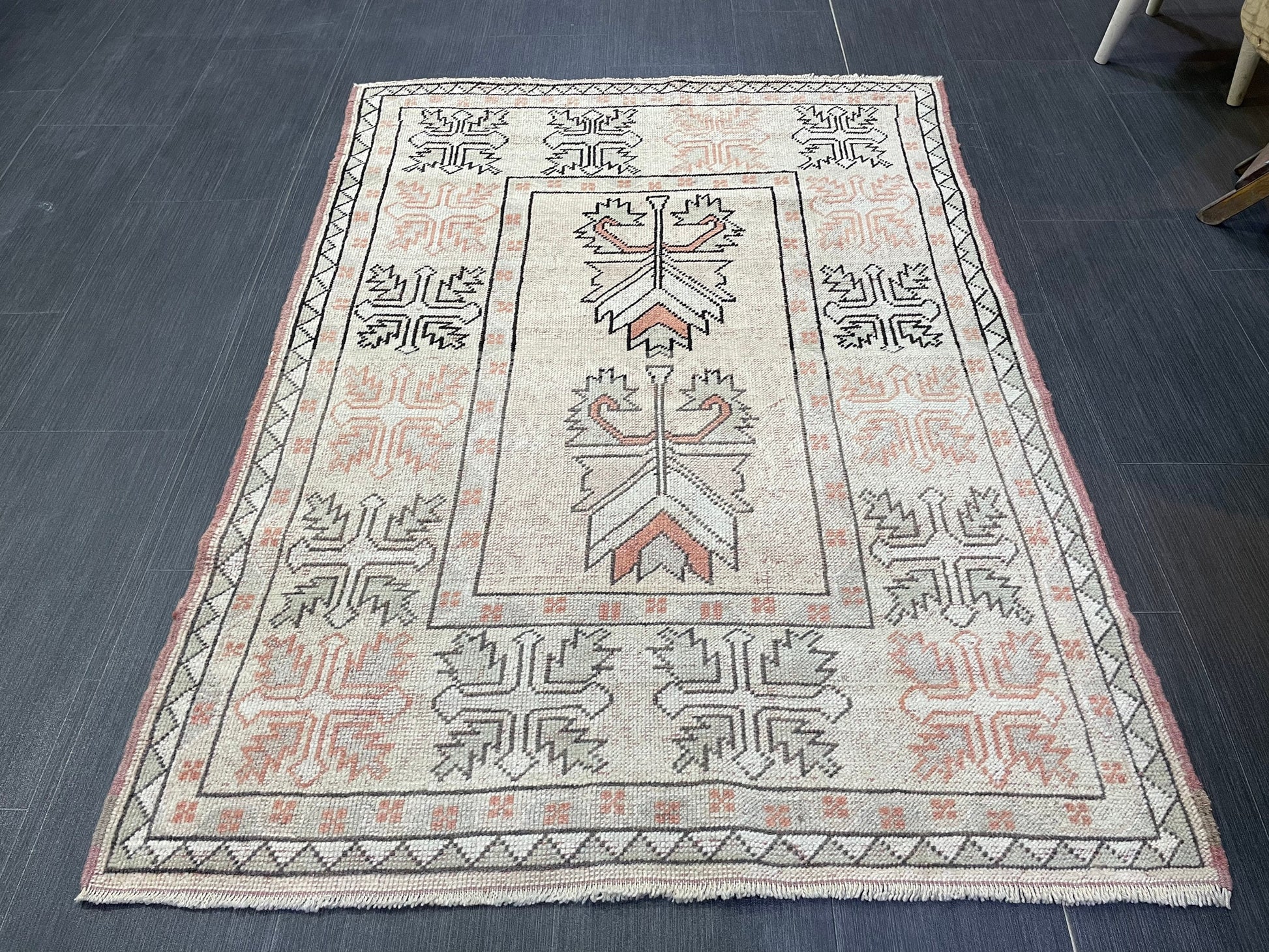 Vintage Rug, Oushak Rug, Wool Handmade 3.5 x 4.9 Rug, Persian Rug, Turkish Rug, Hand Knotted Wool Rug