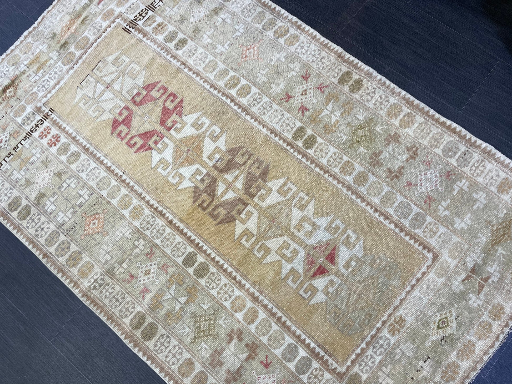 *A vintage handmade Turkish rug made of hand spun wool and double knotted on sturdy cotton foundation,