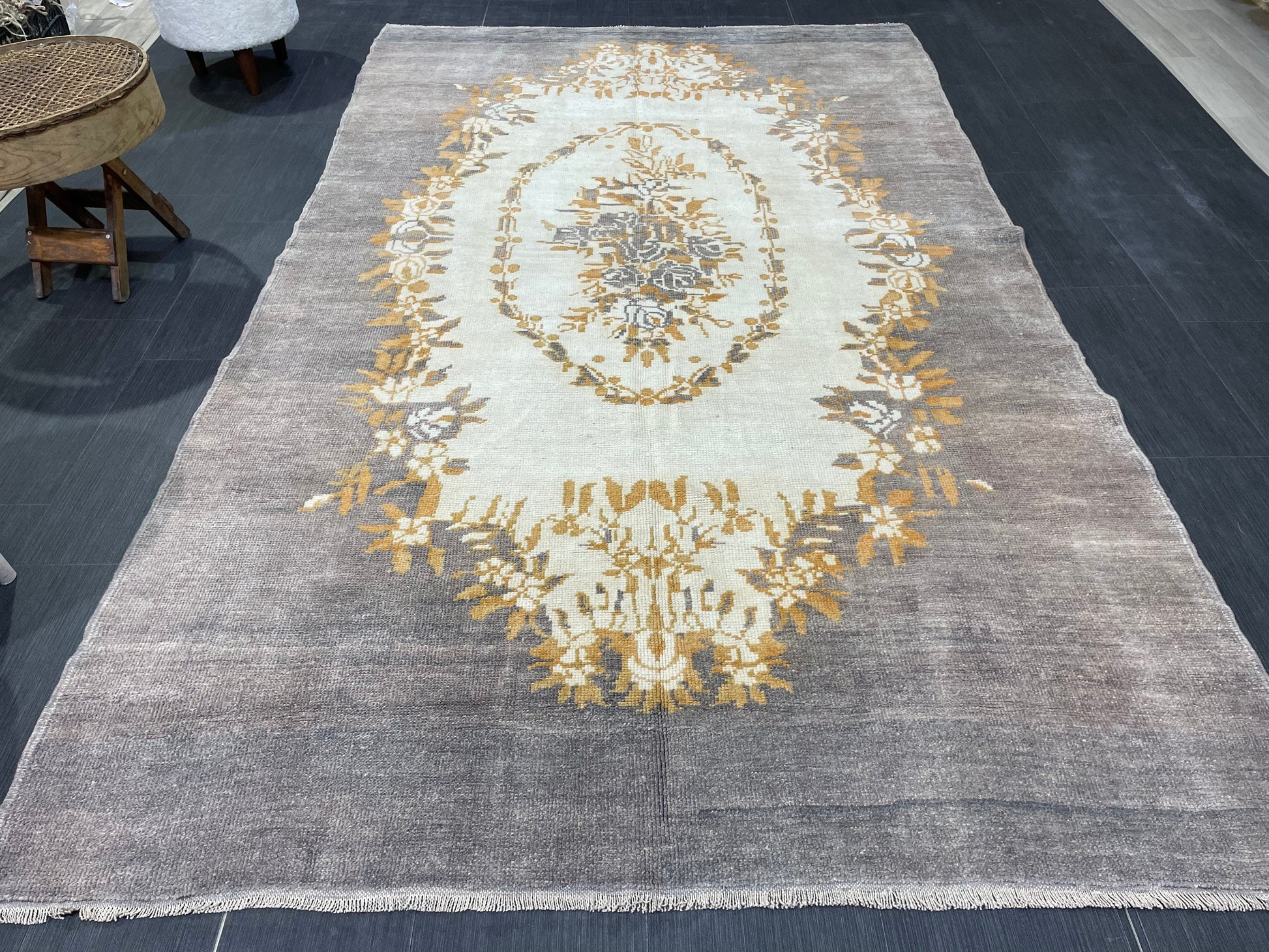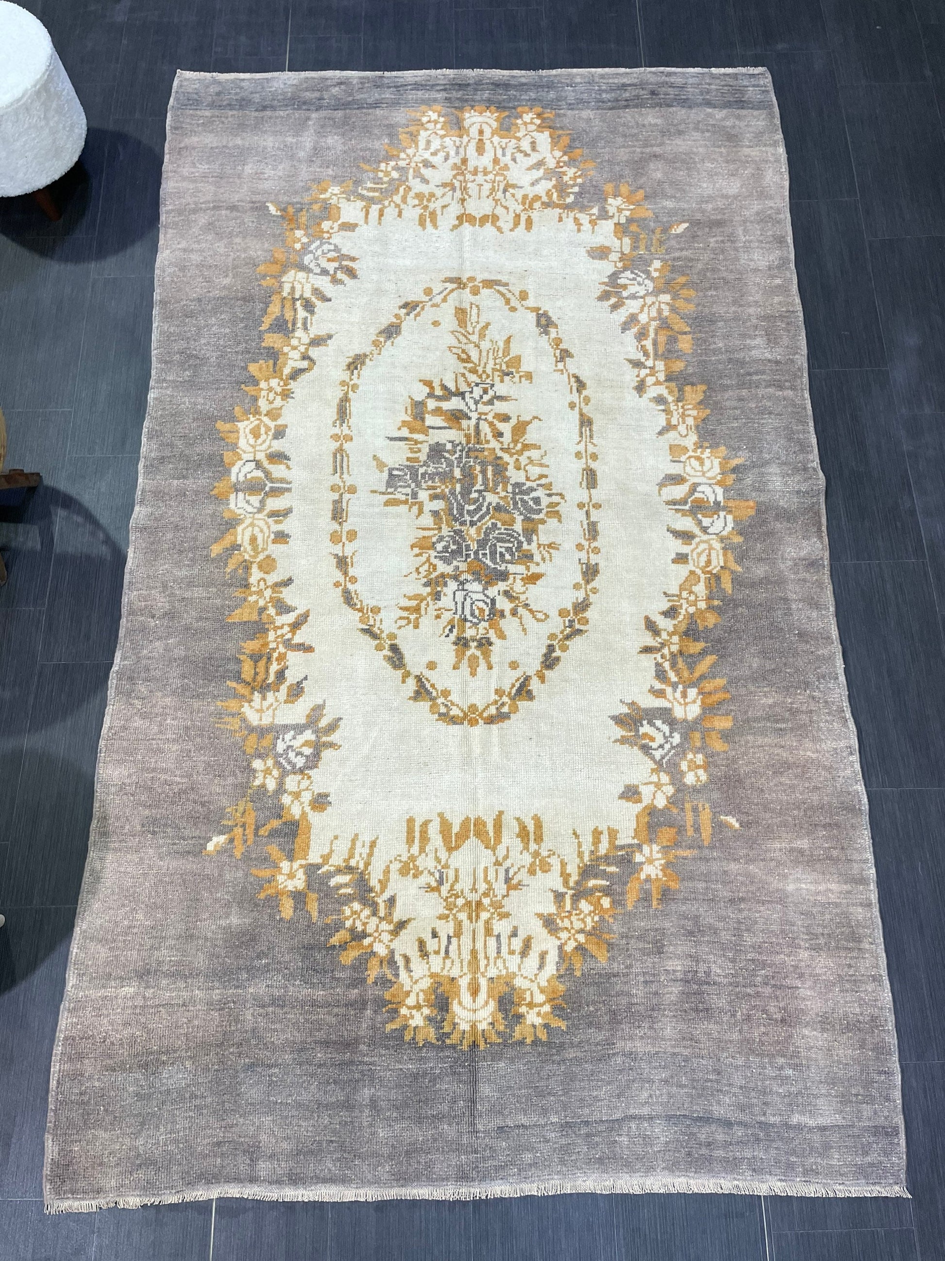 Vintage Rug, Persian 5.2 x 8.8 Rug, All Wool Hand Knotted Rug, HANDMADE Rug, Vintage Turkish Rug, Oushak Rug, Grey Wool Rug