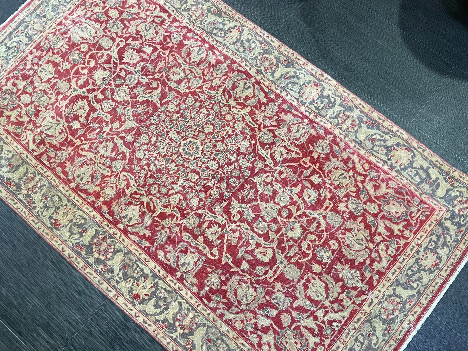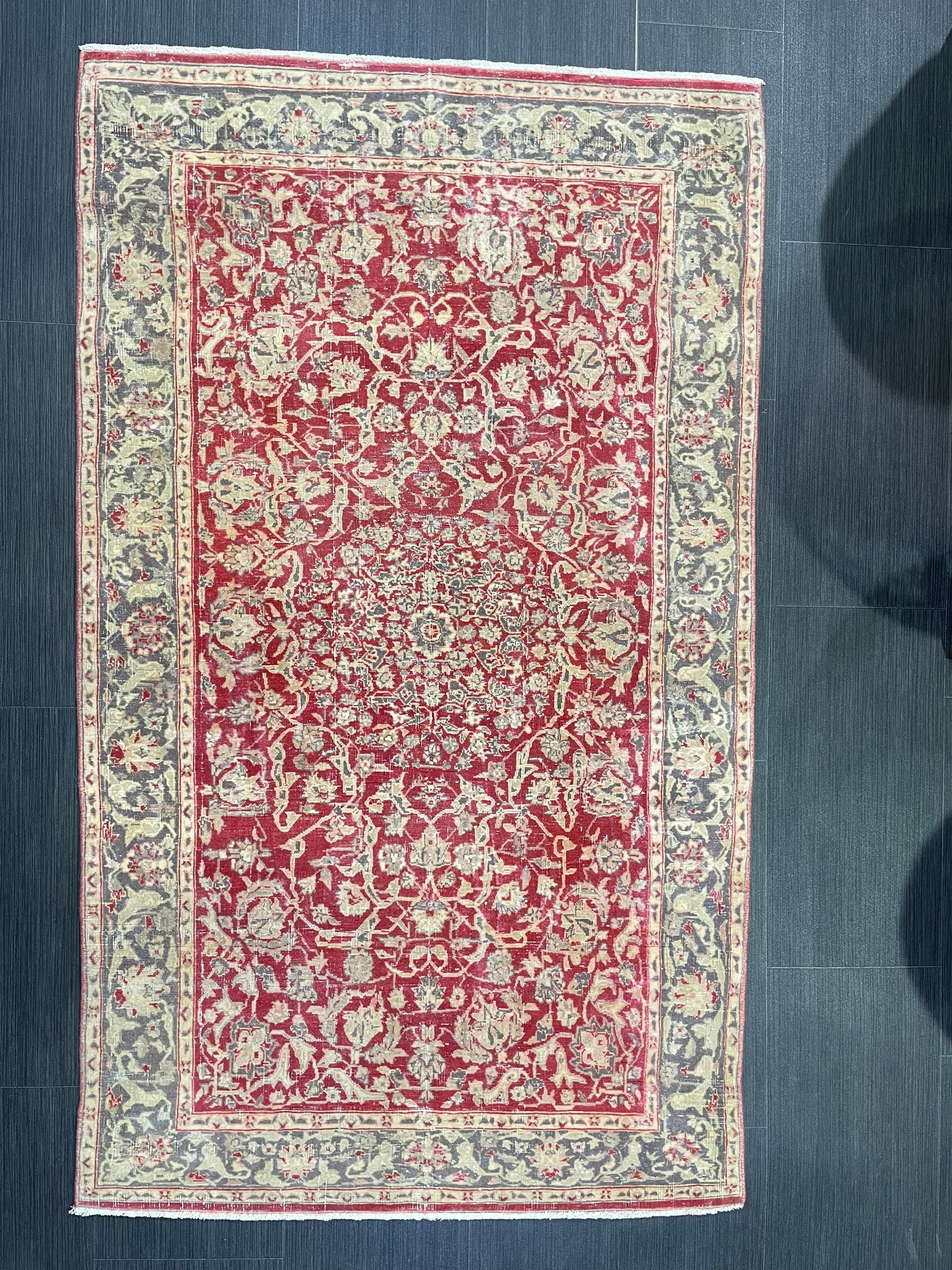 *A vintage handmade Turkish rug made of hand spun wool and double knotted on sturdy foundation,