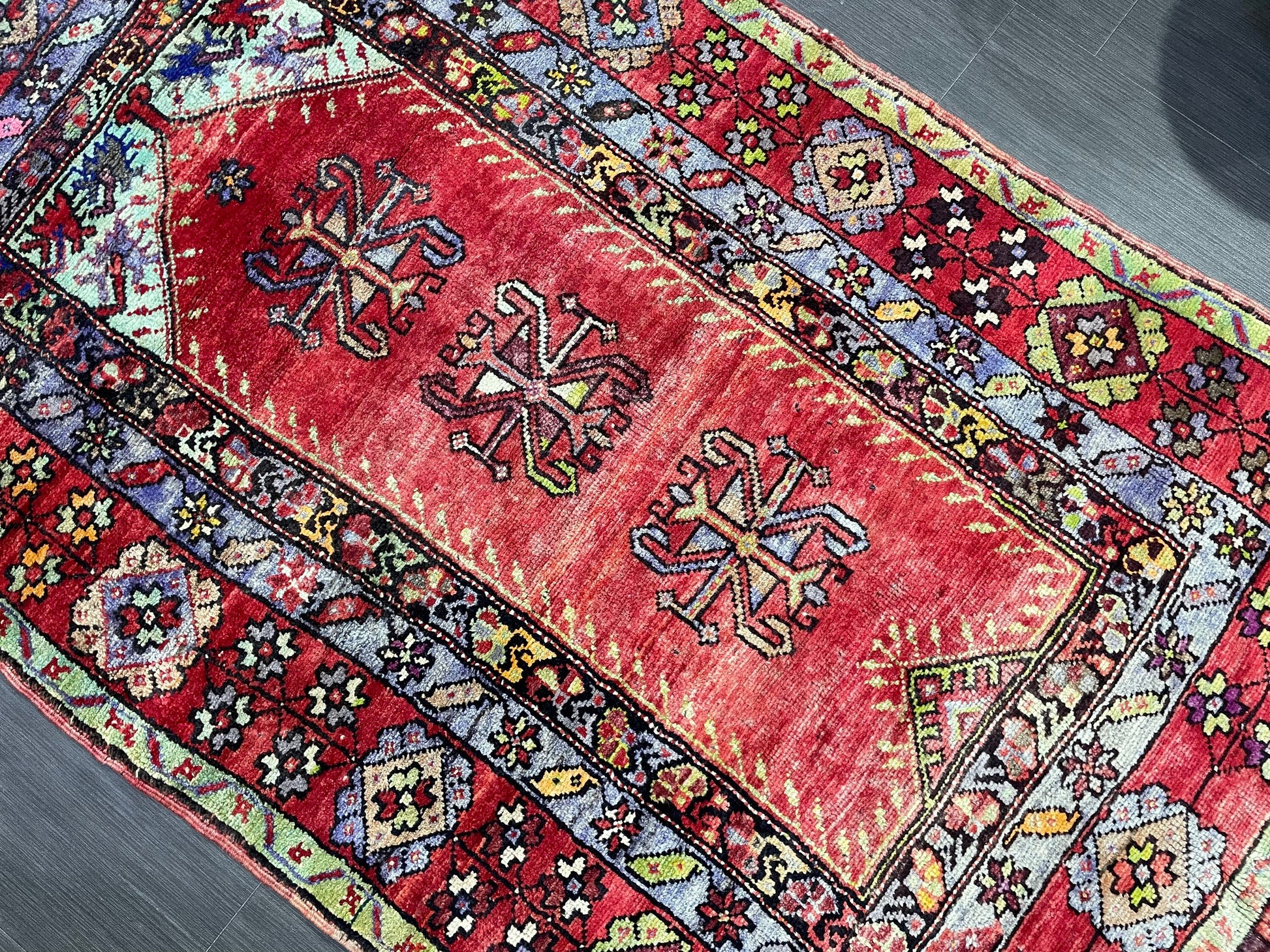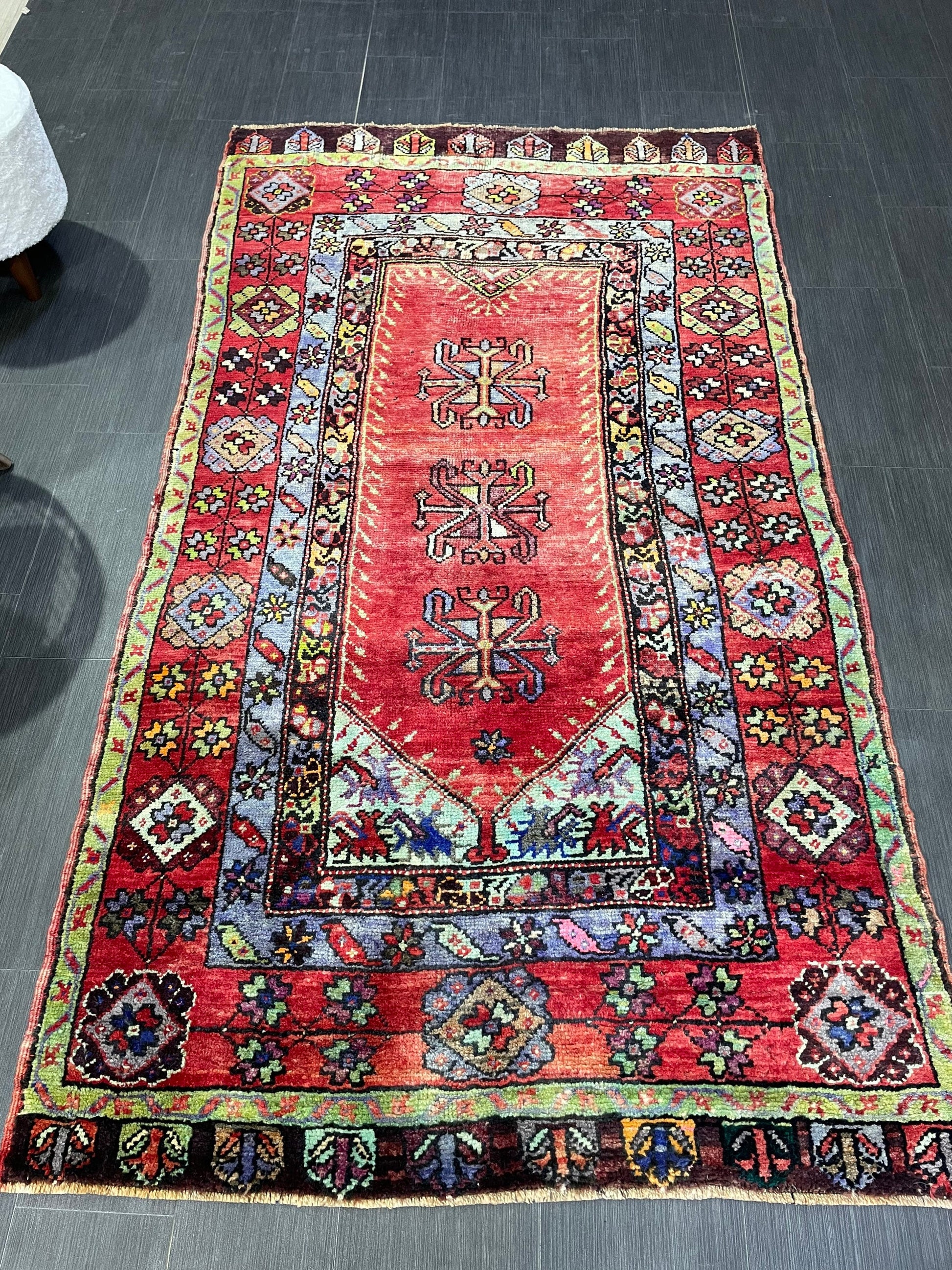 *A vintage handmade Turkish rug made of hand spun wool and double knotted on sturdy foundation,