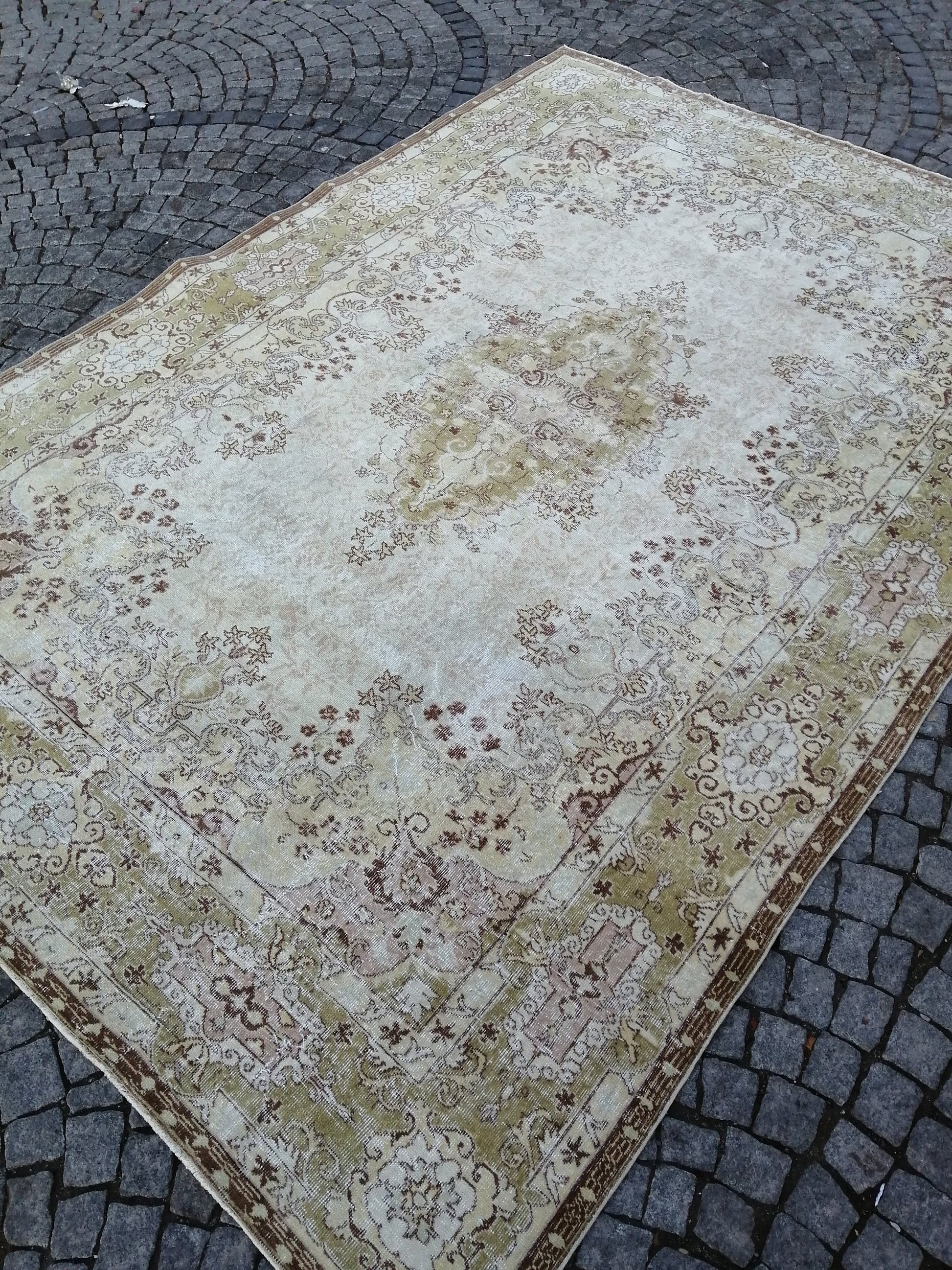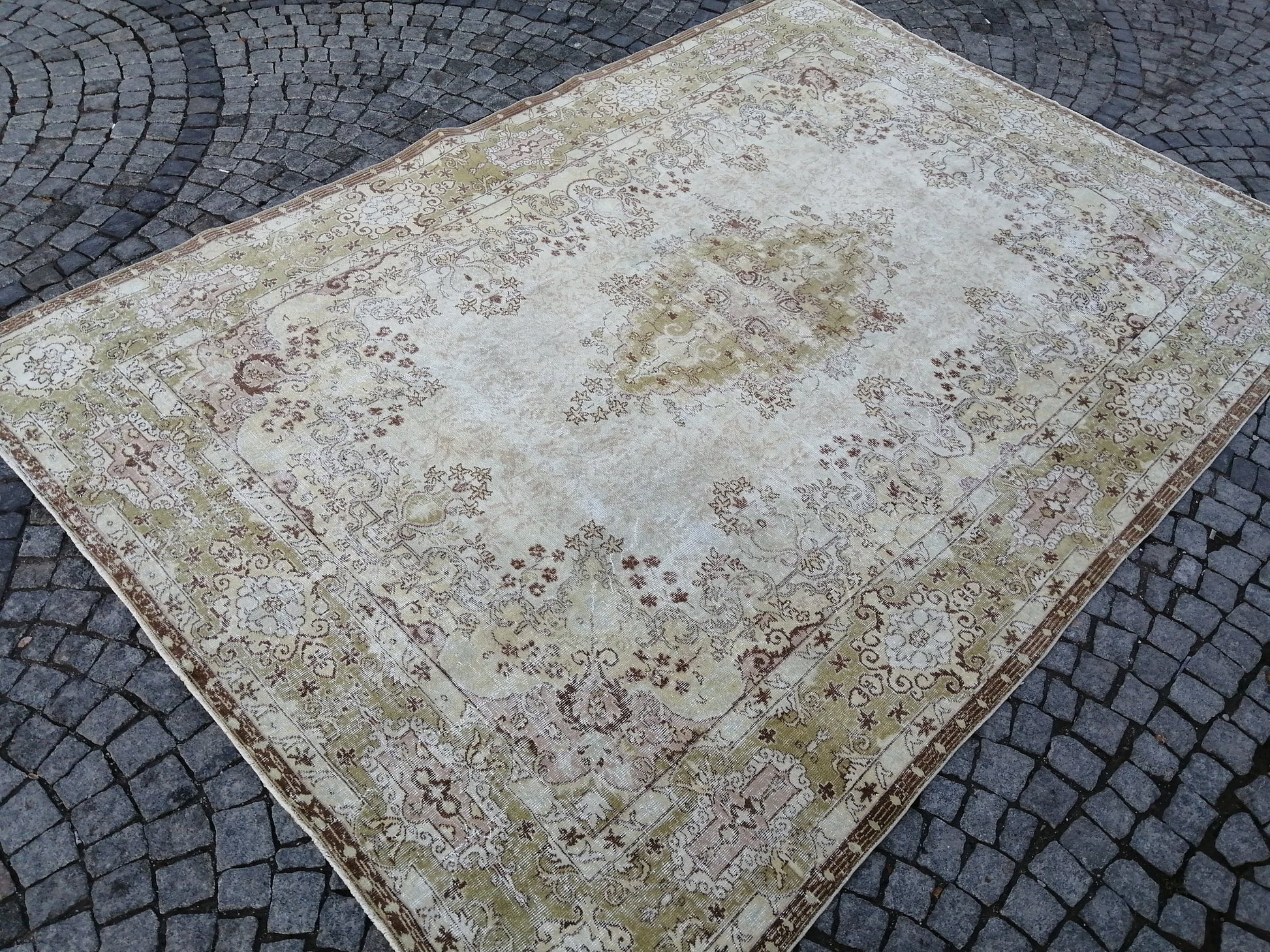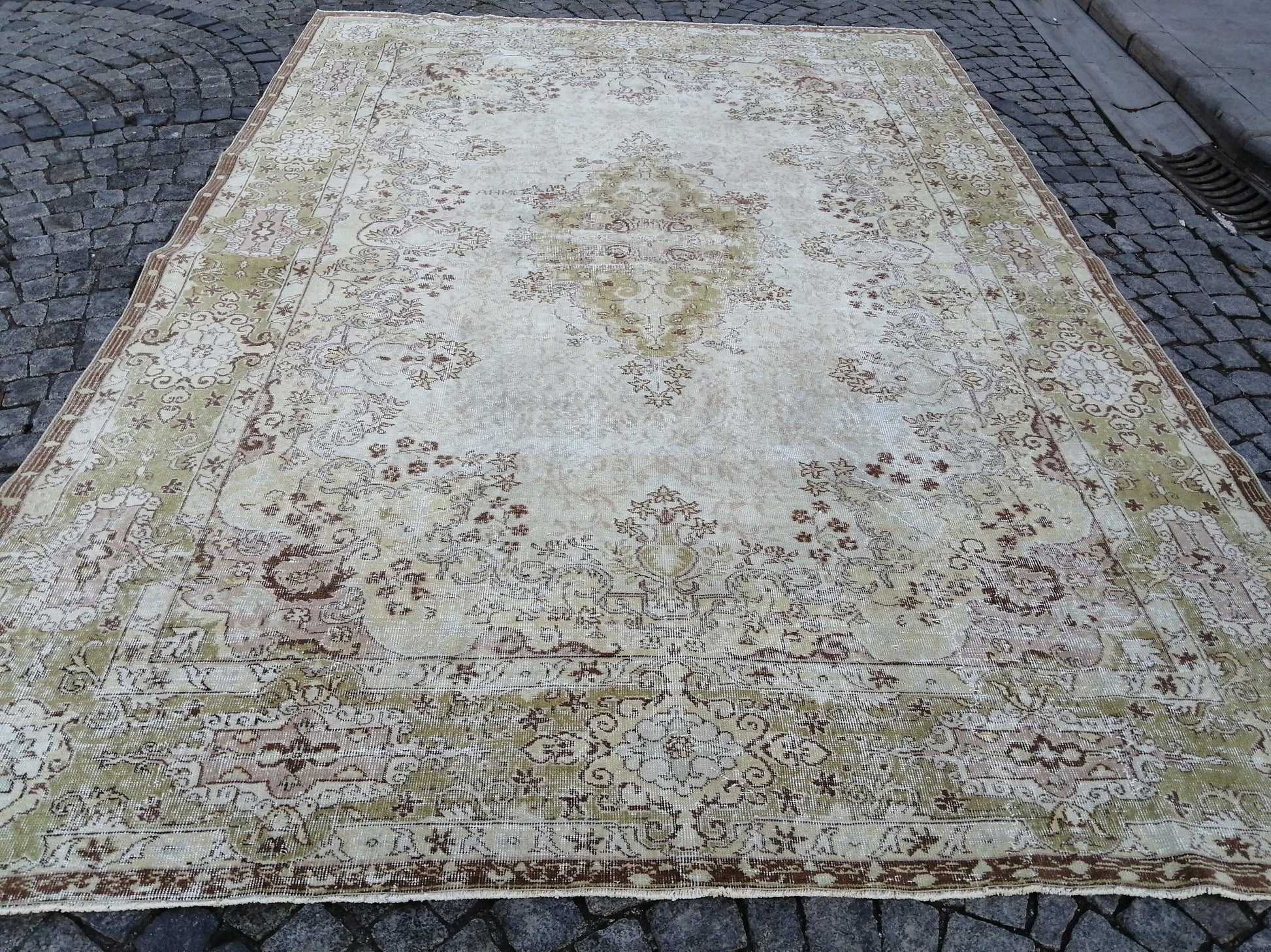 Vintage RUG TURKISH Muted 8.4 x 12.3 Oushak Rug Vintage Oriental Rug Vintage Large Rug Wool Antique Rug Hand Made Rugs Vintage Green Rug