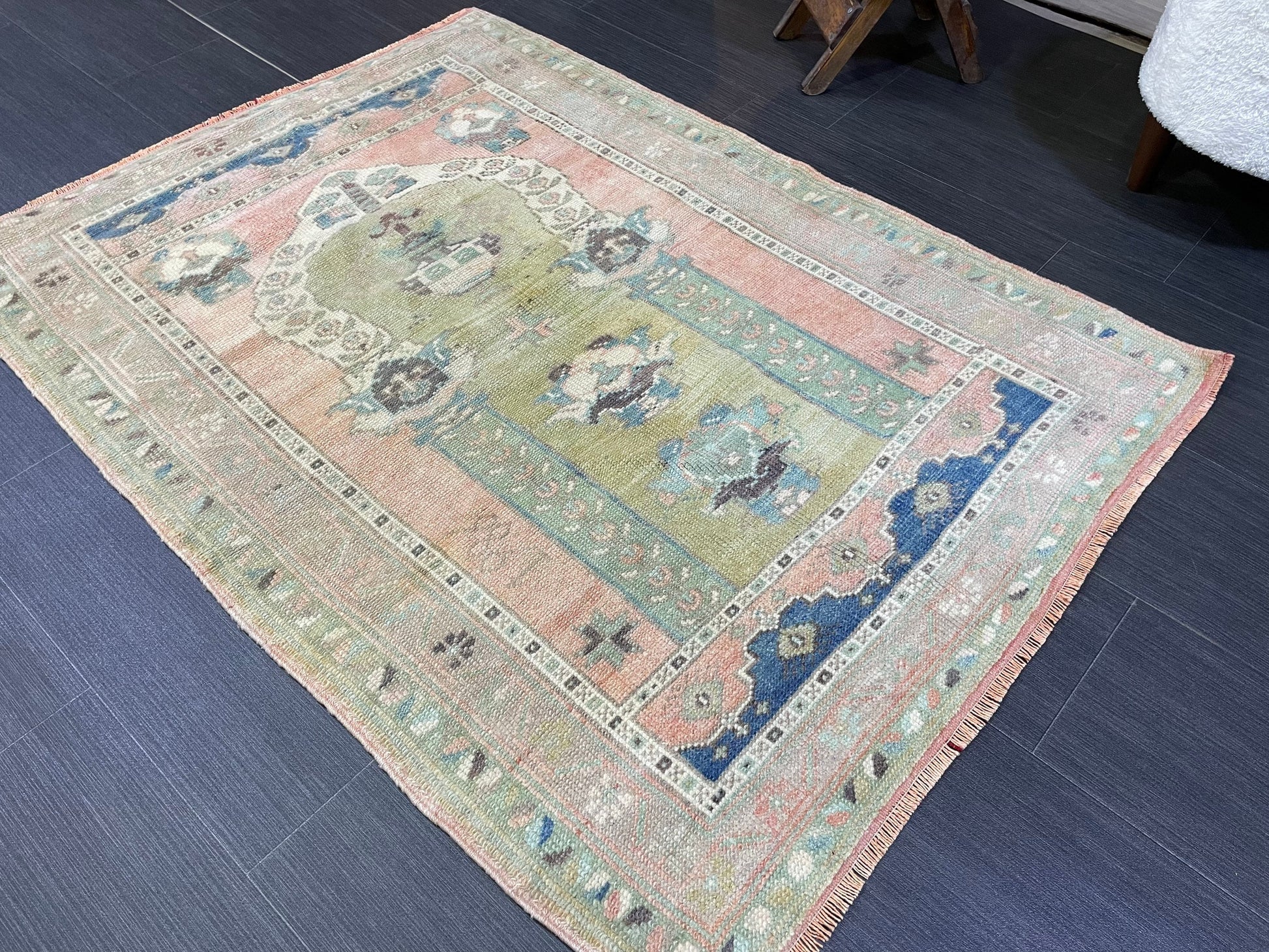 Vintage RUG, TURKISH Oushak Rug Hand Knotted 3 x 4.2 Rug, Oriental Rug, Vintage Persian Rug, Handmade Rug, Antique Rug, Woven Rug