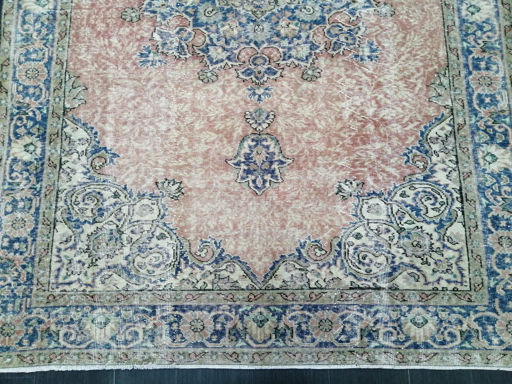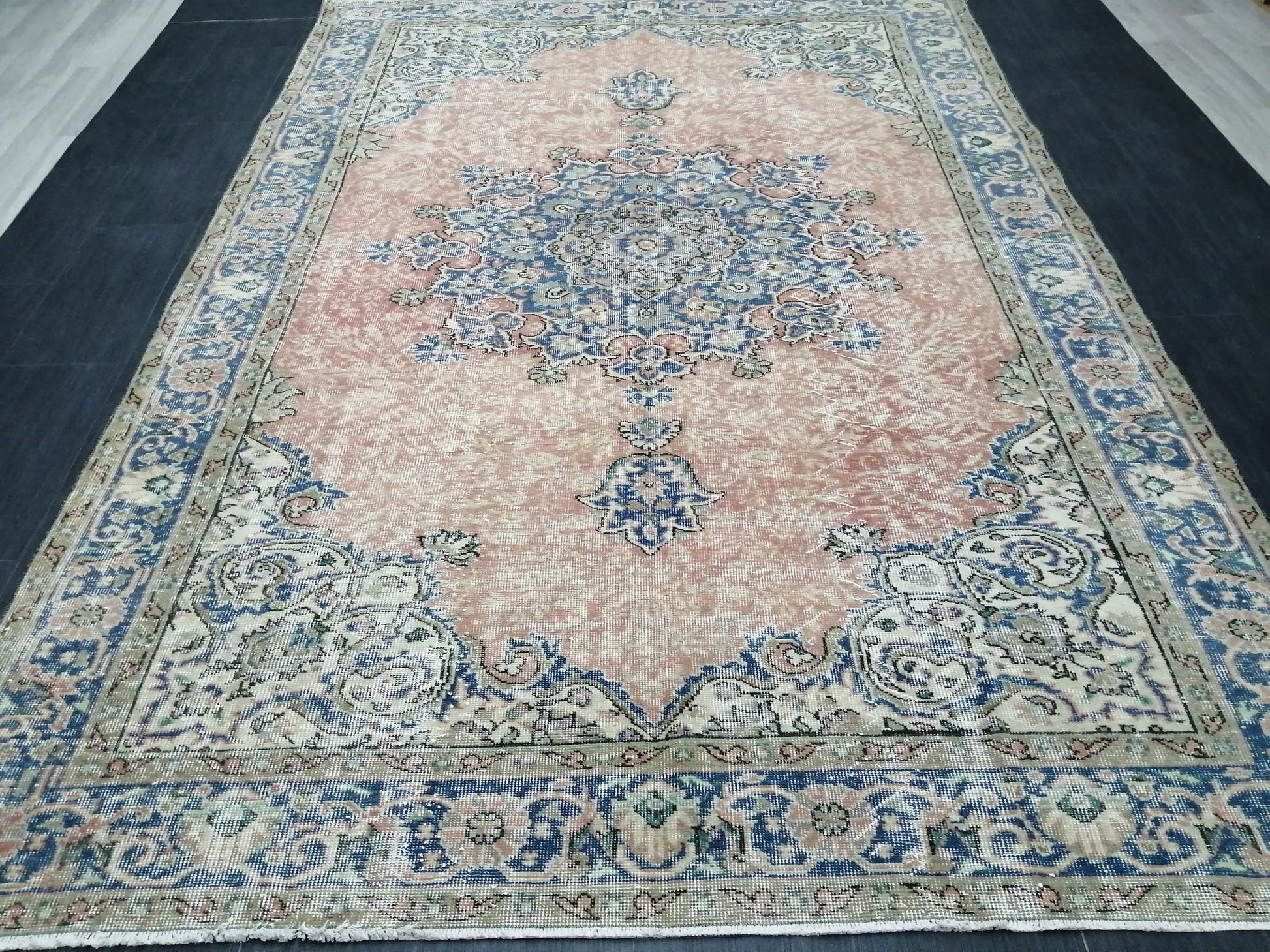 Vintage Rugs 6.3 x 9.5 TURKISH HAND MADE Rugs Vintage Turkish Rug Oriental Rug, Turkish Oushak Rug, Vintage Oushak Rug, Wool Rug