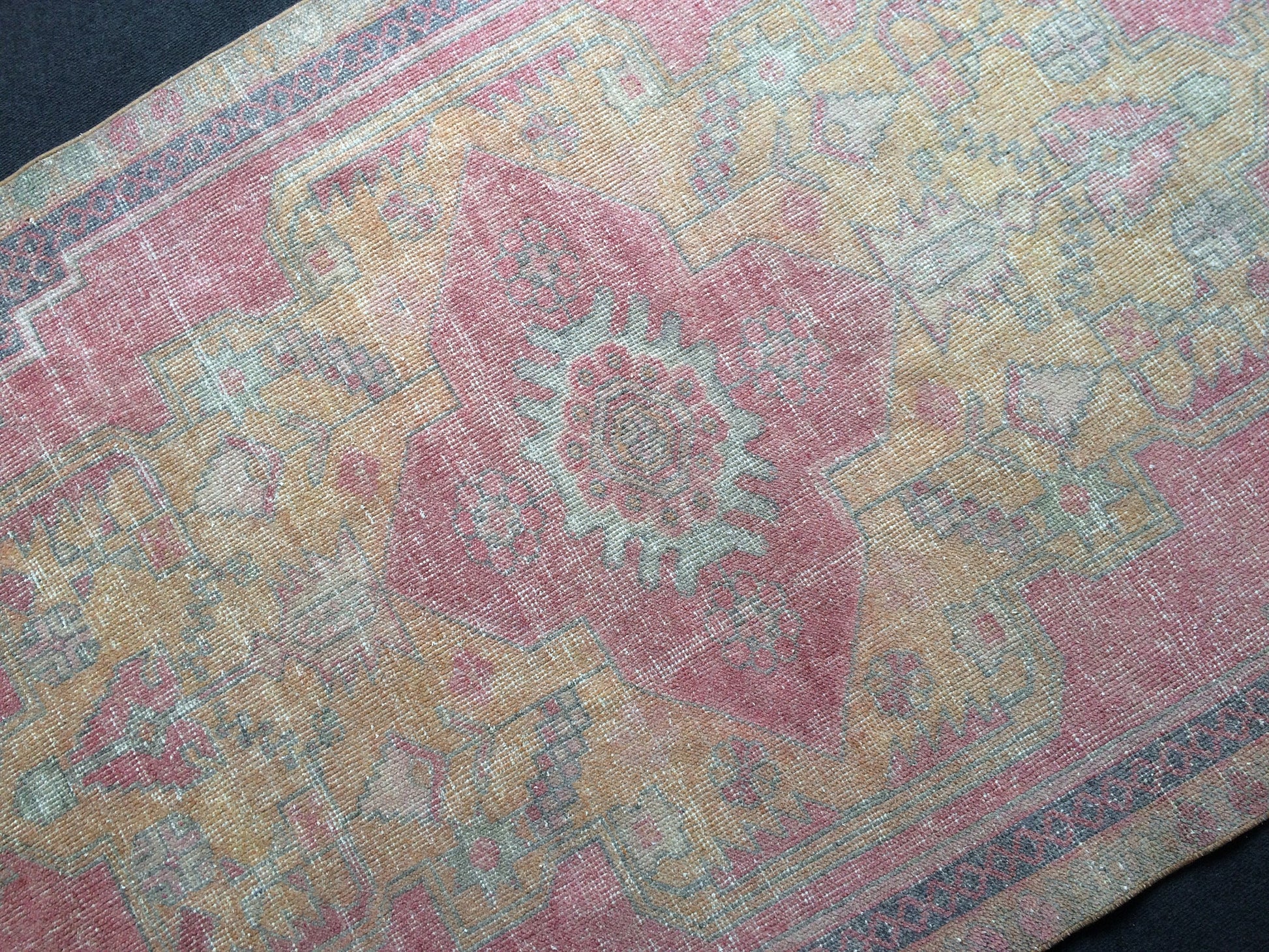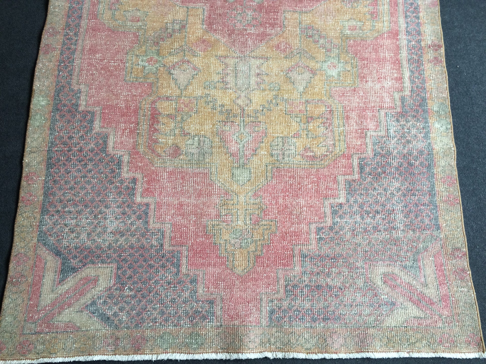 *A vintage handmade Turkish rug made of hand spun wool and double knotted on sturdy cotton foundation,