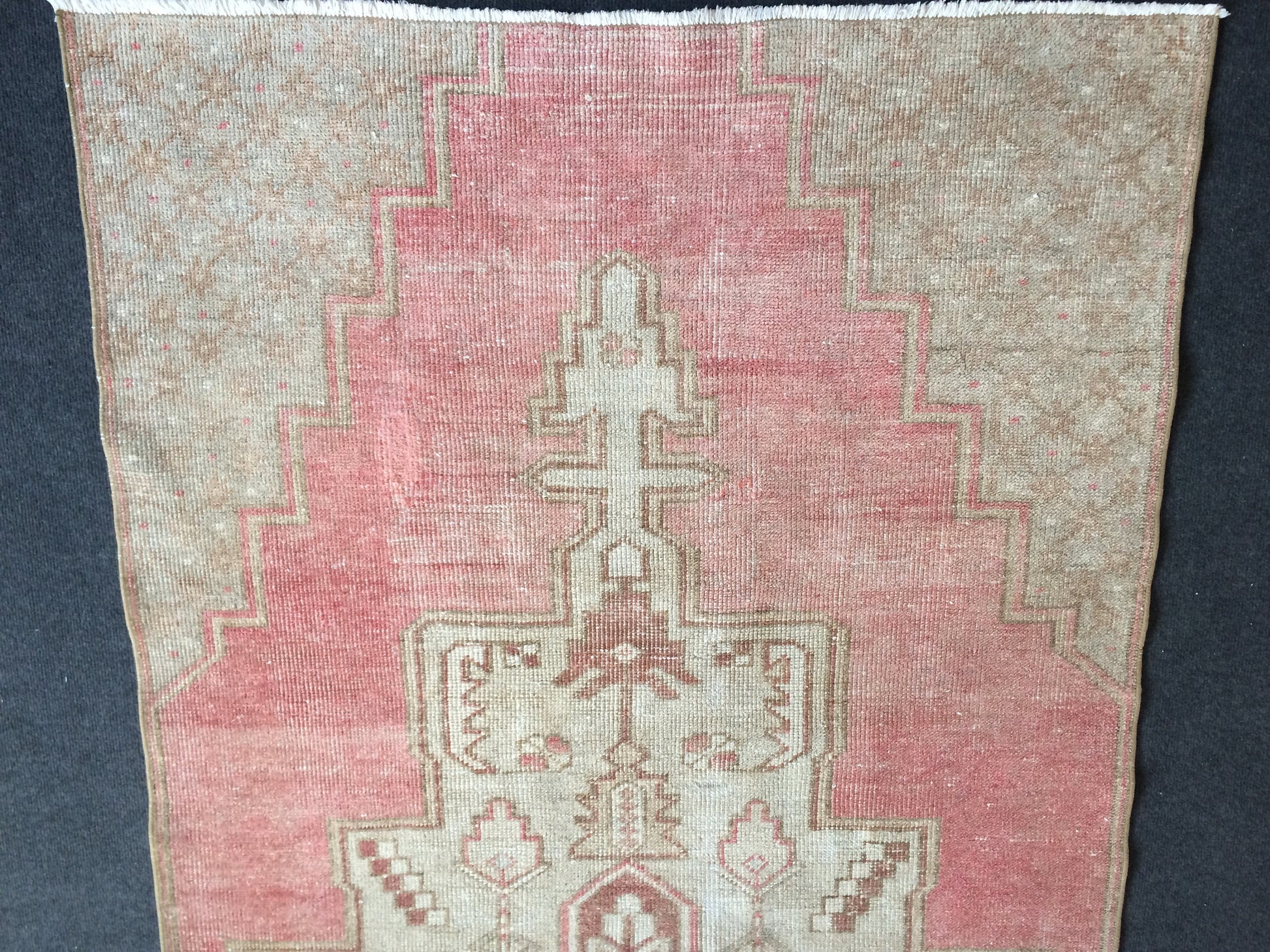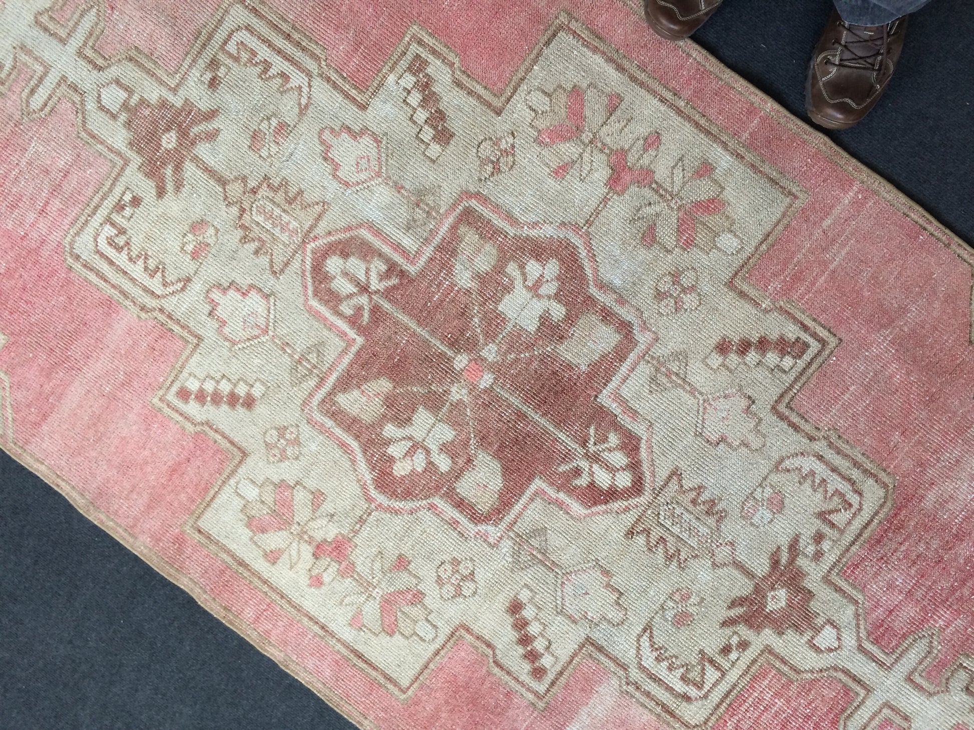*A vintage handmade Turkish rug made of hand spun wool and double knotted on sturdy cotton foundation,