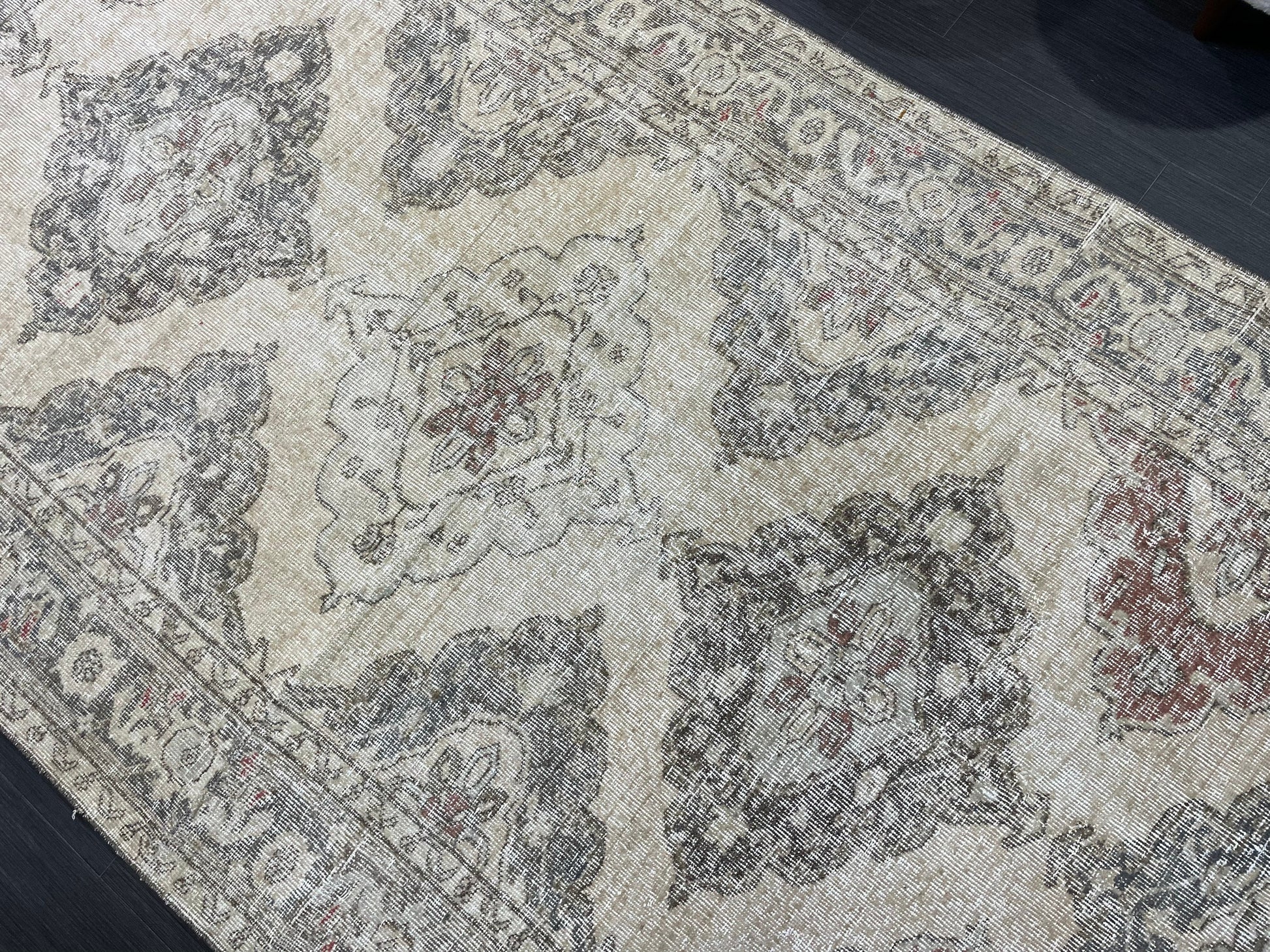 Vintage Runner 4.9 x 12.7 Rug, Turkish Runner Rug, Faded Distressed Runner Rug,Hallway Runner Rug Neutral Kitchen Runner Rug
