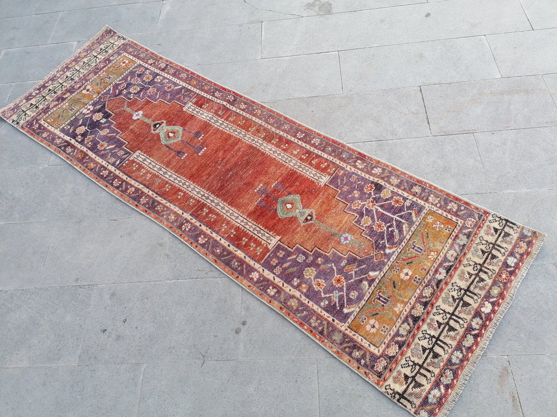 Vintage runner,kitchen runner,purple wool rug 8x2'7