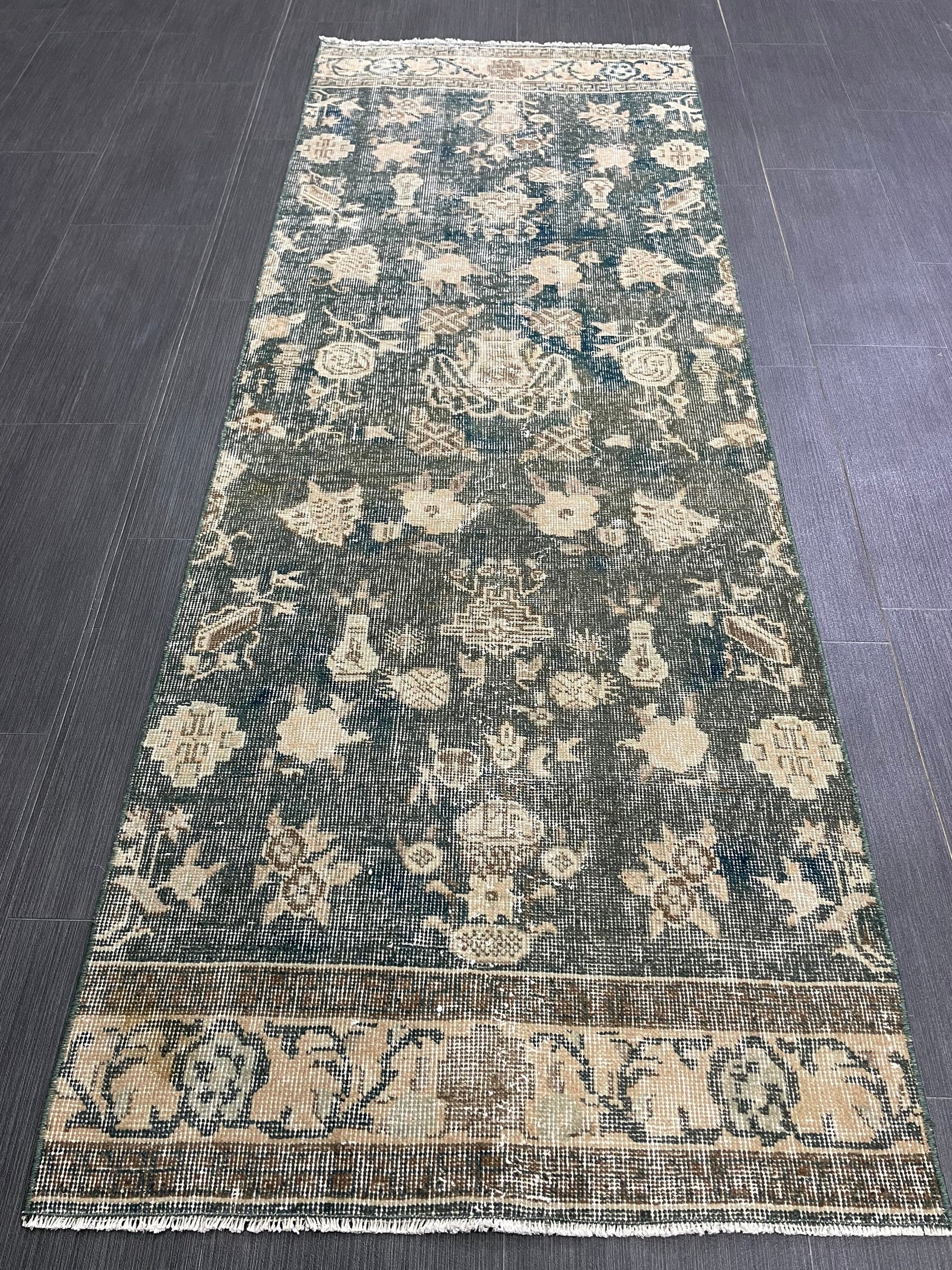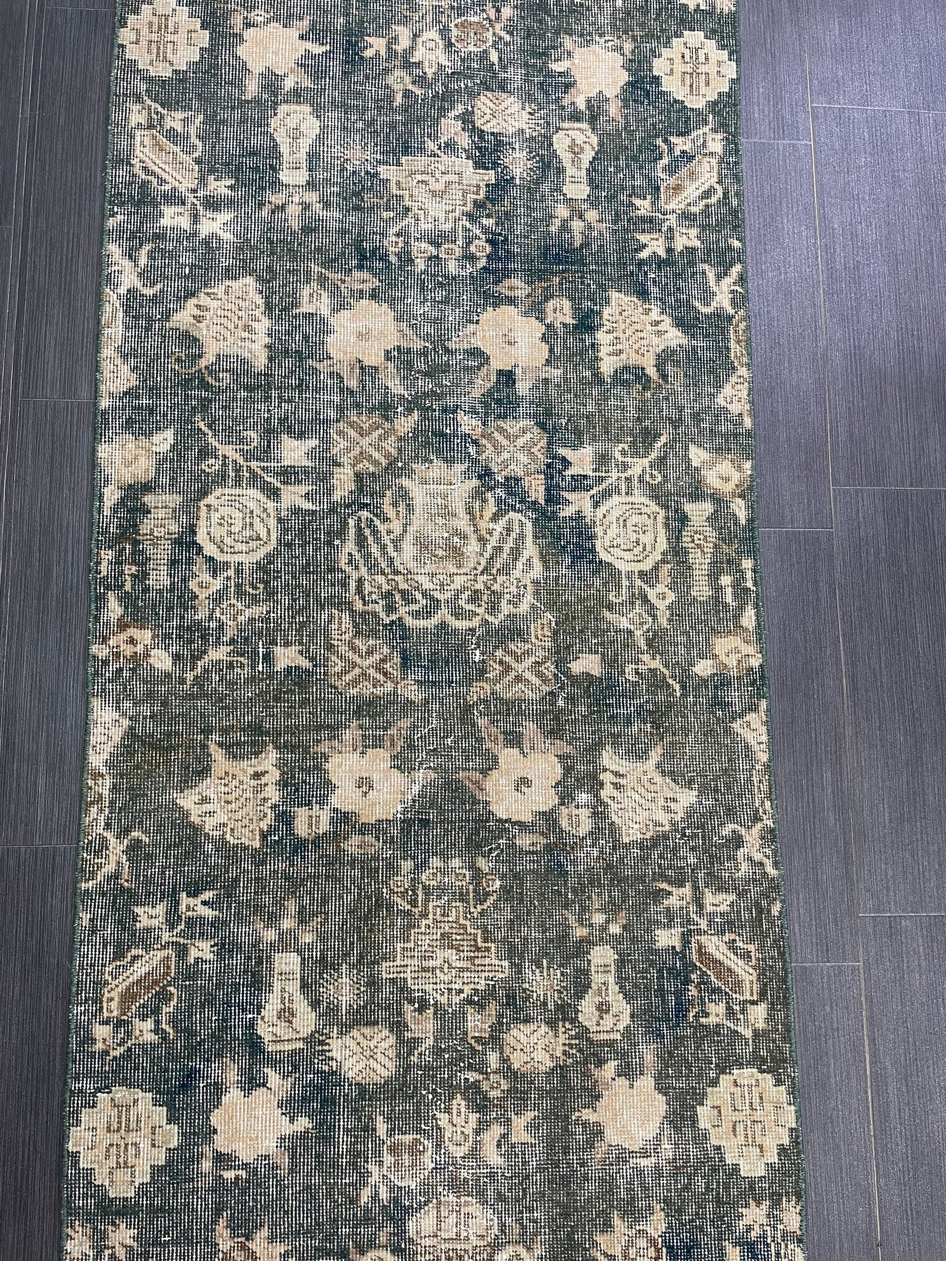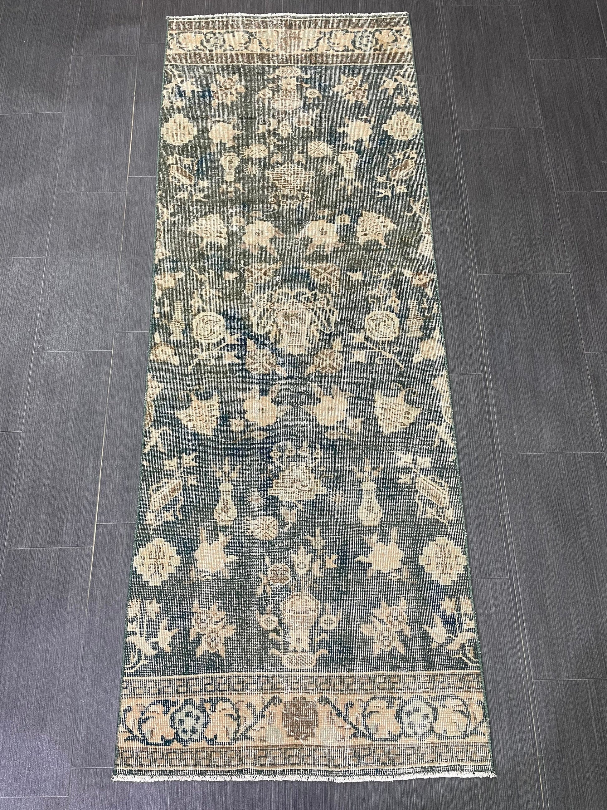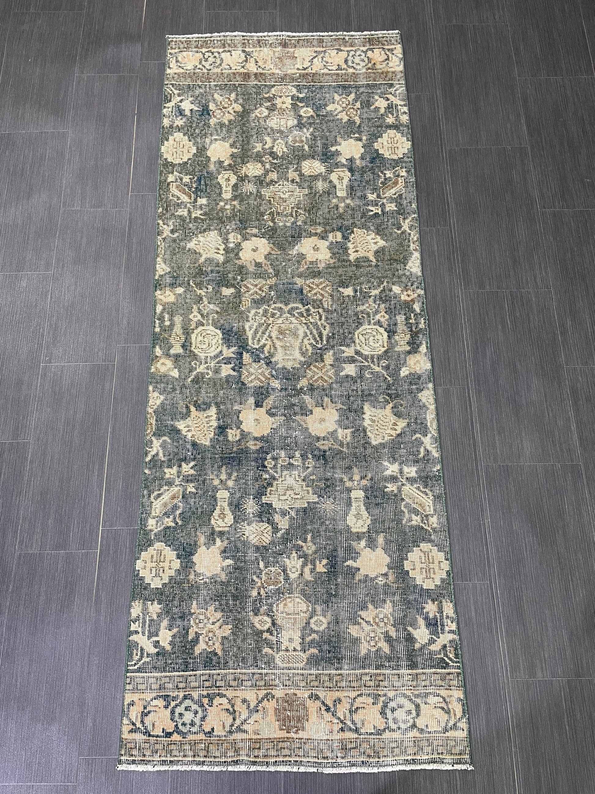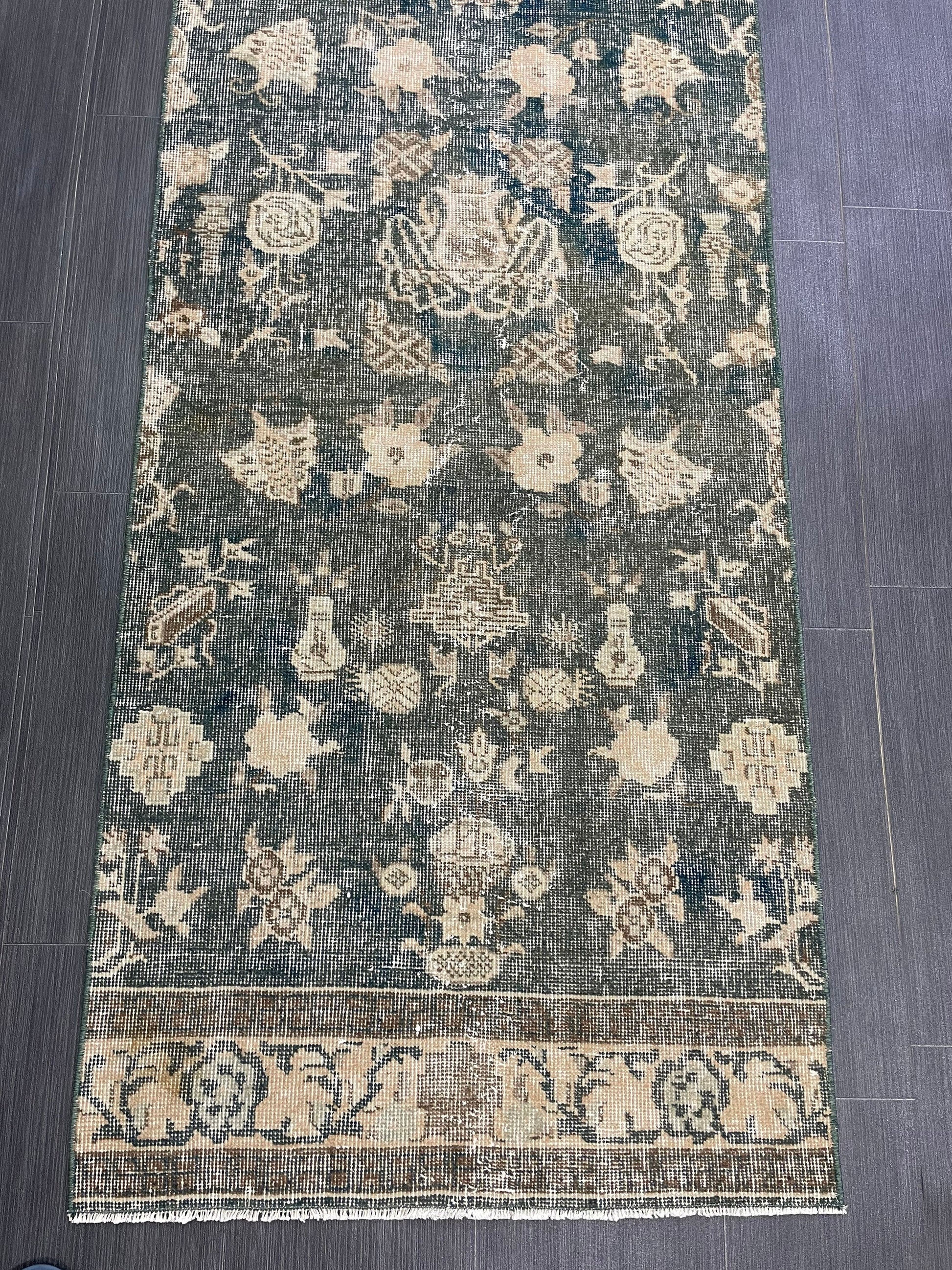 Vintage Runner Rug 2.5 x 7 Turkish Runner Rug Varigated Brown Vintage Runner Rug Hallway Runner Rug Kitchen Runner Rug Wool Runner