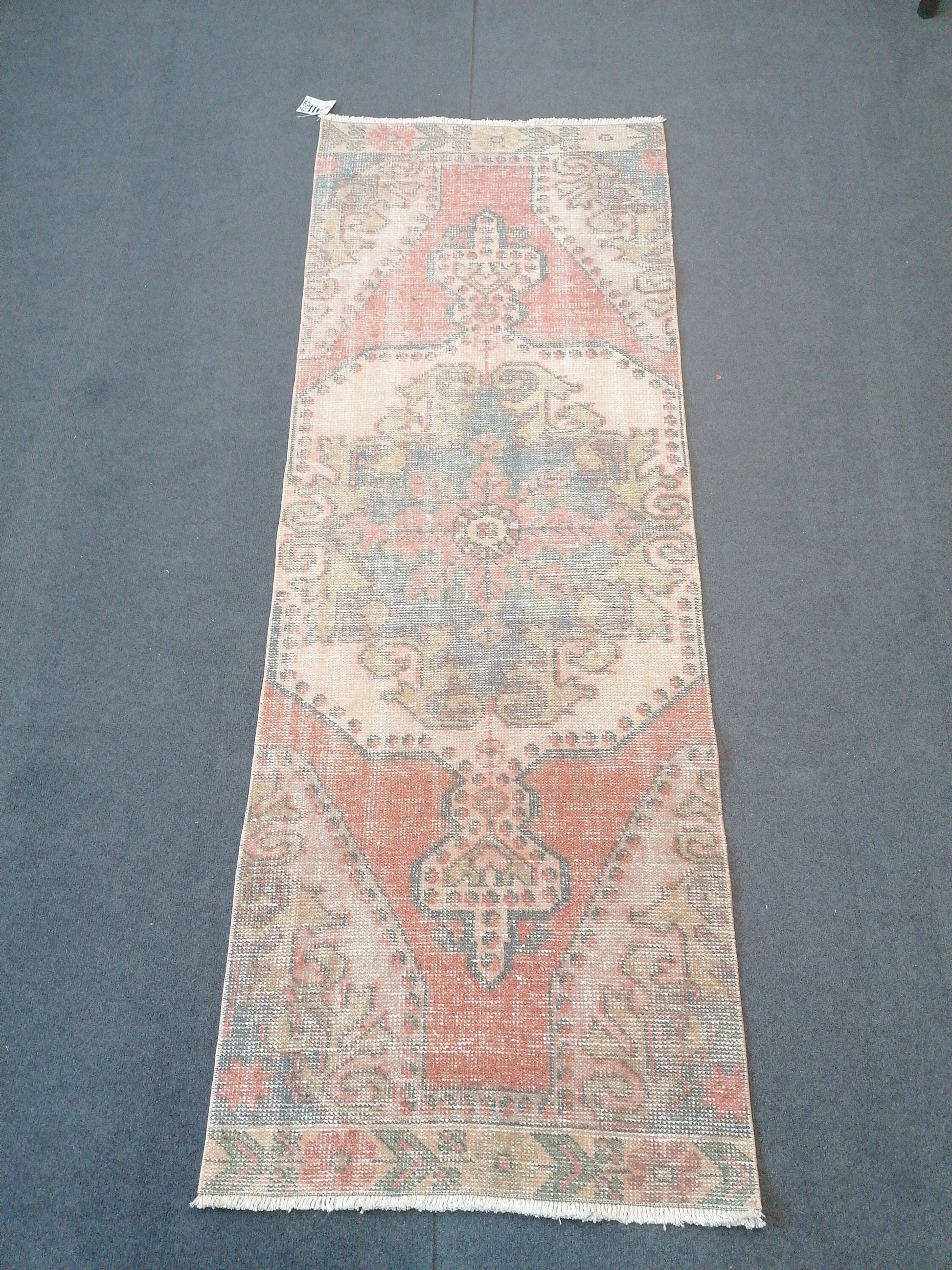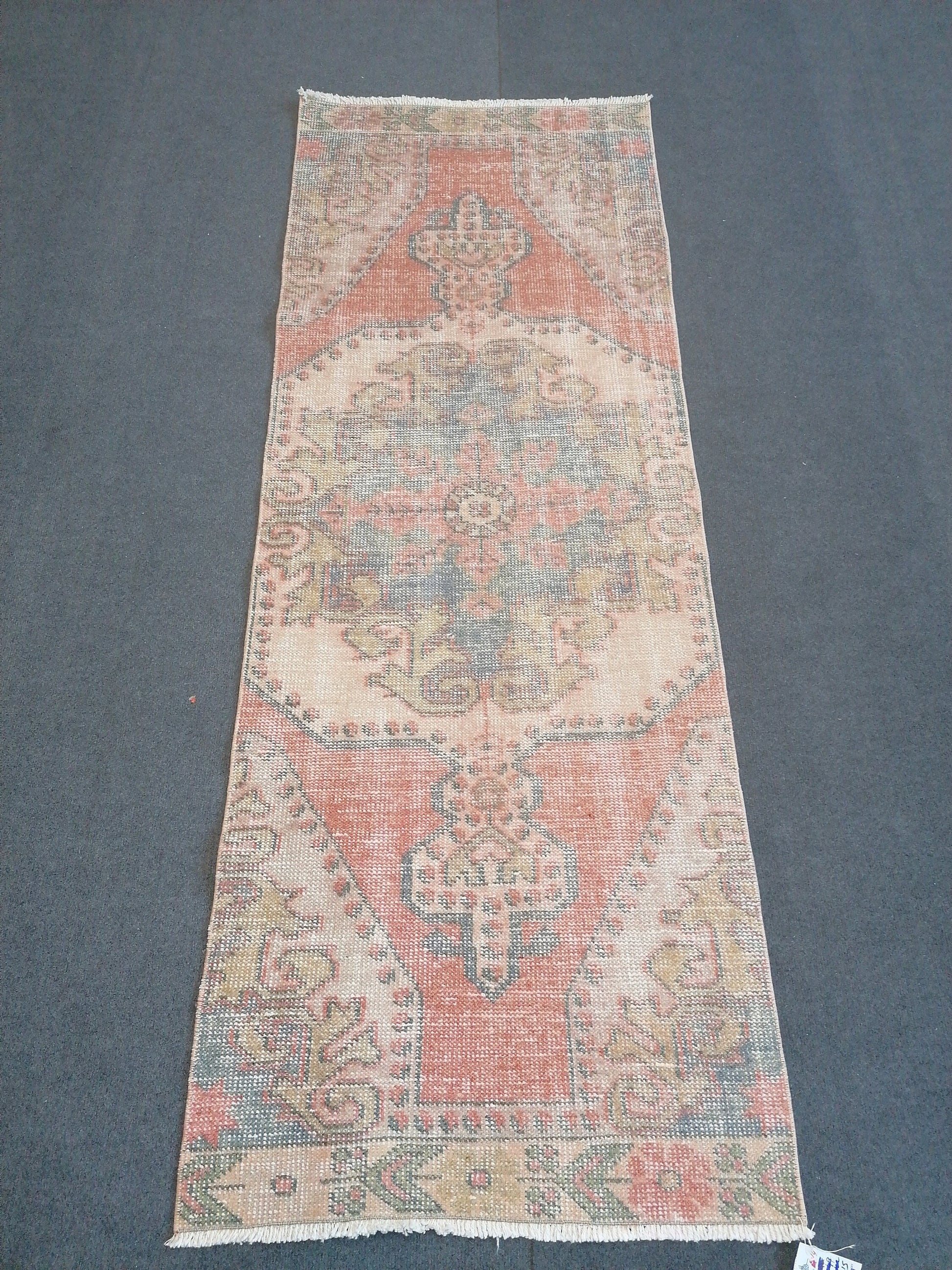 Vintage runner rug 2.5 x 8.8 turkish oushak rug