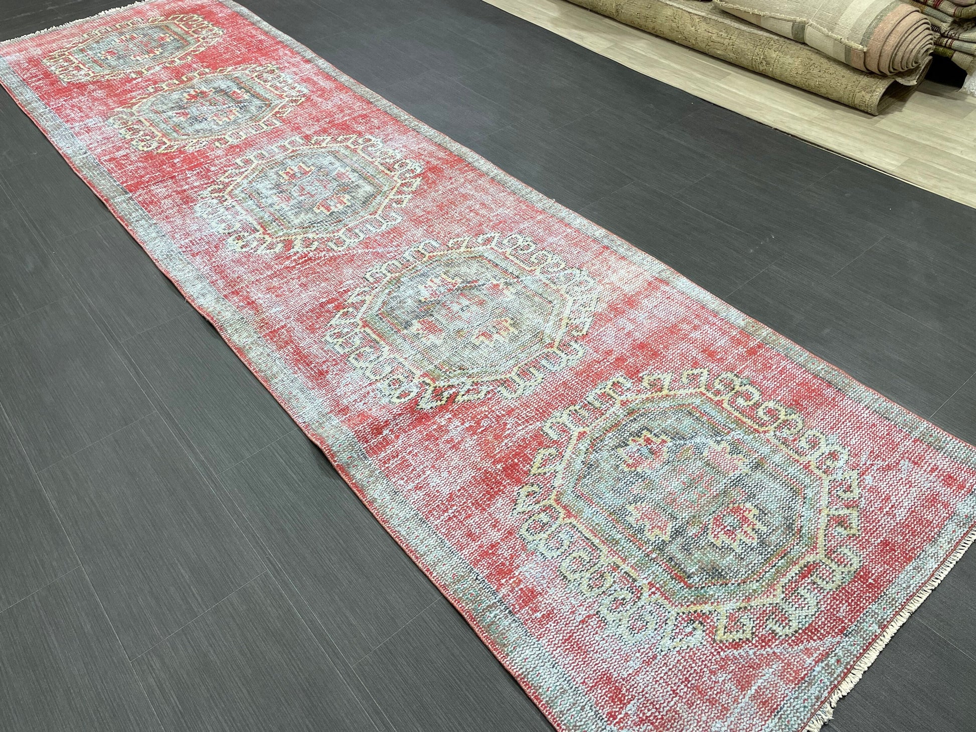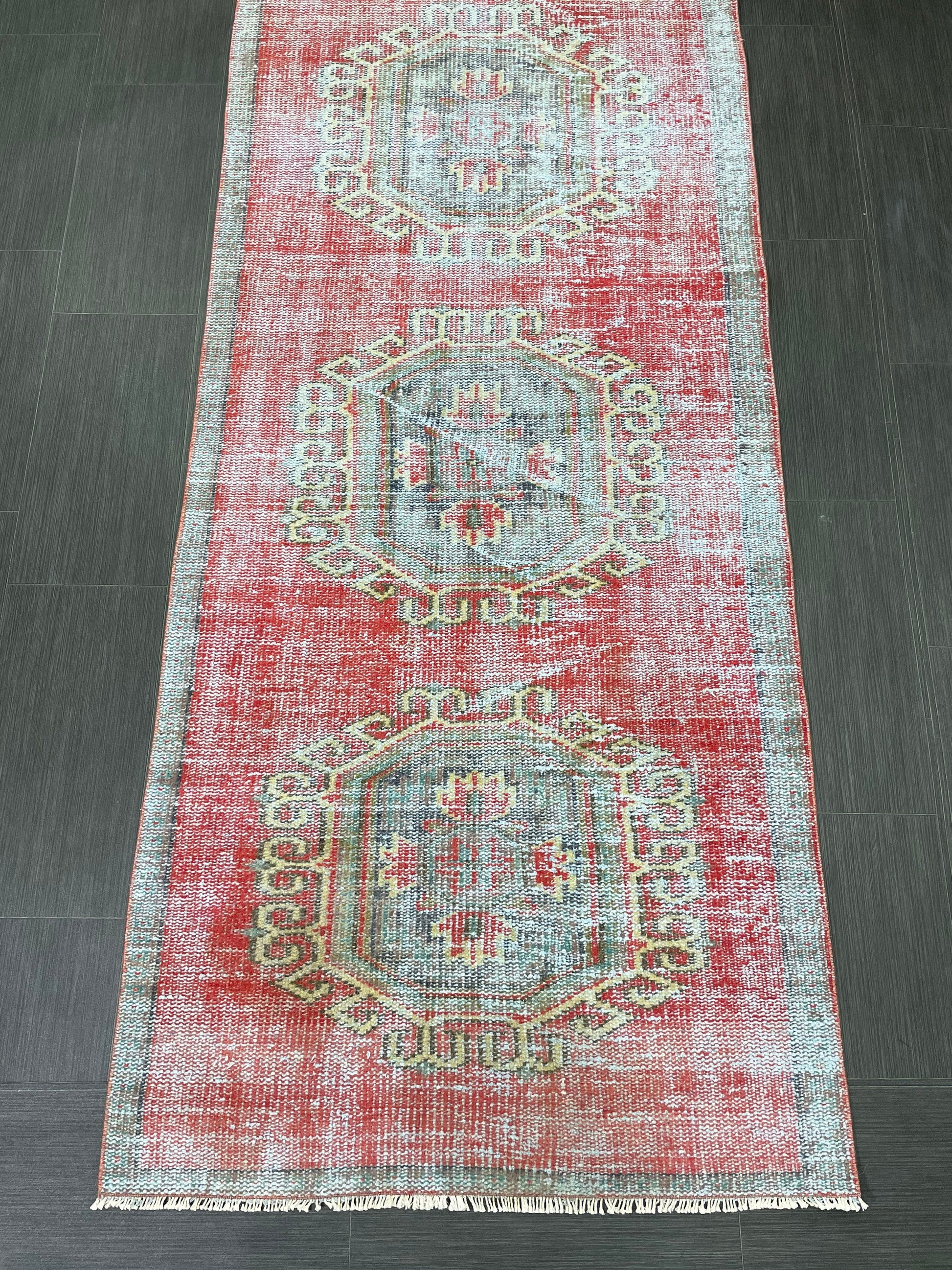 Vintage Runner Rug 3 x 11.6 Distressed Handmade Runner Rug Turkish Runner Rug Vintage Runner Rug Hallway Runner Rug Wool Kitchen Runner