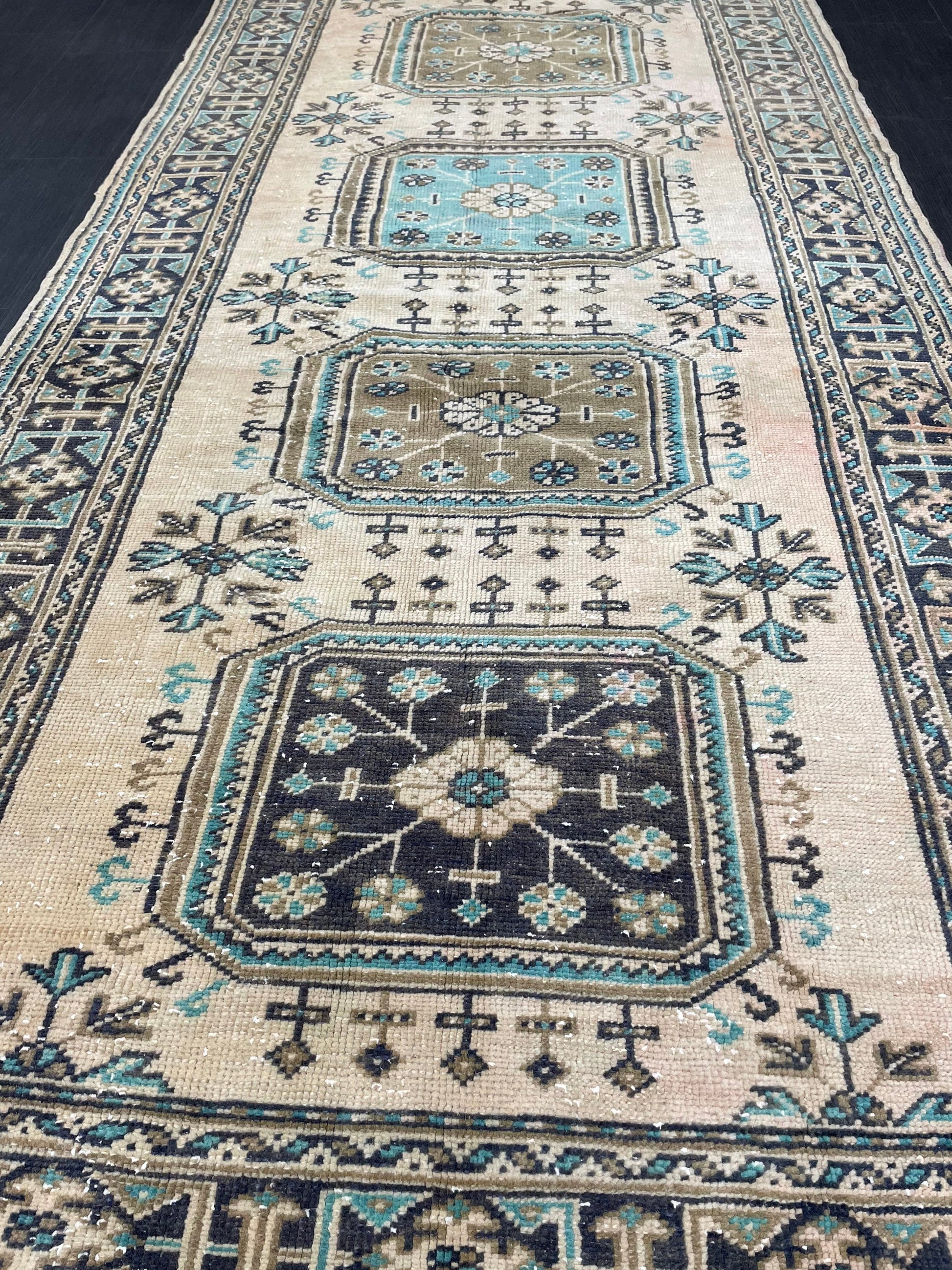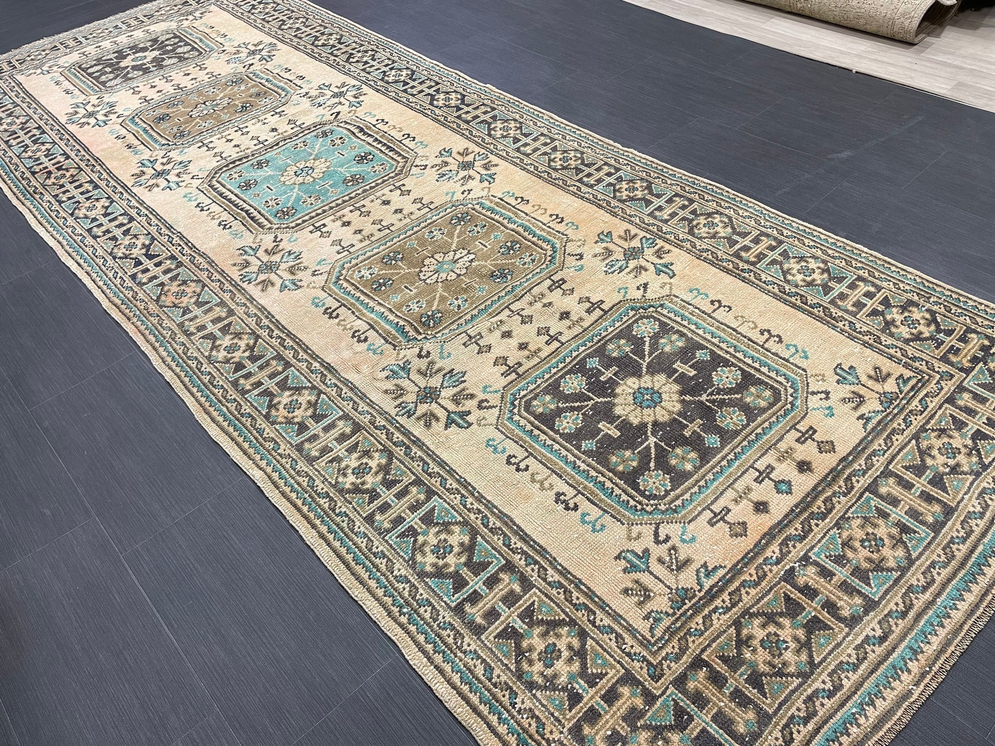 Vintage Runner Rug 4.5 x 11.8 Muted TURKISH Muted Runner Rug Vintage Oushak Runner Rug Long Runner Rug Wool Oriental Runner Handmade Runner
