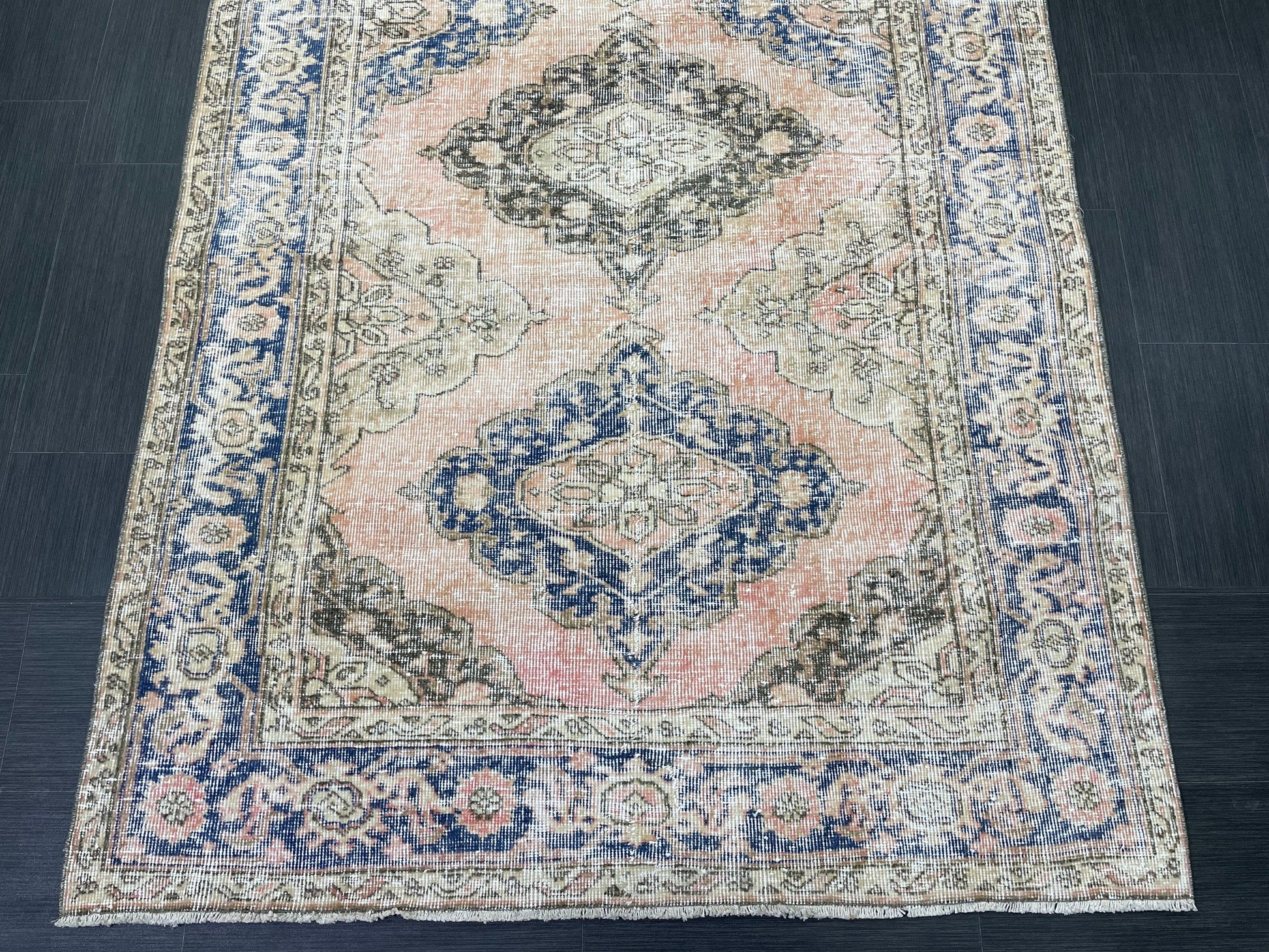 *A vintage handmade Turkish rug made of hand spun wool and double knotted on sturdy foundation,