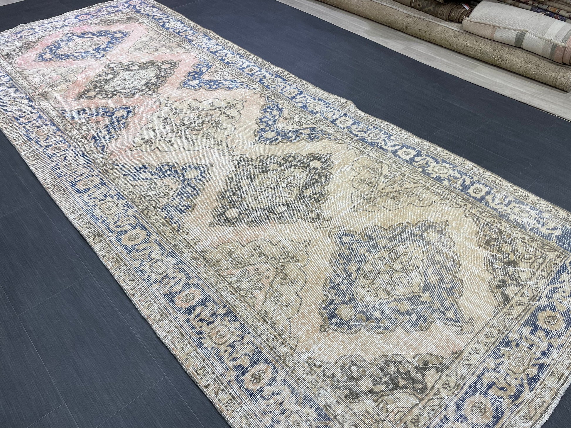 Vintage Runner Rug 4.8 x 11.8 Muted Turkish Runner Rug Hand Made Runner Rug Vintage Runner Rug Hallway Runner Rug Distressed Runner