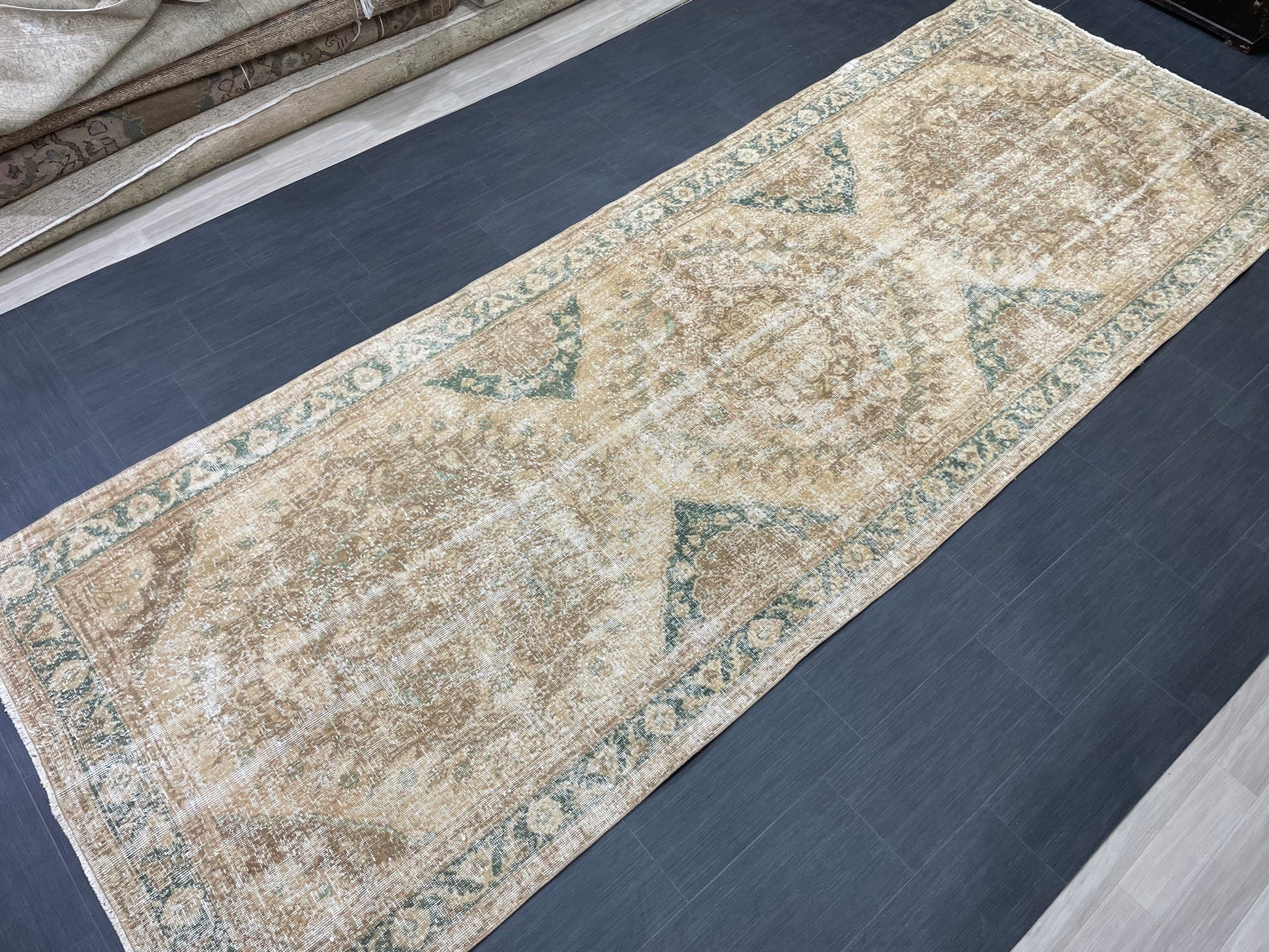 Vintage Runner Rug 4.8 x 13.2 Muted Turkish Runner Rug Hand Made Runner Rug Vintage Runner Rug Hallway Runner Rug Distressed Runner