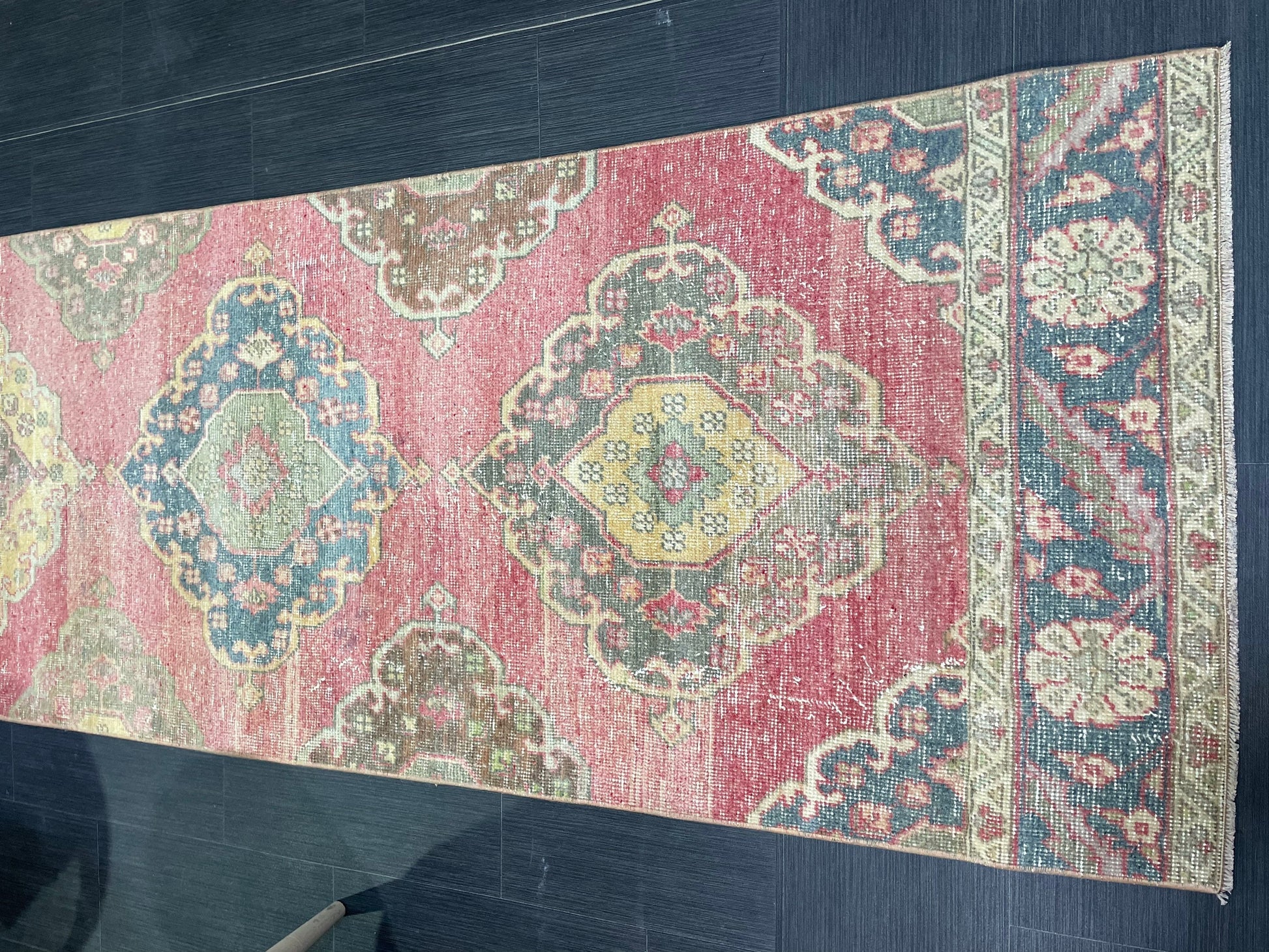 Vintage Runner Rug, Handmade 2.9 x 12.8 Runner Rug, Turkish Runner Rug, Hallway Runner Rug, Persian Kitchen Runner Rug, Hand Knotted Runner