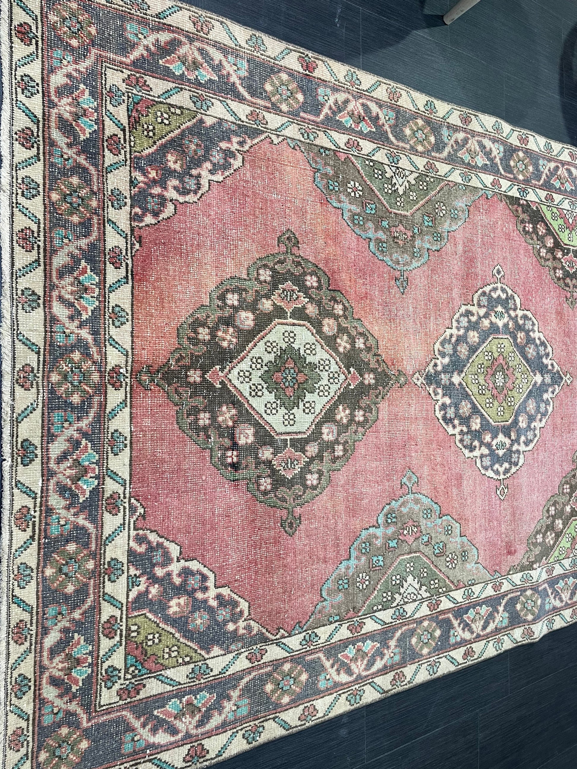 *A vintage handmade Turkish rug made of hand spun wool and double knotted on sturdy cotton foundation,