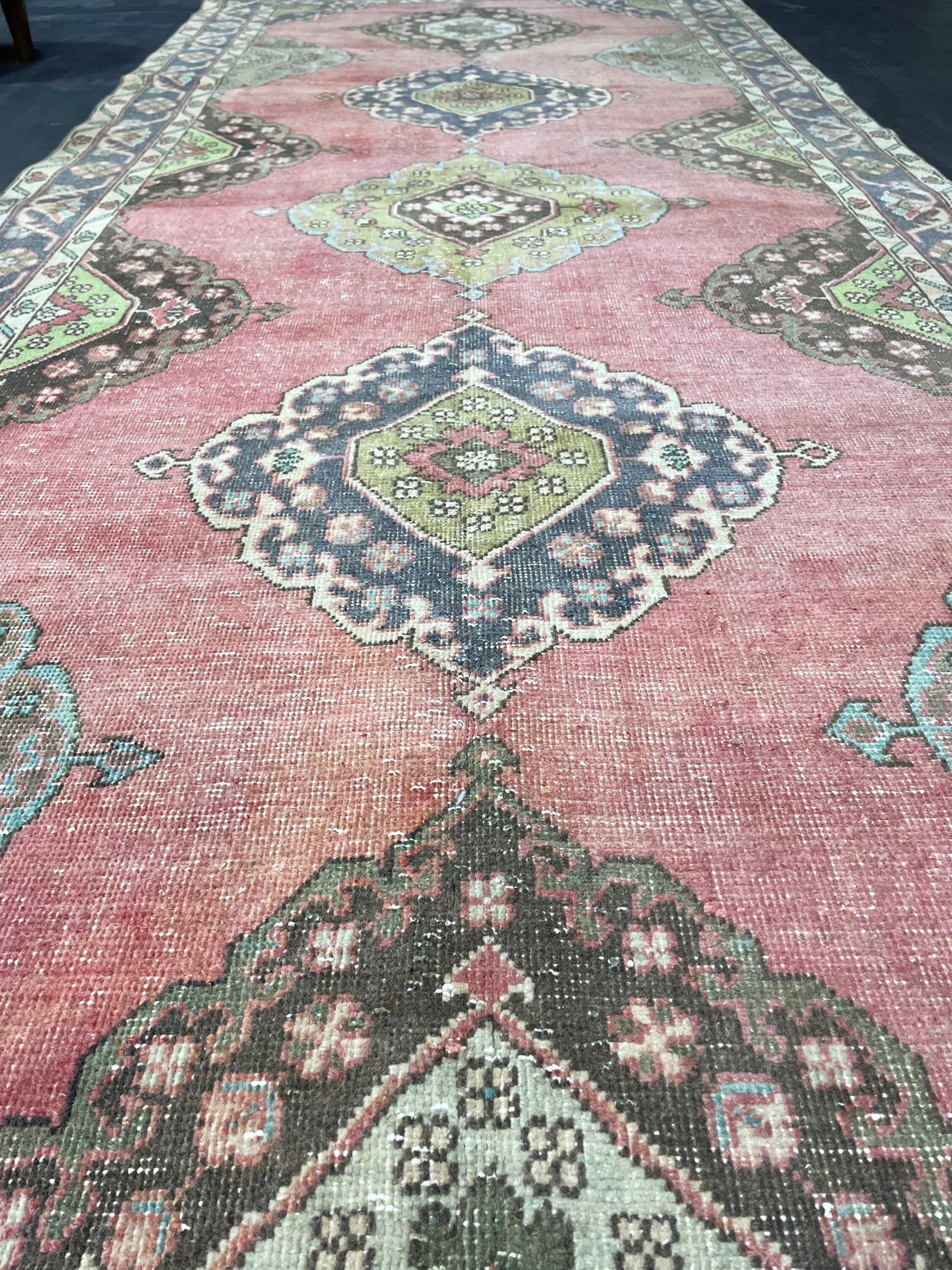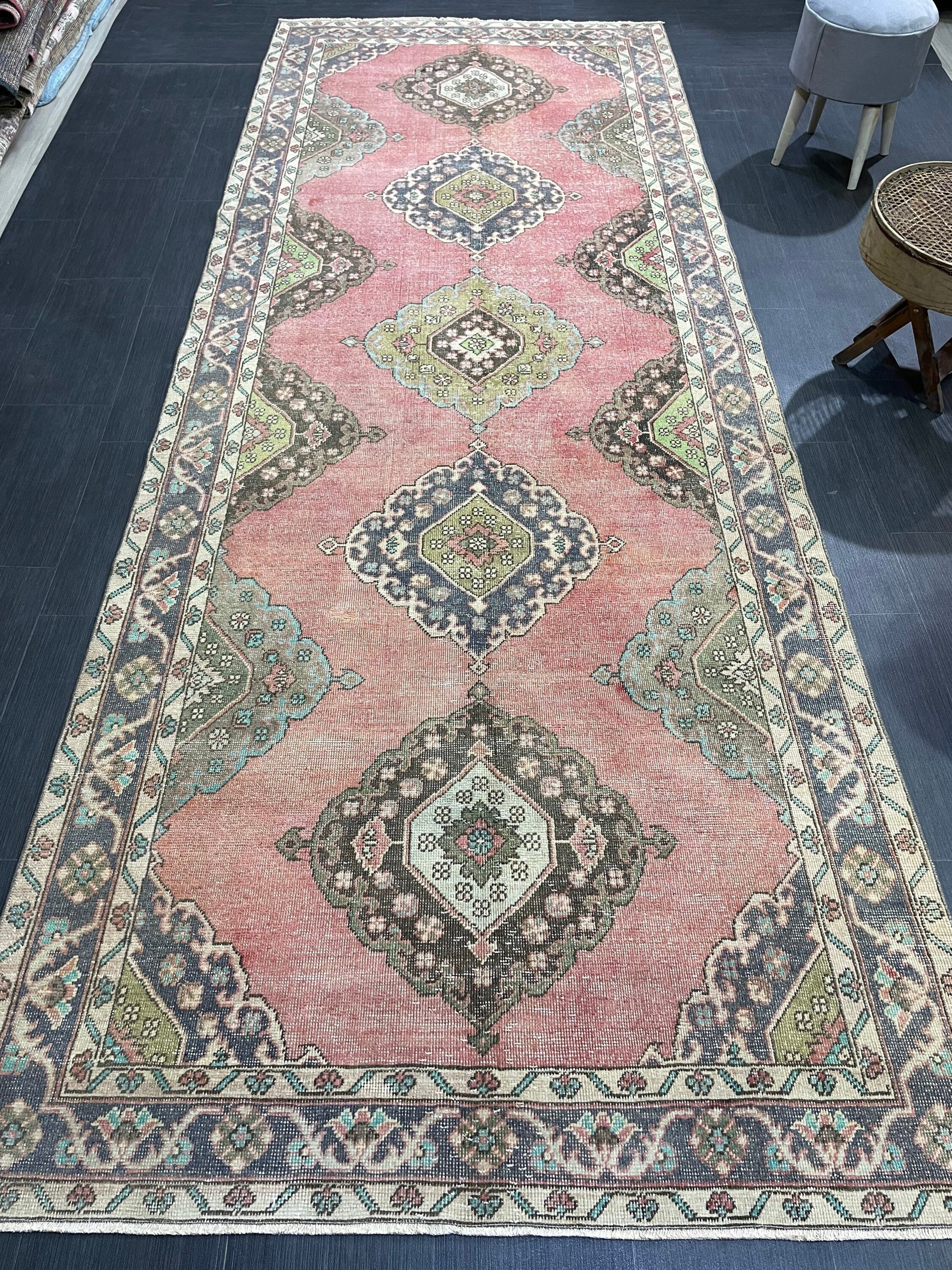 Vintage Runner rug, Muted 4.9 x 12 Runner RUG, TURKISH Runner, Pink Runner Rug, Pastel Oushak Rug ,Natural Wool Runner Rugs, Handmade Runner
