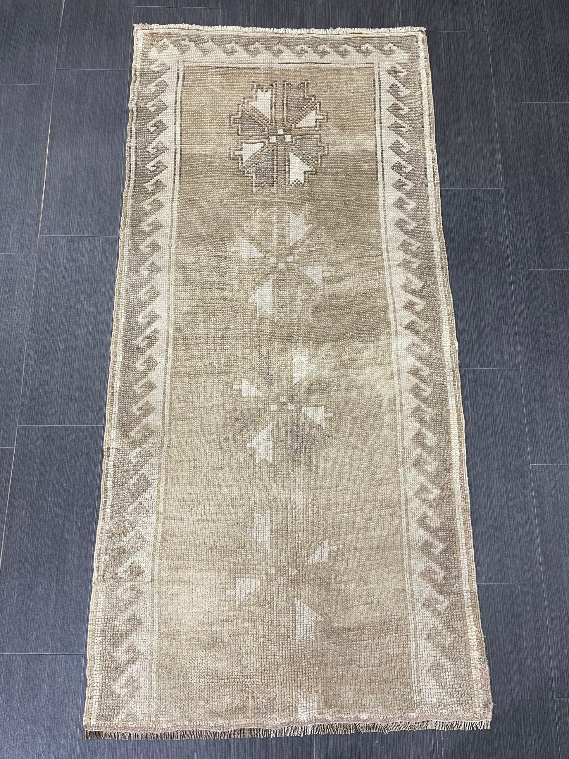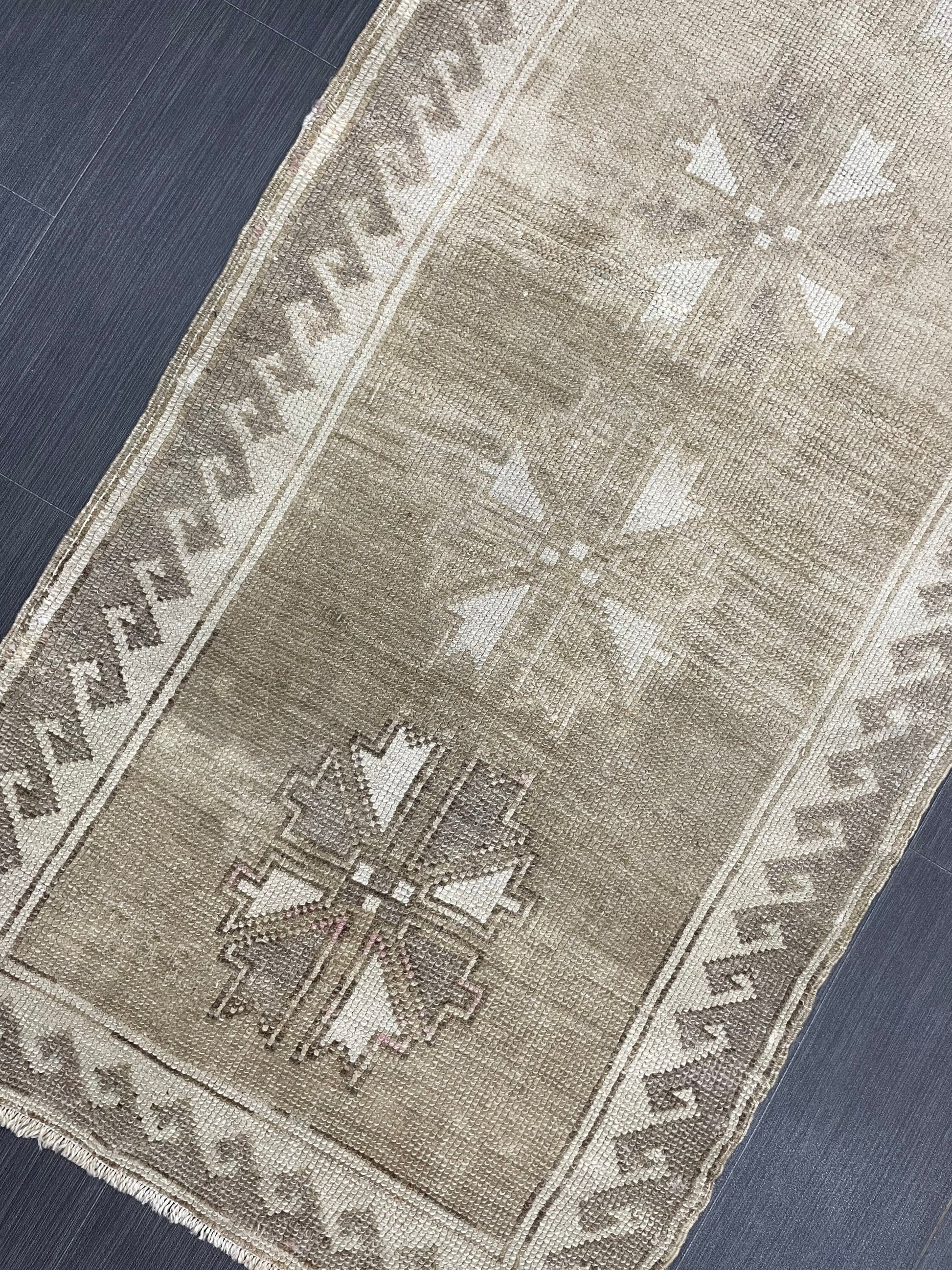 Vintage Runner Rug Muted Turkish Runner Rug 2.7 x 6 Handmade Runner Neutral Hallway Runner Kitchen Runner Rug Wool Antique Runner Rug